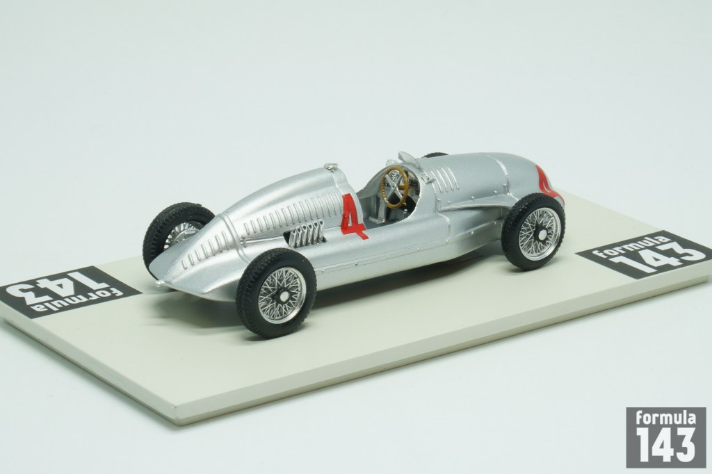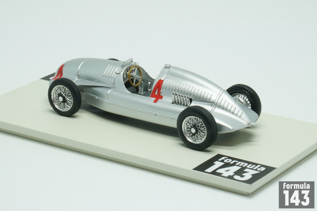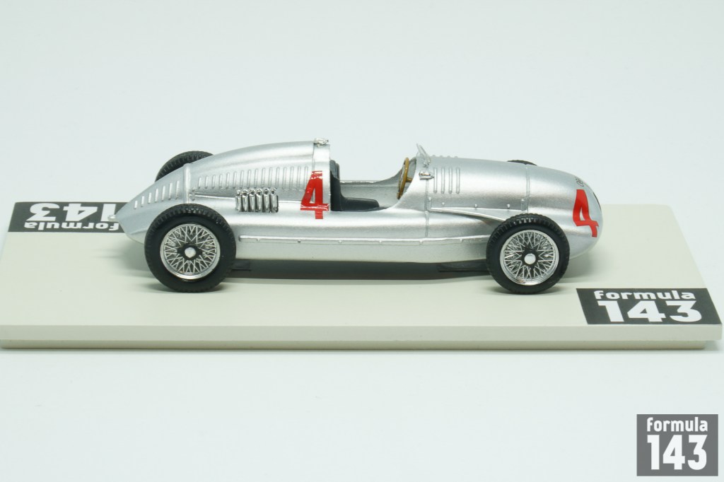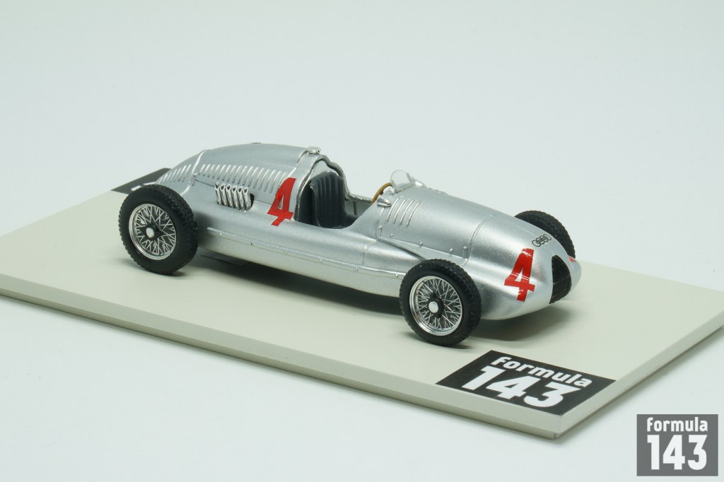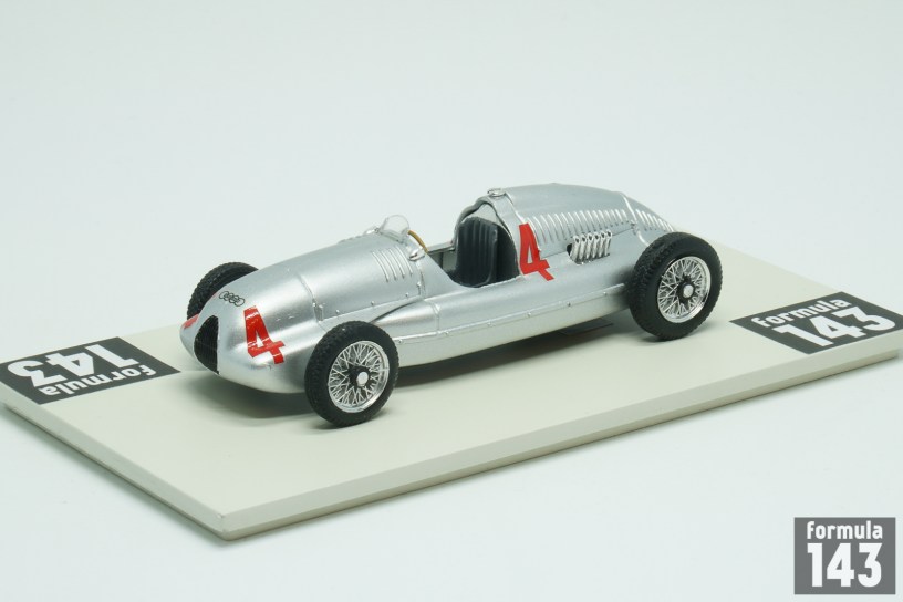 Auto Union Type D was the final Gran Prix model built by the German company. The car, powered by 3 litres supercharged V12 engine, was introduced in 1938 and raced in 1938-39. This model reproduce the car in which Tazio Nuvolari won the 1938 Donington GP.