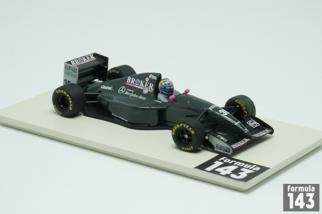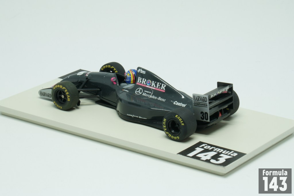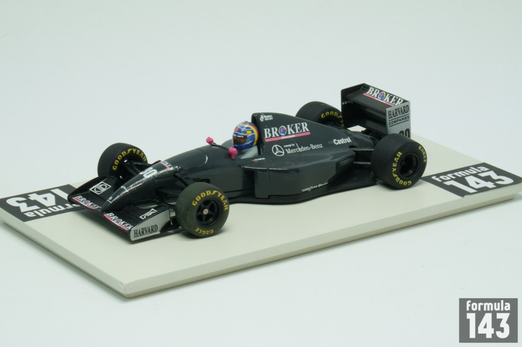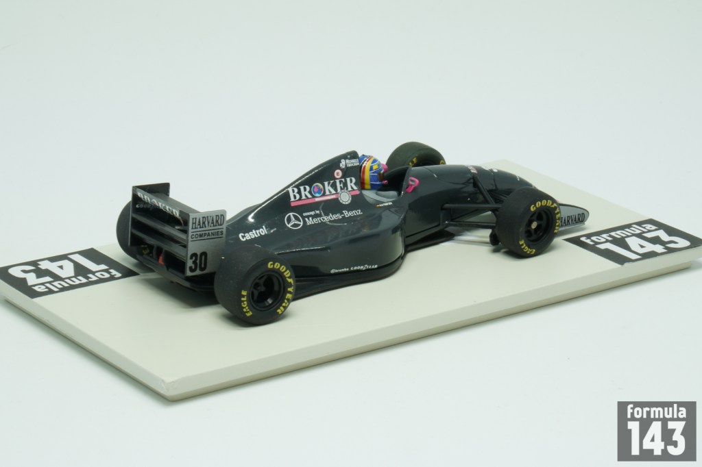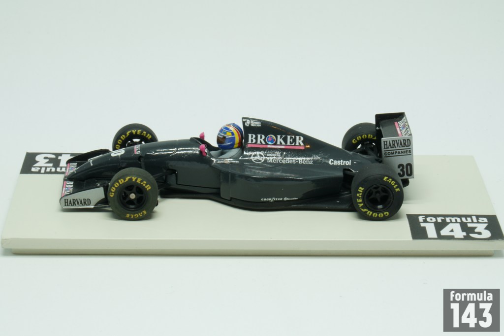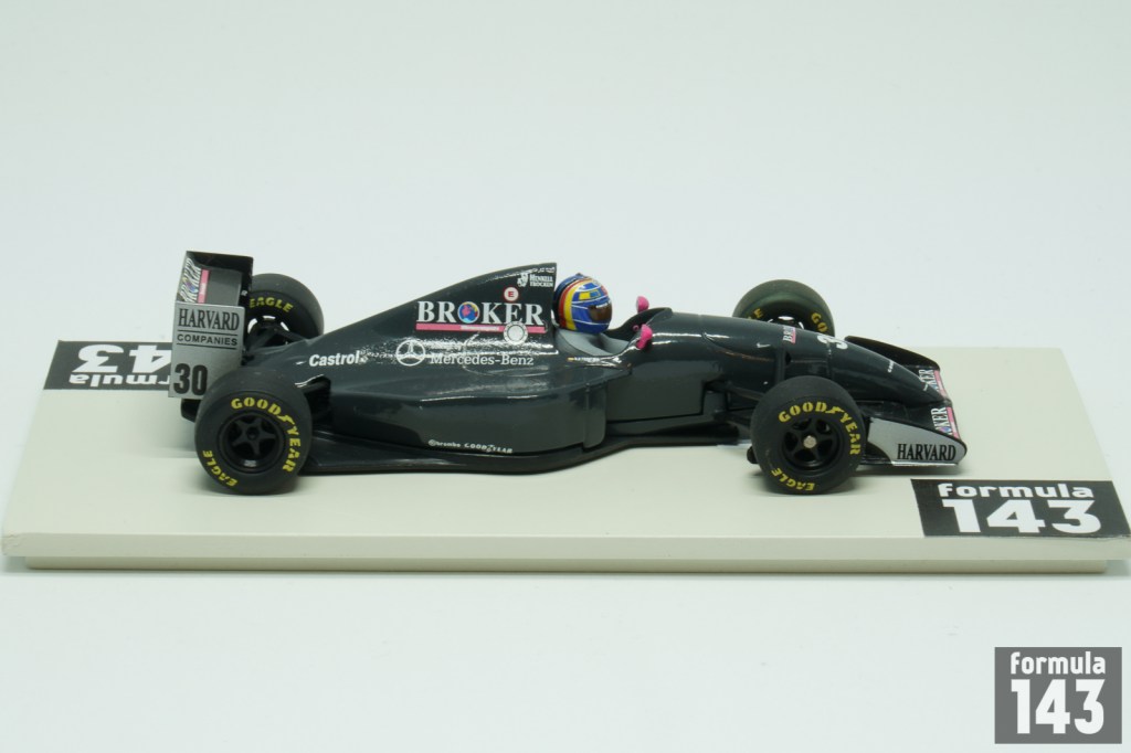 Sauber car for 1994 Formula 1 season, C13, was powered by Ilmor 3.5 V12 engine, branded as Mercedes-Benz, which marked the official return of Mercedes to Grand Prix racing since 1955. Heinz-Harald Frentzen and Karl Wendlinger teamed up as works drivers for 1994, but after his crash in Monaco Wendlinger was replaced by Andrea de Cesaris and then JJ Lehto took the steering wheel for two last races of the season. Frentzen’s best finish was 4th place in France, last race of C13 with the Broker as main sponsor, changed to Tissot livery for the rest of the season.