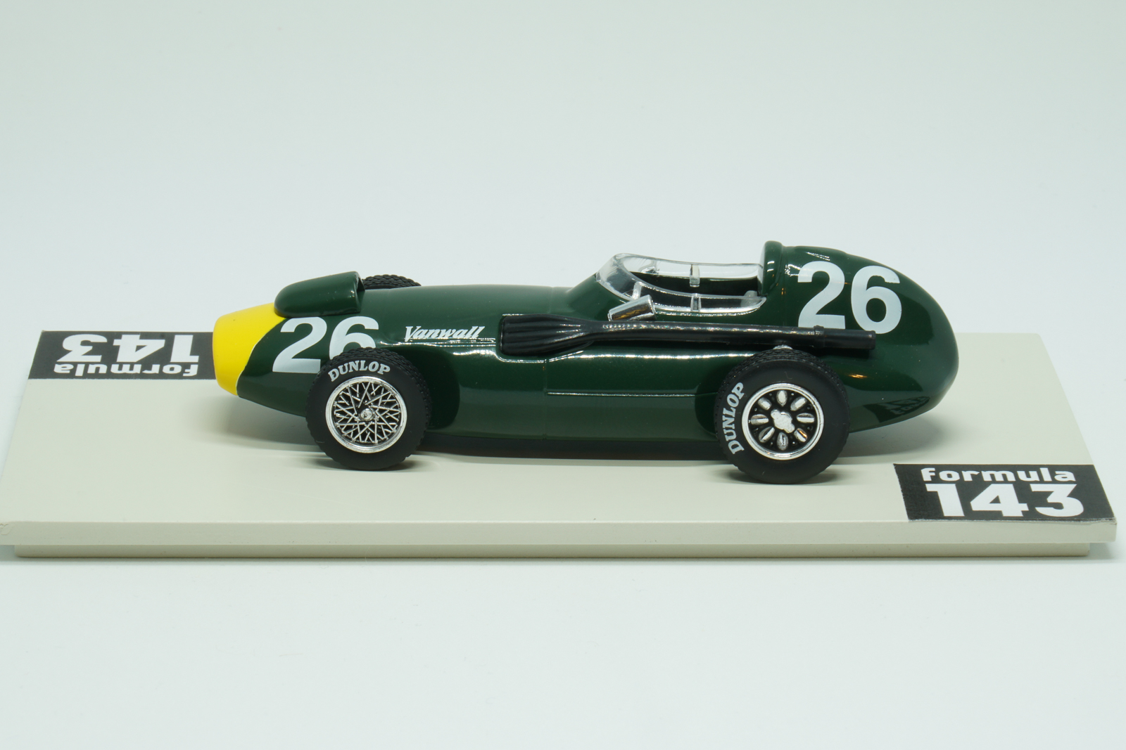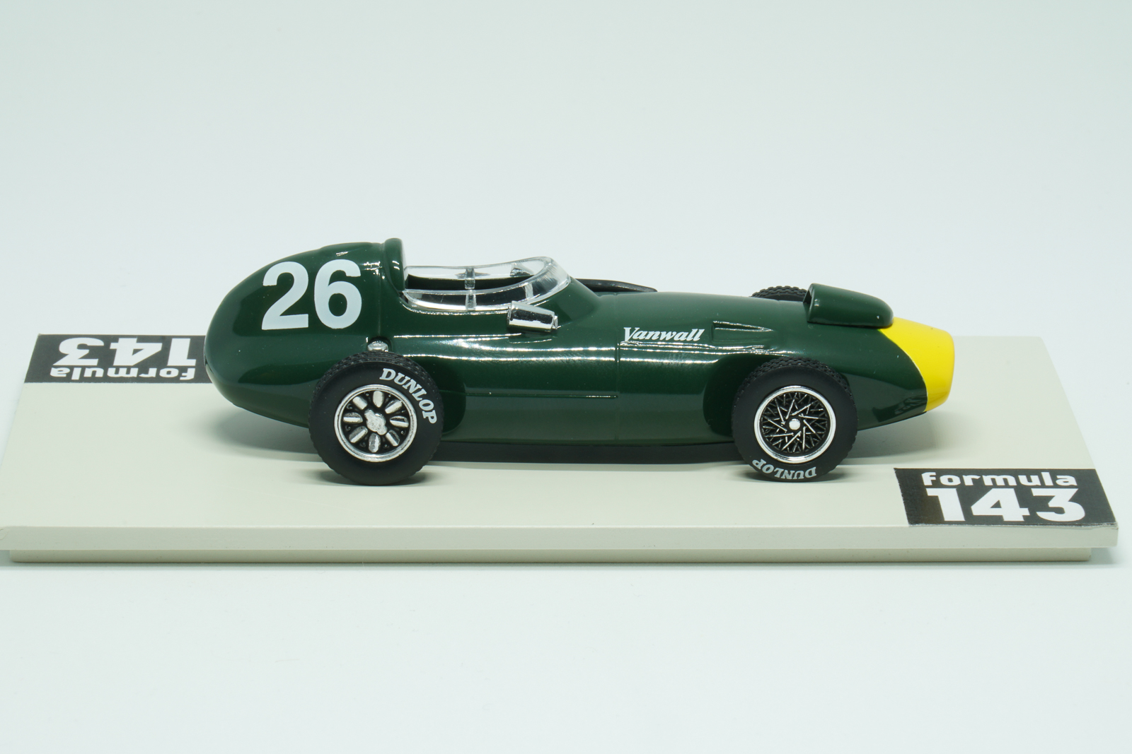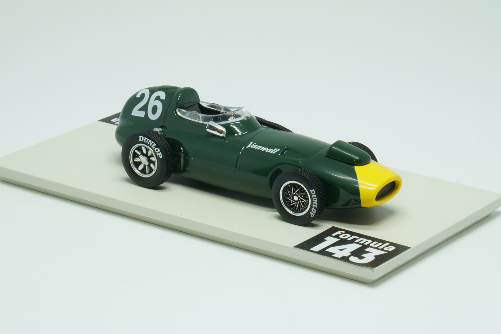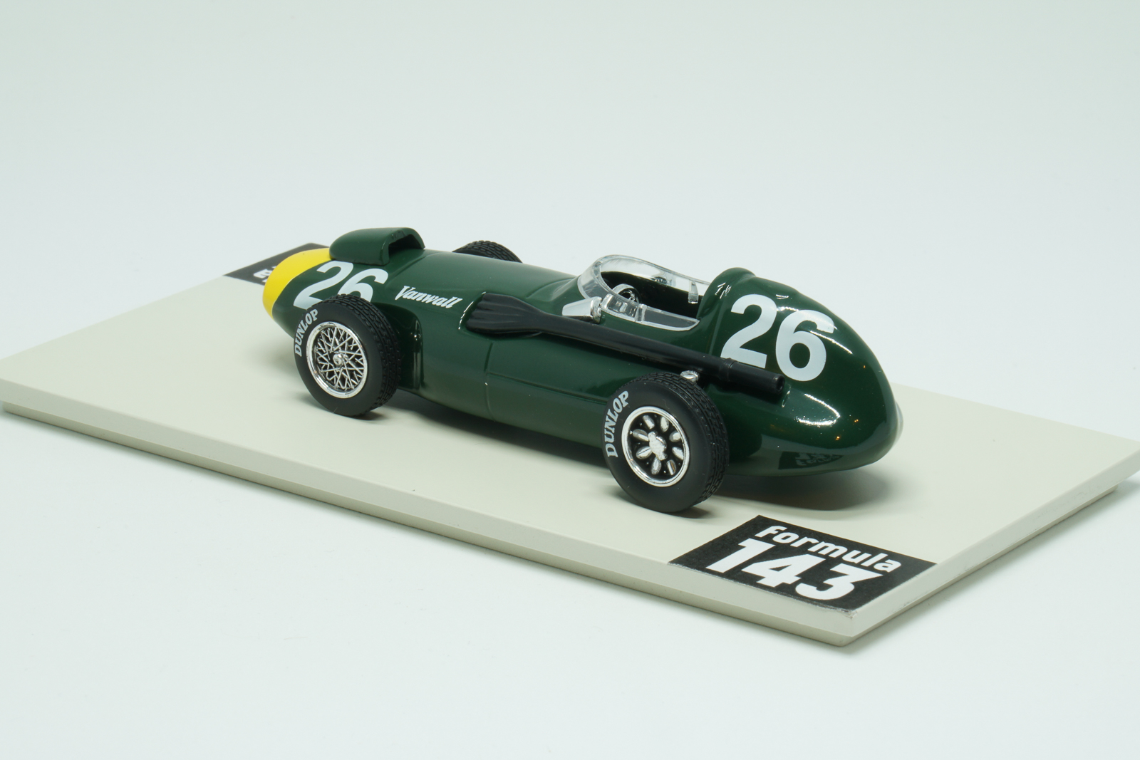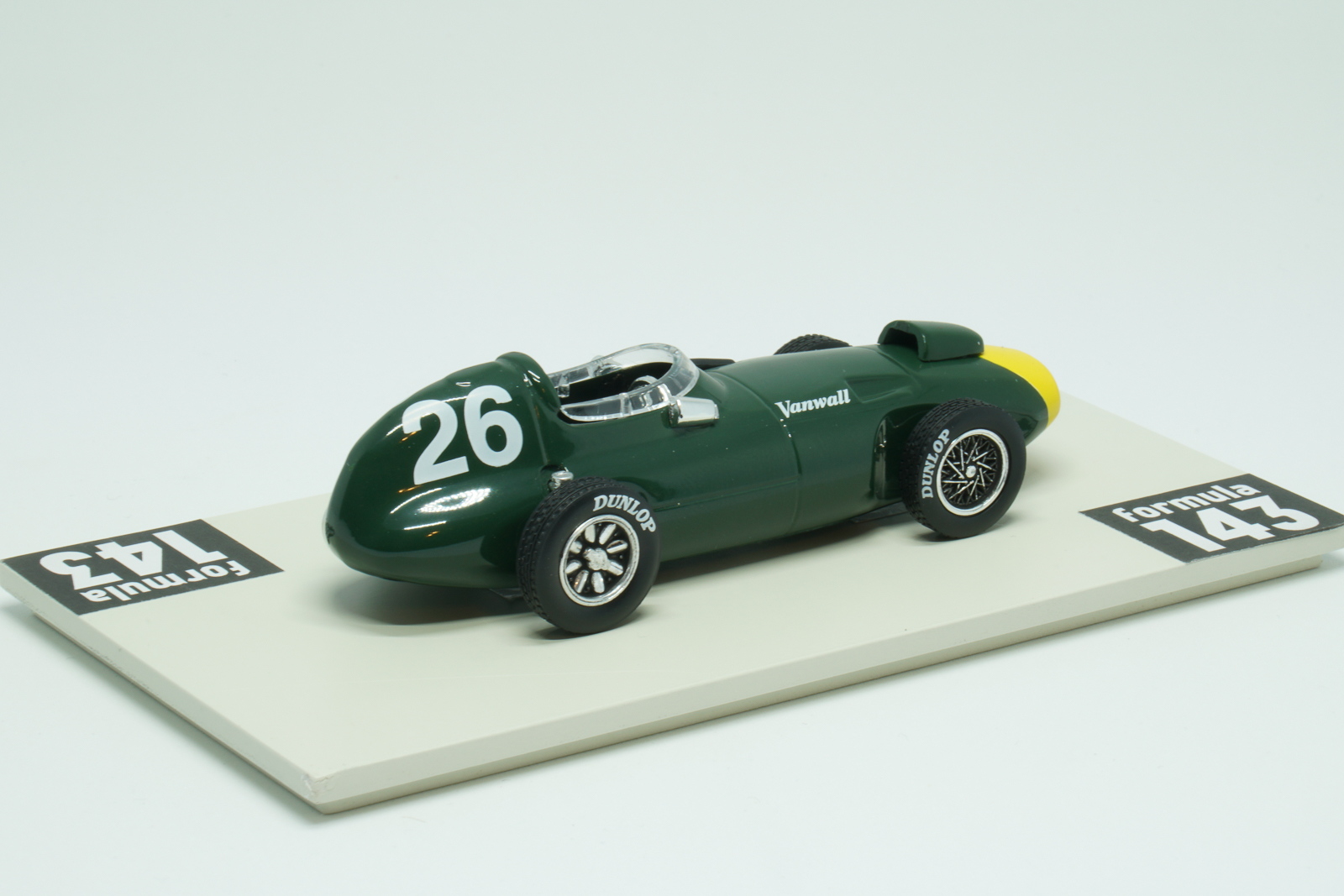 Tony Vandervell’s Vanwall was one of the major contenders in Grand Prix racing in 1955-58. Thirteen chassis were built by the factory in 1954-60 designated as ‘VW1” to ‘VW14’ (there being no ‘VW13′), but they had no official model index. In 1957 F1 season Stirling Moss won British (sharing the car with Tony Brooks), Pescara and Italian Grand Prix, and was second in the Drivers’ Championship standing. In 1958 Moss won more World Championship Grand Prix than any other driver (4), but again missed the title, finishing second in the championship behind Hawthorne. The scale model from RBA collection is designated as Vanwall FW 1957, but in fact it represents Moss VW10 from the 1958 Italian Grand Prix. Car general appearance, racing number, car livery and Dunlop tires unmistakably points to this race. Another manufacturer’s mistake is that the air intake on the hood is located backwards – compare to Brumm model of VW5 driven by Brooks in the same race.