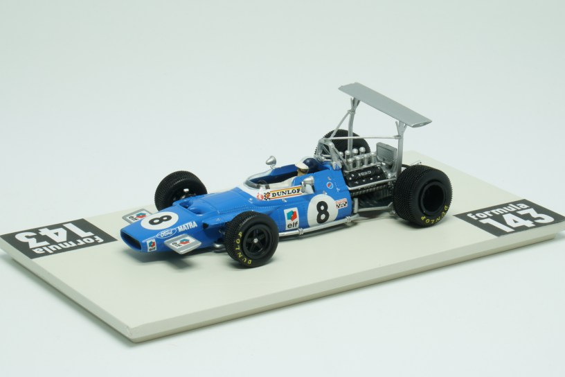 MS80 was produced be Matra for the 1969 Formula 1 season. The Ford-Cosworth DFV 3000 cc 240 bhp powered car was raced by Jackie Stewart and Jean-Pierre Beltoise. The “Flying Scotsman” took the Driver’s Championship winning 5 out of 11 Championship races of the season. His French teammate Beltoise was 5th in the Championship with two podium finishes: 3rd positions in Spain and Italy. Matra, as the other teams, experimented a lot with the high wings during first races of the season, and the version of Beltoise’ car from the Spanish GP has the high wing on the rear. After several dramatic crashes caused by the unstable high wings in Spain, this kind of aerodynamic solutions was banned by the FIA’s International Sporting Commission.
