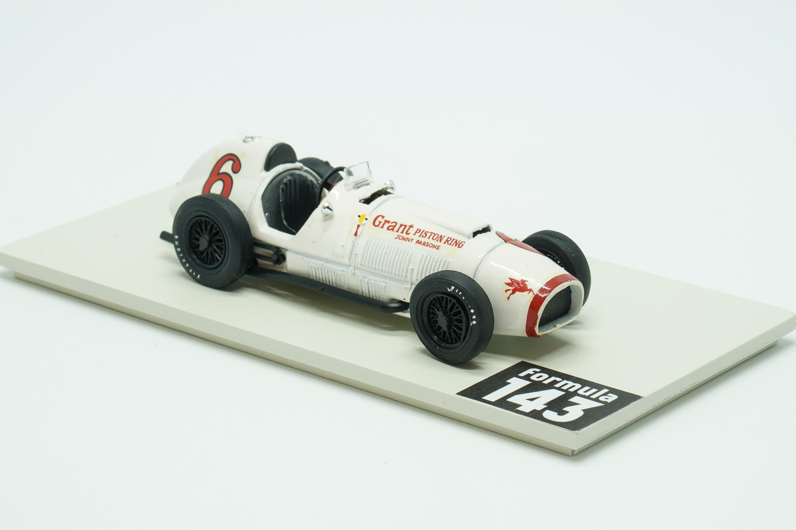 In 1950th when Indianapolis 500 was a part of World Driver’s Championship Ferrari tried to get comfortable at the Old Brickyard. In 1952 Scuderia Ferrari entered Alberto Ascari as works driver to Indy 500 on a 375 model modified for specific oval track conditions. In addition three 375s were provided for American entrants – Johnnie Parsons, Johnny Mauro and Howard Keck. Only Ascari was able to qualify and take part in the race. All 3 his American fellow drivers were DNQ. Parsons, who tried Ferrari 375 named in US tradition as Grant Piston Ring Spl according to sponsor name, in practice and qualifying sessions was finally qualified in his more convenient Kurtis-Offenhauser roadster to finish 10th in the race.