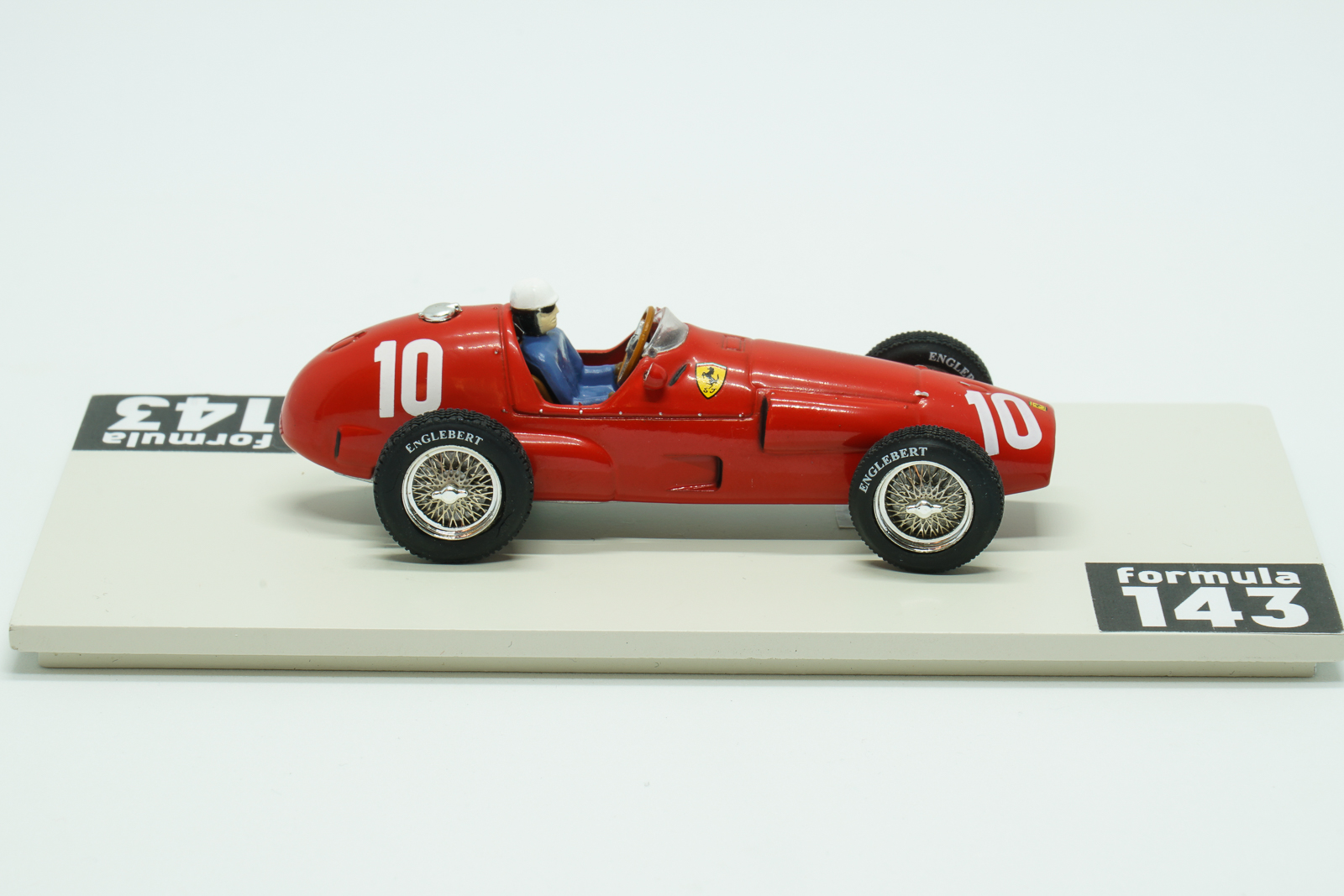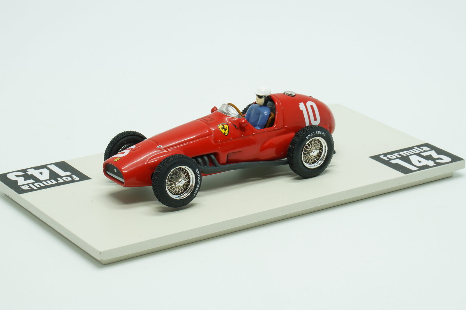 Ferrari 625 was the F1 car built according to new Formula 1 regulations in force in 1954 when Grand Prix racing returned to F1 after two seasons with F2. For new rules Ferrari 500 chassis were modified to fit the 2.5-litre 625 engine. This Quartzo model represents the car started by Nino Farina in Argentine GP 1955. During the race Farina’s original car was handed over to Umberto Maglioli and then to Maurice Trintignant.