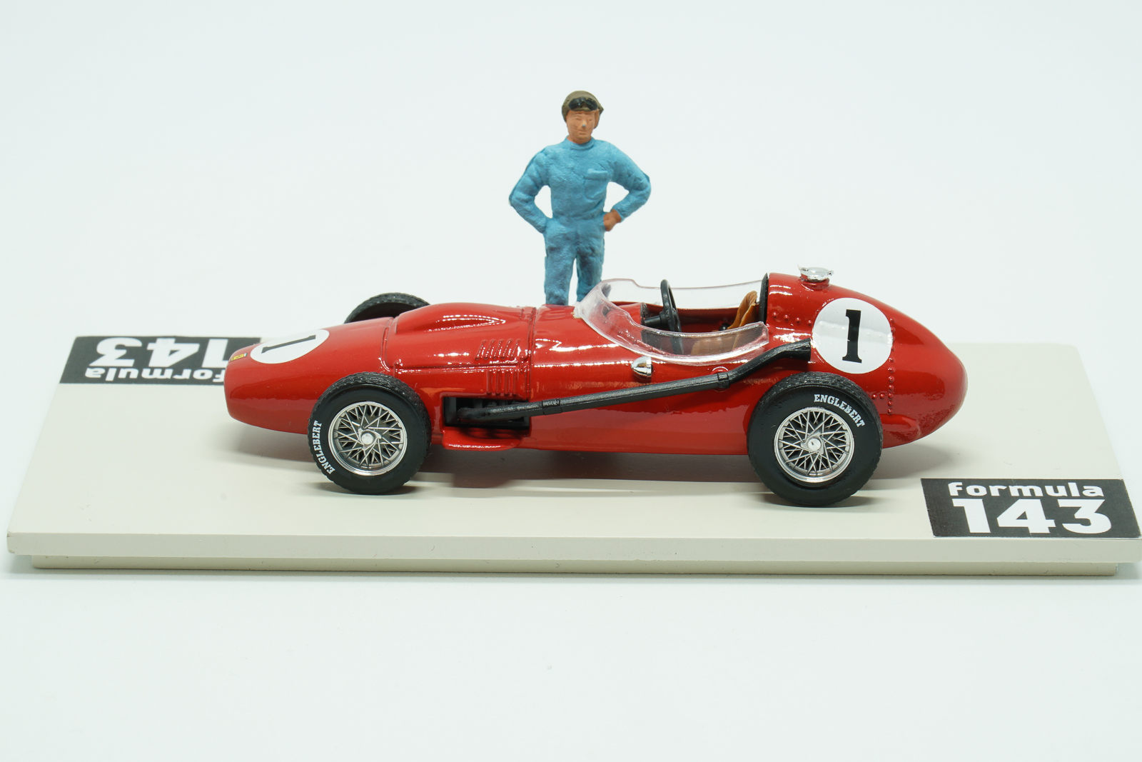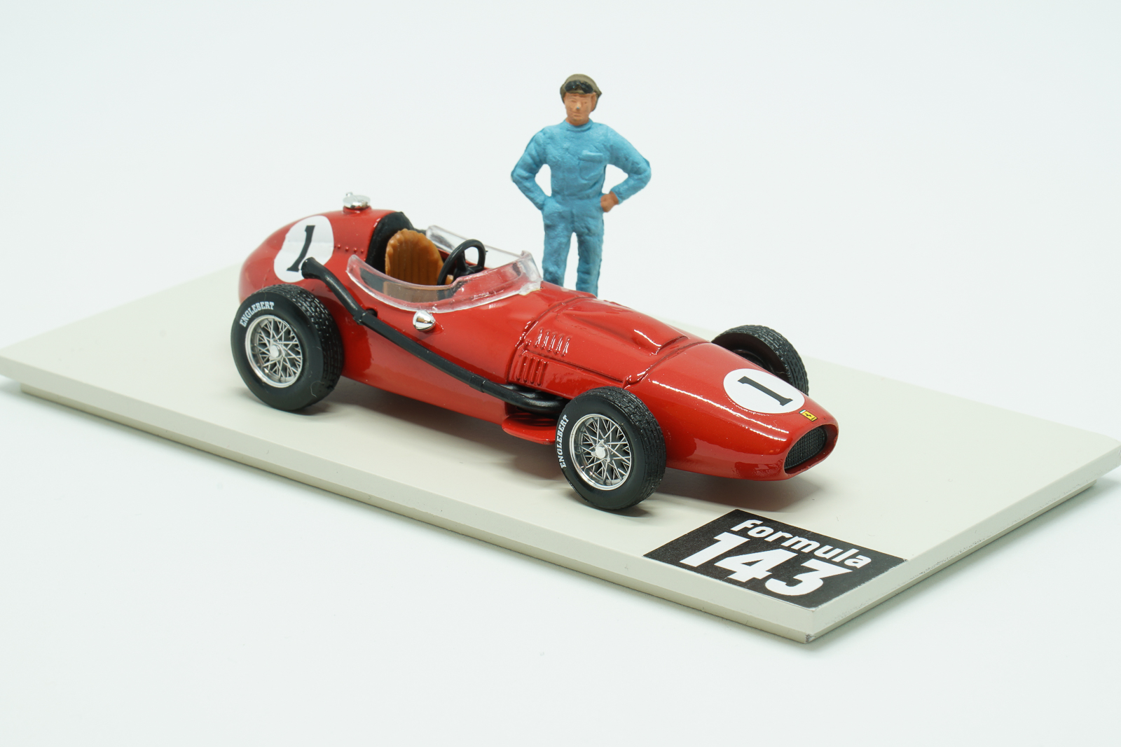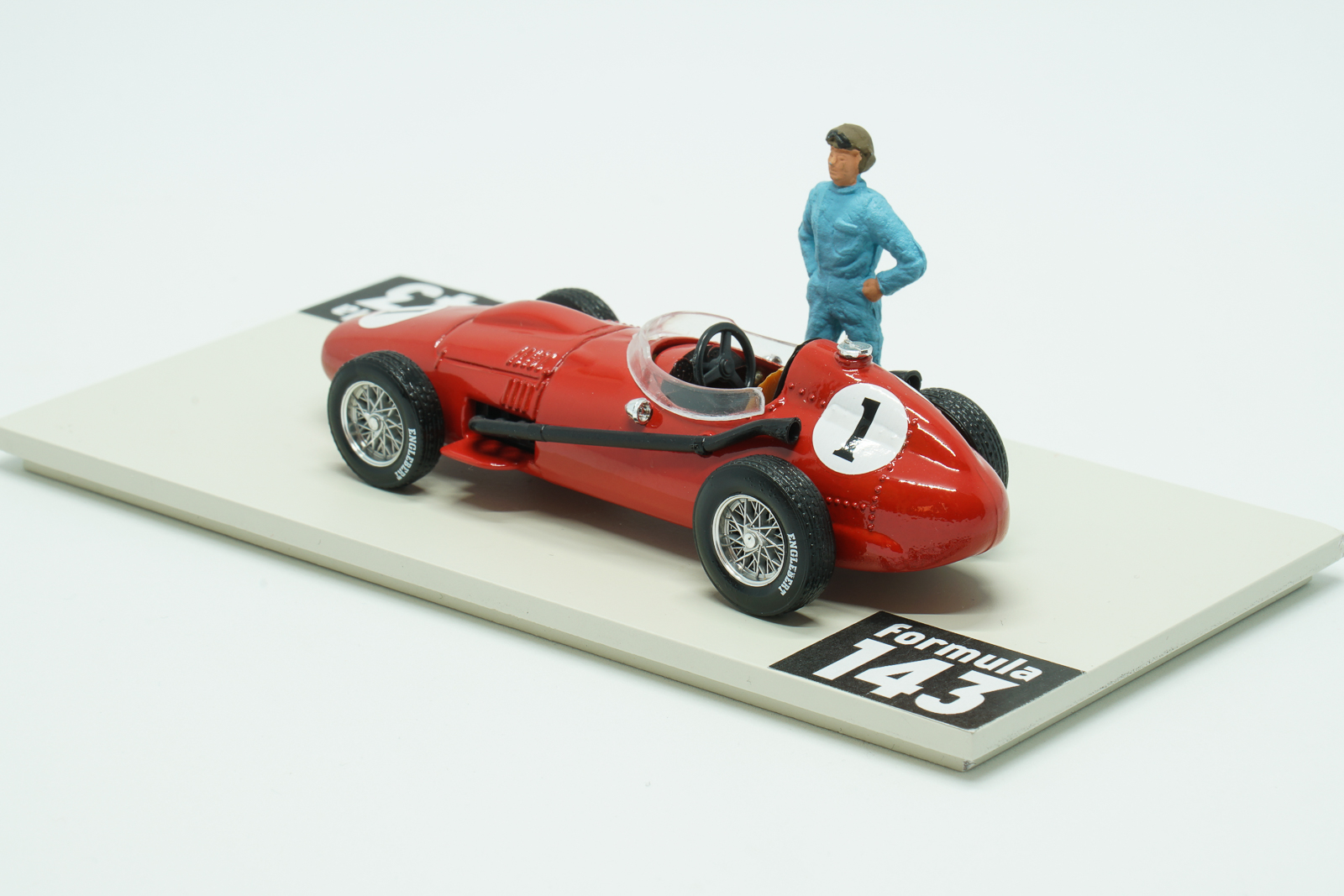 The 246 model was built by Ferrari for the 1958 Formula 1 season. The 246 used a 2417 cc Dino V6 engine with a 65° angle between the cylinder banks. This was the first use of a V6 engine in a Formula One car. In 1958 Mike Hawthorn took the Drivers’ Championship title and his teammate Peter Collins won the British Grand Prix and was 5th in the Championship. In the 1958 season also the first Constructors’ Championship, or International Cup for F1 Manufacturers as it was officially called, was awarded. The winner was Vanvall, while Ferrari with Hawthorn and Collins took 2nd place. The Brumm model from the set No. 2 of the special limited series “50’s British Champions” distributes exclusively in UK by Modeltime Ltd. represents Peter Collins’s car from his victorious British Grand Prix along with the standing driver’s figure.