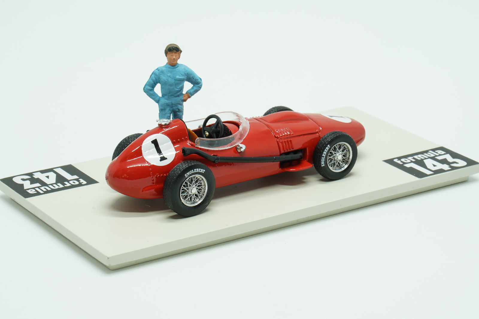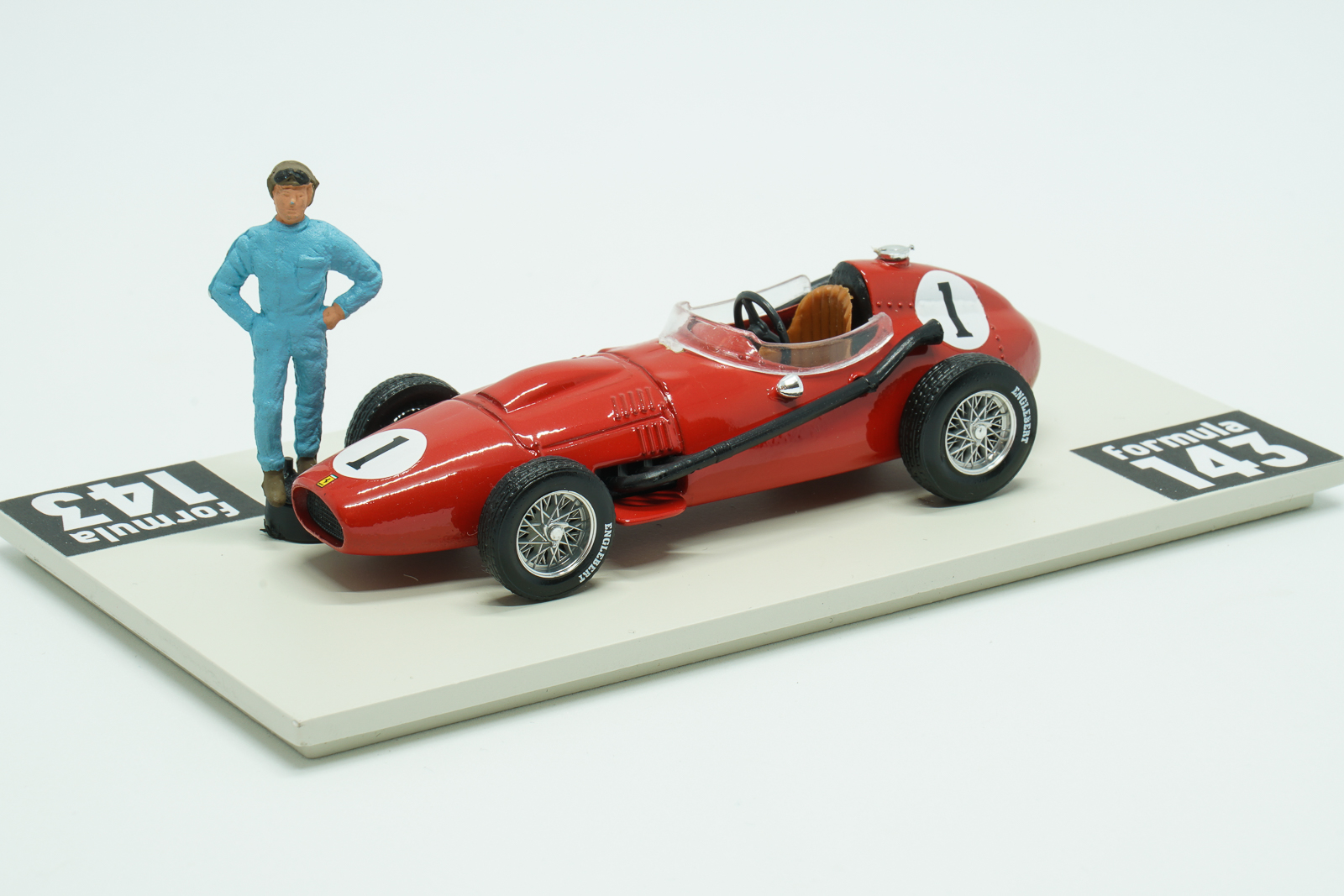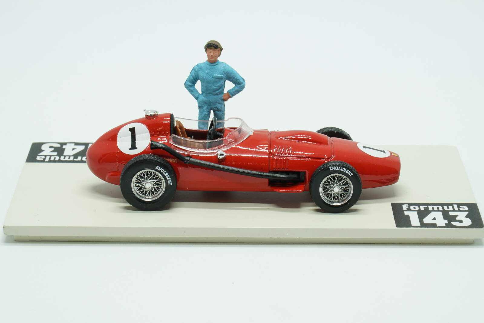 The 246 model was built by Ferrari for the 1958 Formula 1 season. The 246 used a 2417 cc Dino V6 engine with a 65° angle between the cylinder banks. This was the first use of a V6 engine in a Formula One car. In 1958 Mike Hawthorn took the Drivers’ Championship title and his teammate Peter Collins won the British Grand Prix and was 5th in the Championship. In the 1958 season also the first Constructors’ Championship, or International Cup for F1 Manufacturers as it was officially called, was awarded. The winner was Vanvall, while Ferrari with Hawthorn and Collins took 2nd place. The Brumm model from the set No. 2 of the special limited series “50’s British Champions” distributes exclusively in UK by Modeltime Ltd. represents Peter Collins’s car from his victorious British Grand Prix along with the standing driver’s figure.