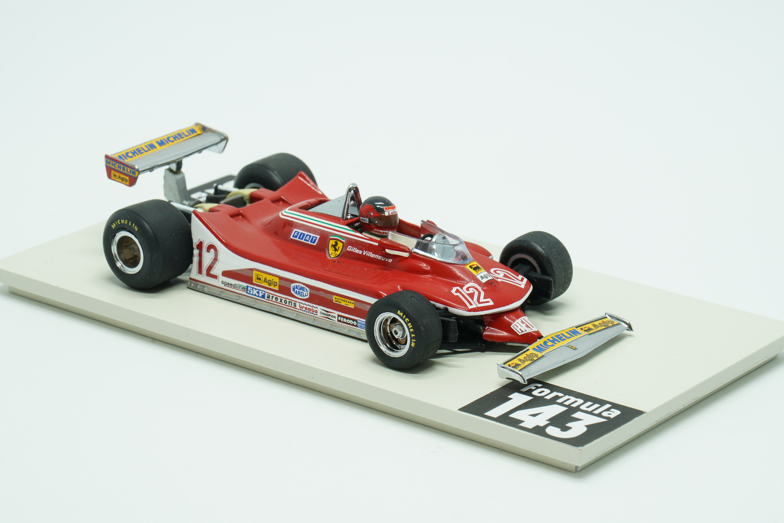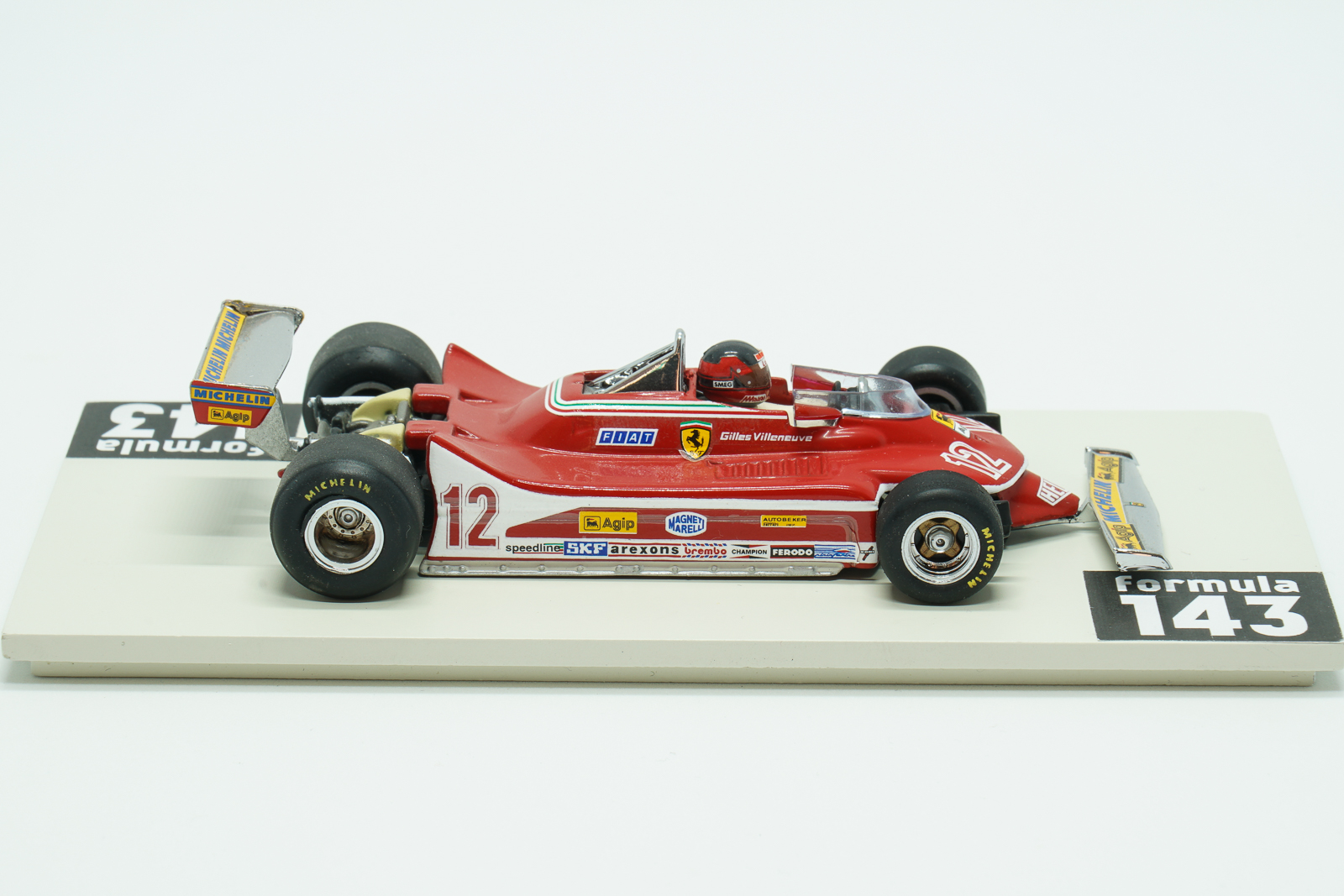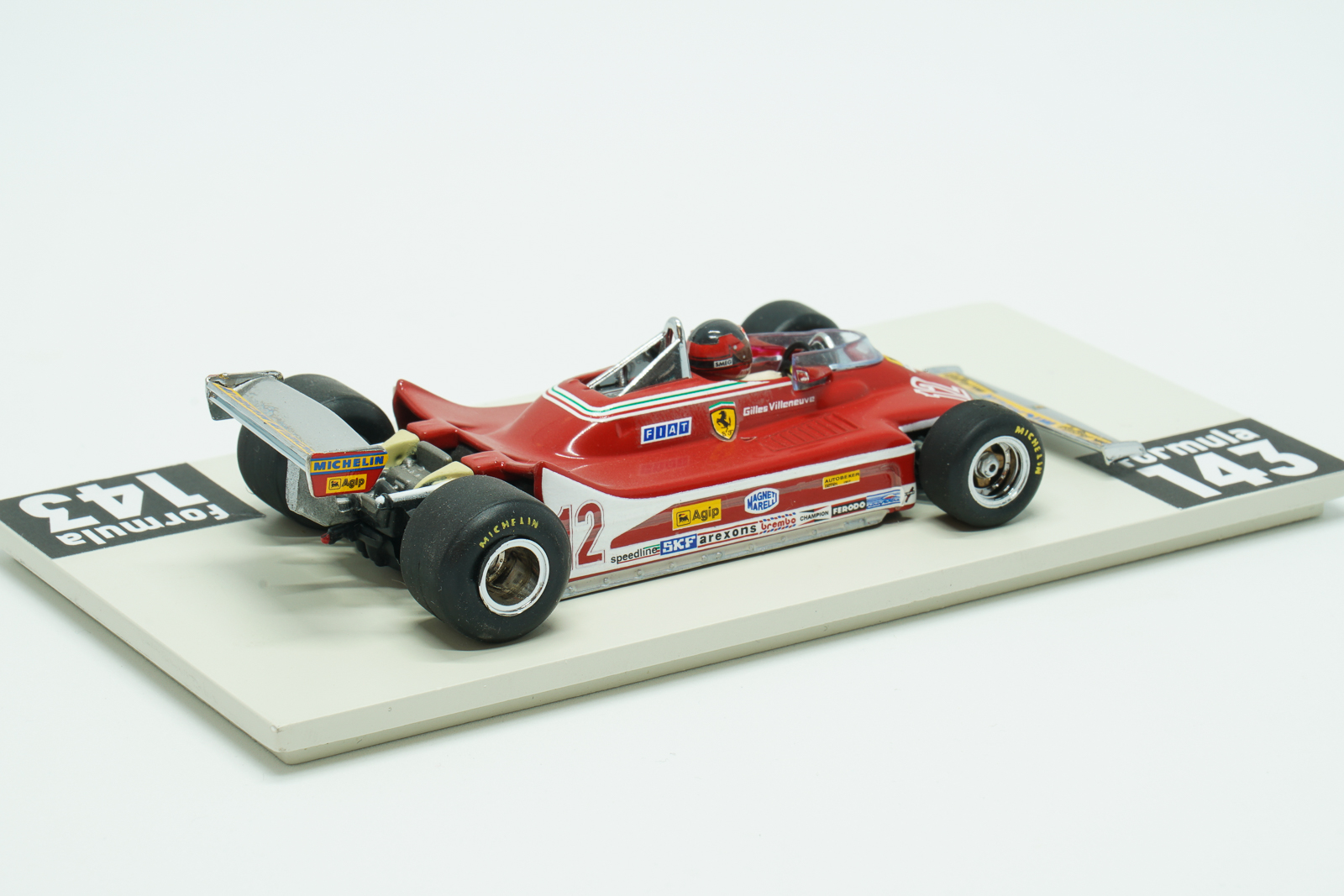 Ferrari 312 series was one of the most successful and famous Grand Prix cars from Maranello. Initially designed by Mauro Forghieri for 1975 season, it raced in various versions from 1975 until 1980 and won 27 races out of 90. 312T4 version was built for 1979 season with major improvements in the field of aerodynamics in order to follow ground effect design introduced by Colin Chapman’s Lotus in 1978. The car was fast enough to match any rival and very reliable. Jody Scheckter and Gilles Villeneuve won 3 races each and took 1st and 2nd positions respectively in the Drivers’ Championship. Gilles Villeneuve whose car is modeled in this Minichamps scale model won in South Africa, USA-West and USA Grand Prix.