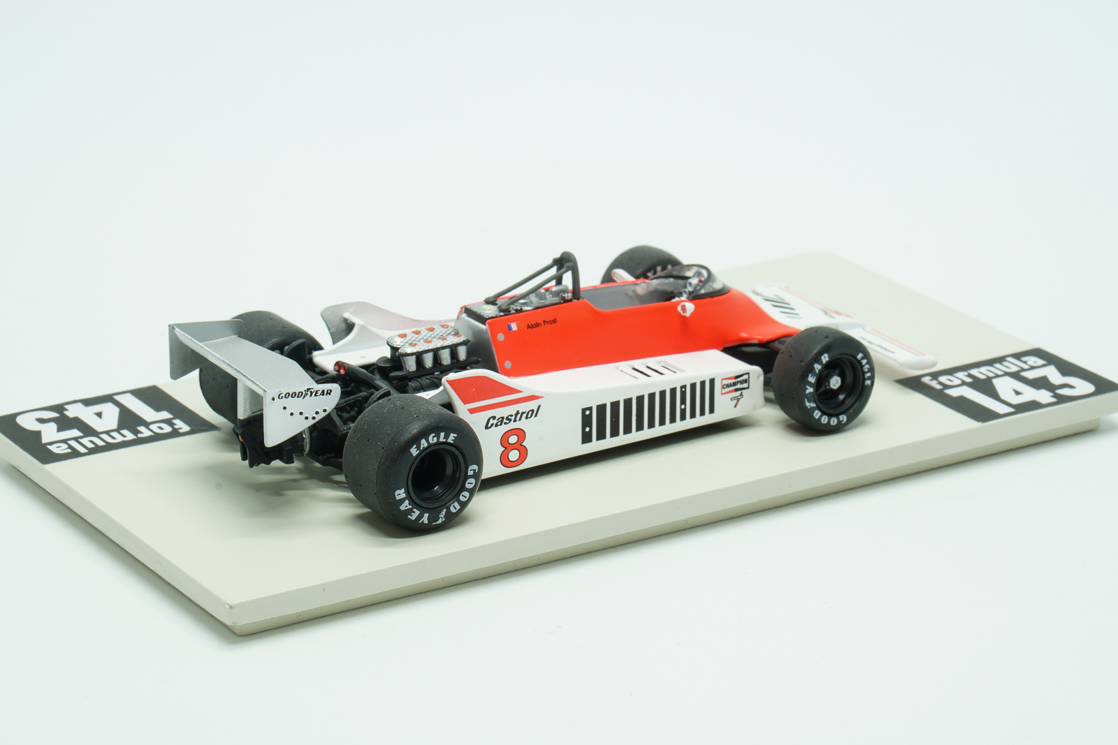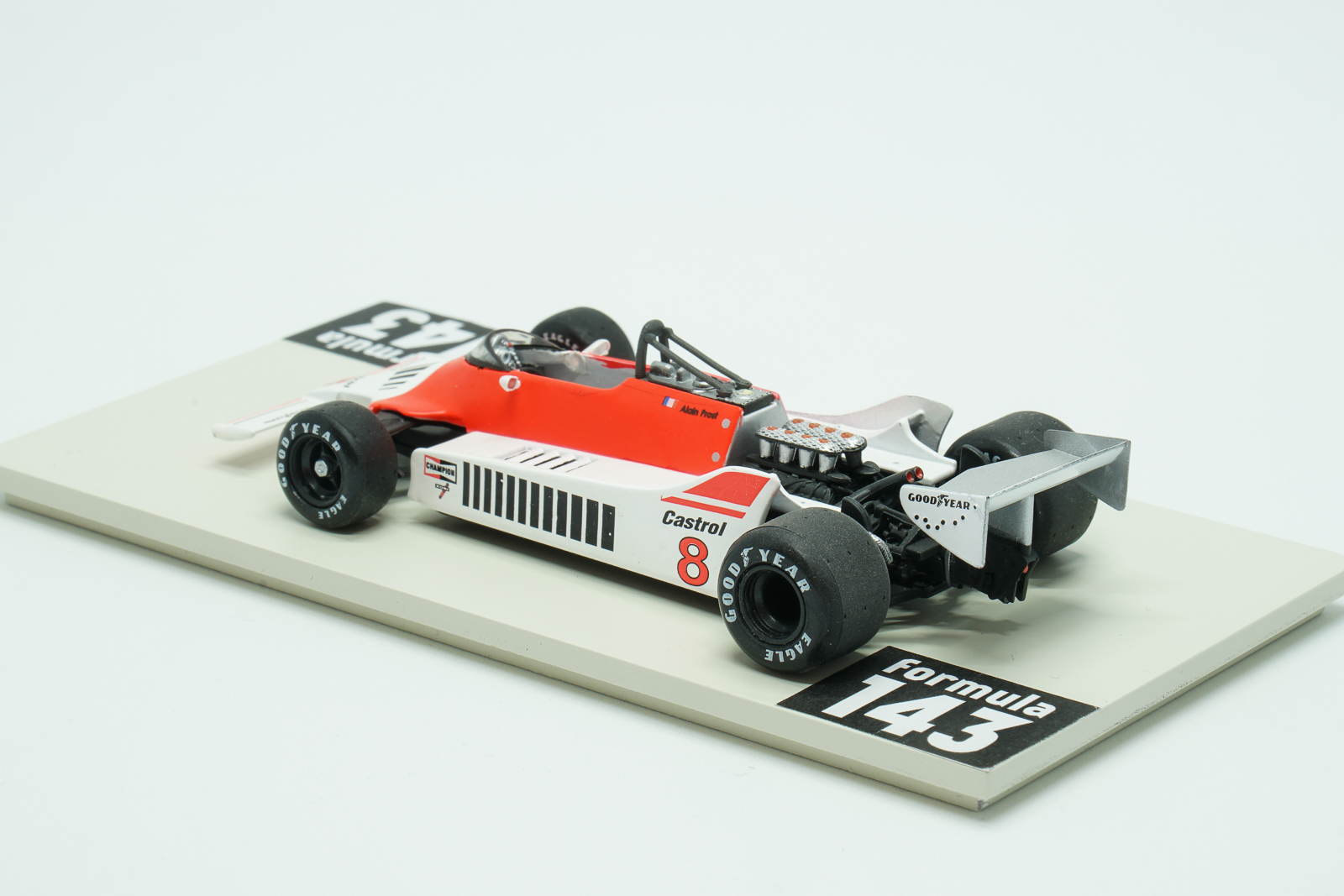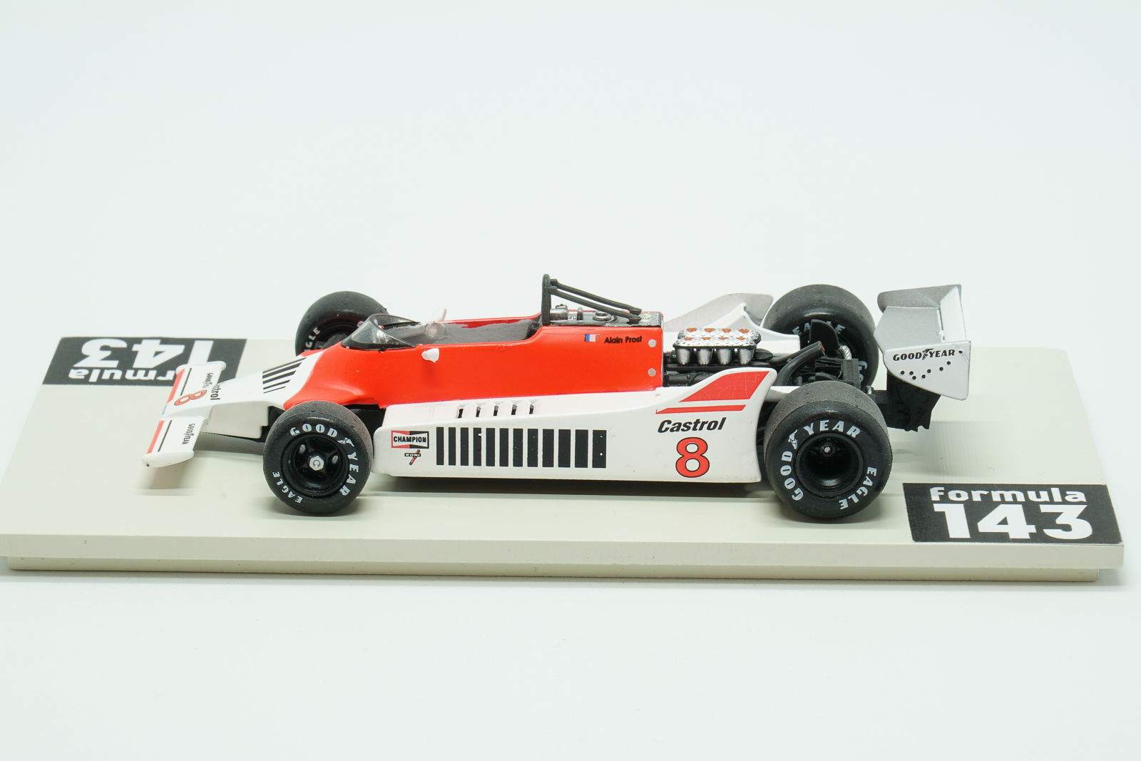 McLaren M29 was introduced in 1979 and in next versions B and C was also used in the next season. In 1980 Alain Prost made his debut in Formula 1 finishing in the points (6th position) in his very first race at Argentinian Grand Prix. M29 in general was quite far from the leaders – Williams, Ligier, Brabham and Lotus, so at the end of the season Prost and his teammate John Watson found themselves on 16th and 11th position in the Championship, despite only in 1 point from each other. The scale model was produced by Solido in 2000s as a part of small Alain Prost Collection.