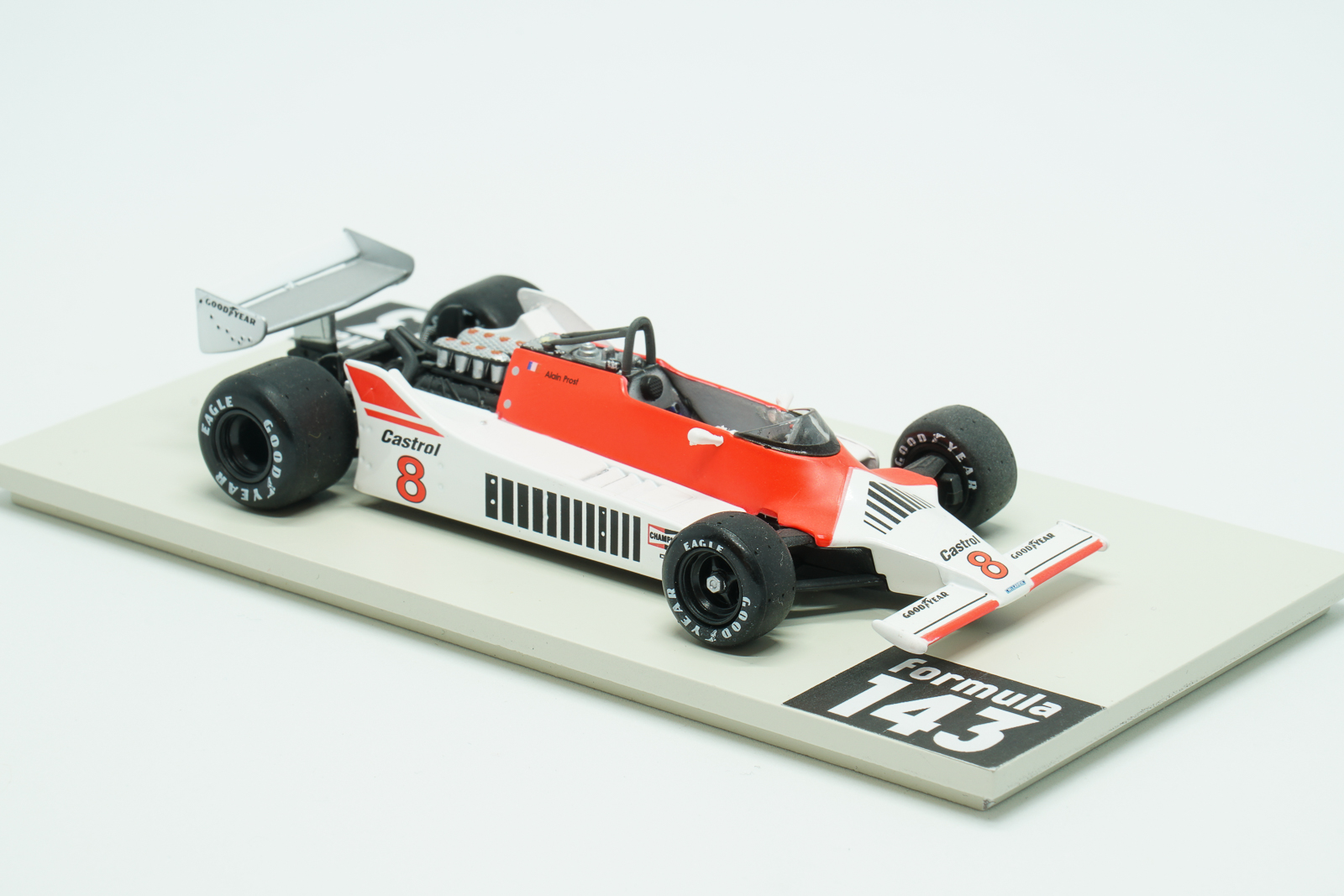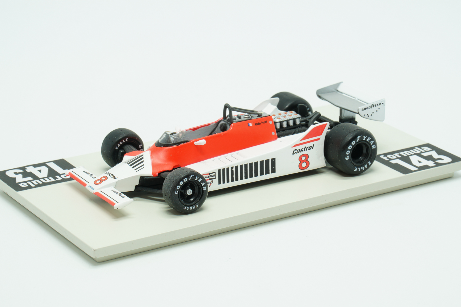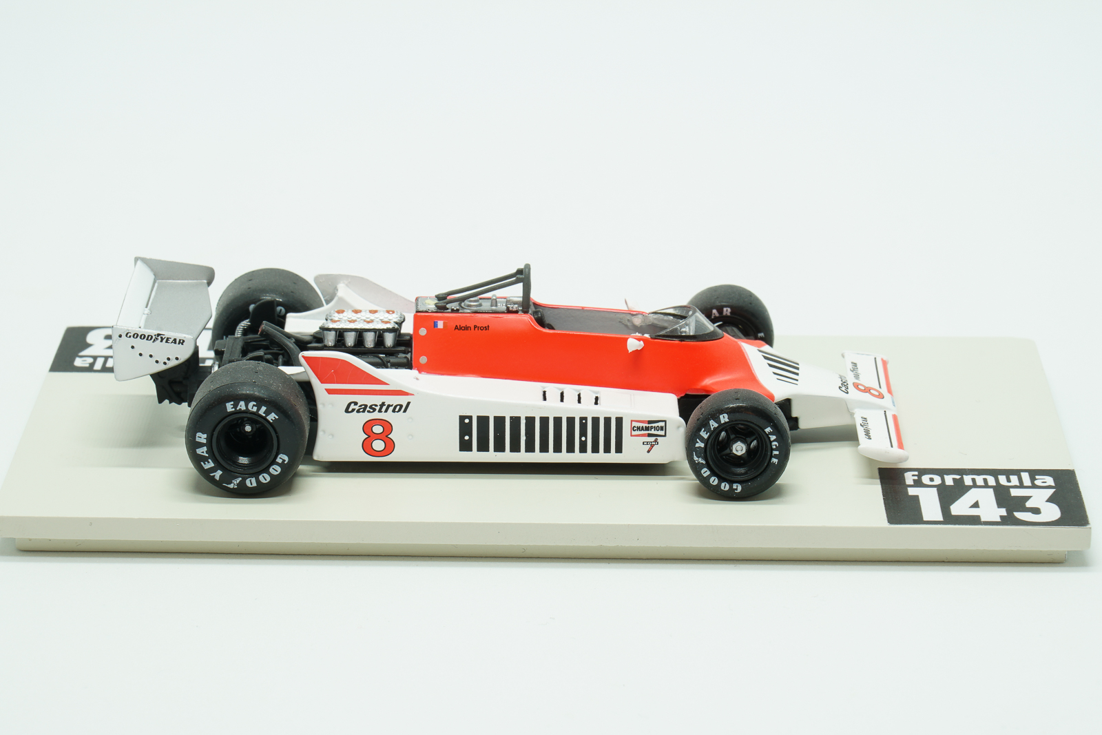 McLaren M29 was introduced in 1979 and in next versions B and C was also used in the next season. In 1980 Alain Prost made his debut in Formula 1 finishing in the points (6th position) in his very first race at Argentinian Grand Prix. M29 in general was quite far from the leaders – Williams, Ligier, Brabham and Lotus, so at the end of the season Prost and his teammate John Watson found themselves on 16th and 11th position in the Championship, despite only in 1 point from each other. The scale model was produced by Solido in 2000s as a part of small Alain Prost Collection.