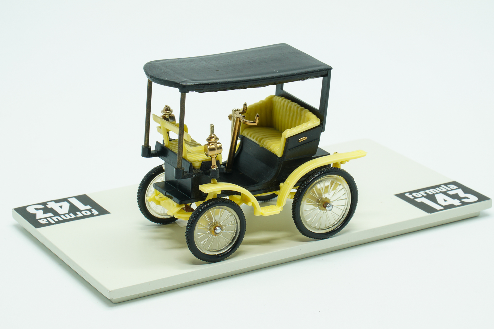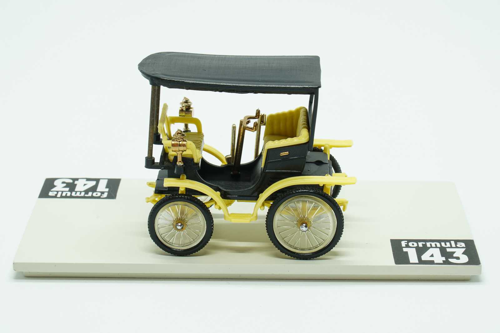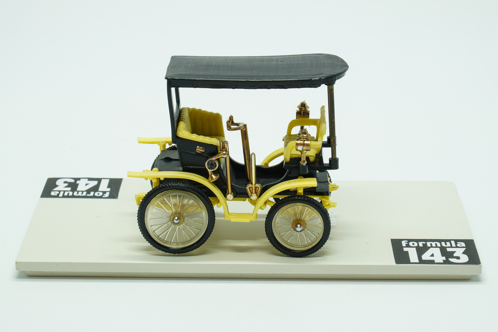 In 1984 a trial for horeseless carriages from Paris to Rouen was held, which is considered as the beginning of organized motor racing. Despite not being a true race, but rather a trial, run from Paris to Rouen was the crucial point for the further growth and development of motor sport. The trial was unofficially won by Count Albert de Dion who was the fastest in his steam-powered car, but not eligible for the first prize as not accompanied by mechanic. The first prize was to be awarded by the judges consisted of the staff of “Le Petit Journal” and consulting engineers to the car which best fulfilled the requirements of being “without danger, easily handled and of low running cost”. The major contenders were Peugeot and Panhard et Levassor companies to whom the first prize was awarded equally. Among 21 cars qualified for the start there were 5 works Peugeots driven by firm’s engineers Rigoulot, Doriot and Michaux along with Lemaitre and Kraeutler. This plastic Minialuxe model produced in the 1960s reproduces 1891 Peugeot Vis-à-vis Type 5 petrol-powered car driven by Auguste Doriot to the 3rd place in the Paris-Rouen trial.