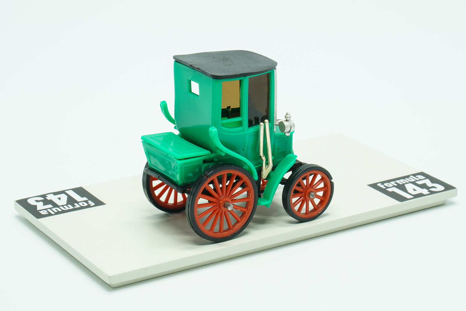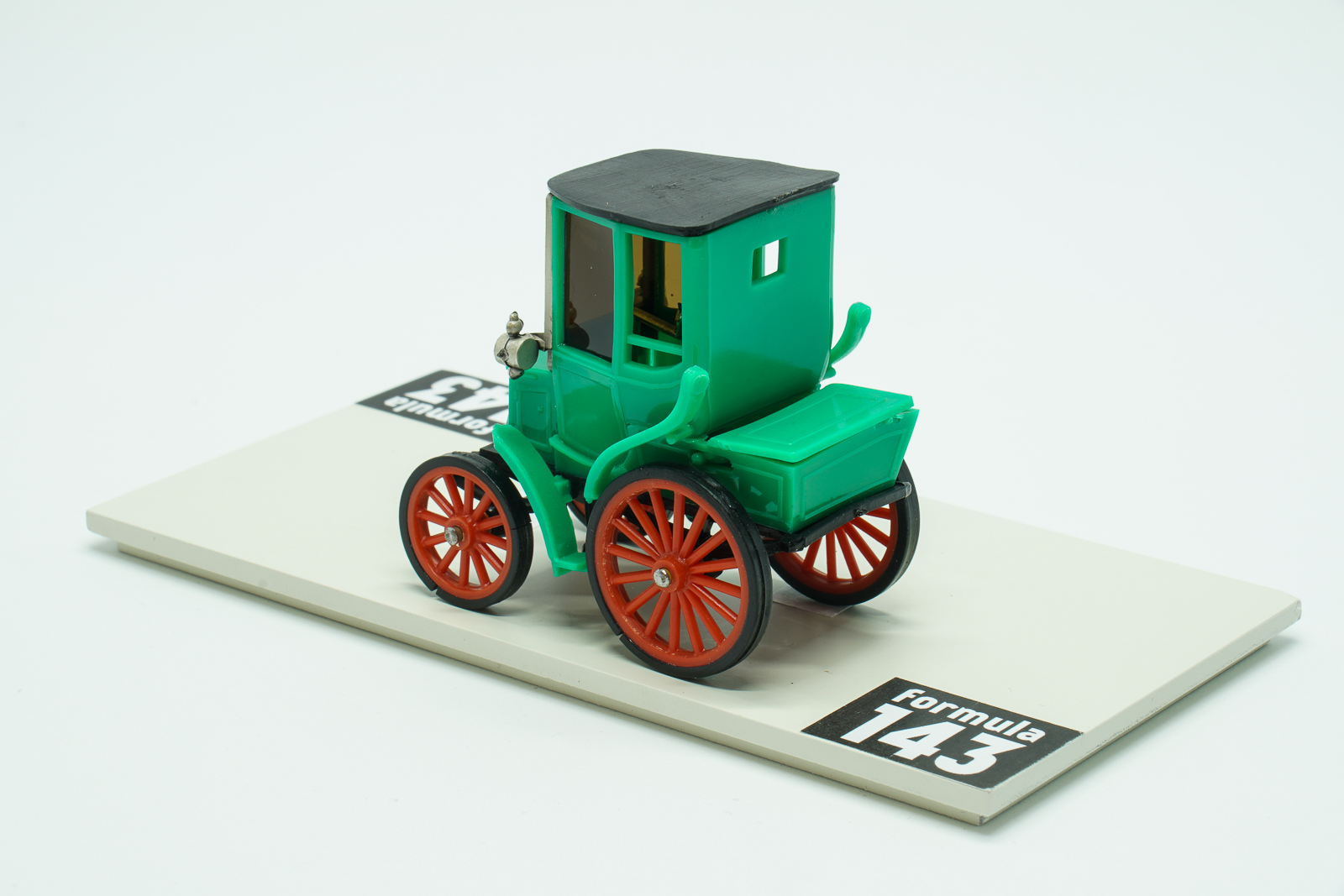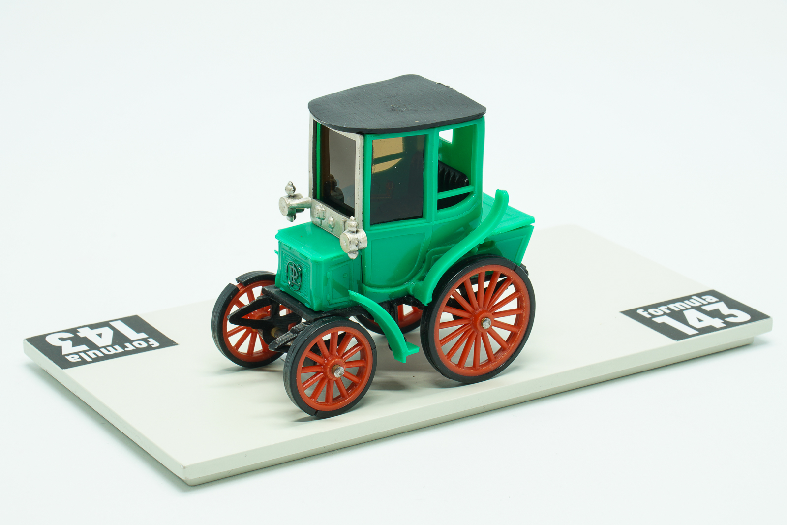 The 1895 Panhard-Levassor closed coupe cannot be attributed to any particular race but is similar to the open car on which Emile Levassor won the first real motor race, Paris – Bordeaux – Paris, in 1895. The plastic Minialuxe scale model was produced in 1960s.