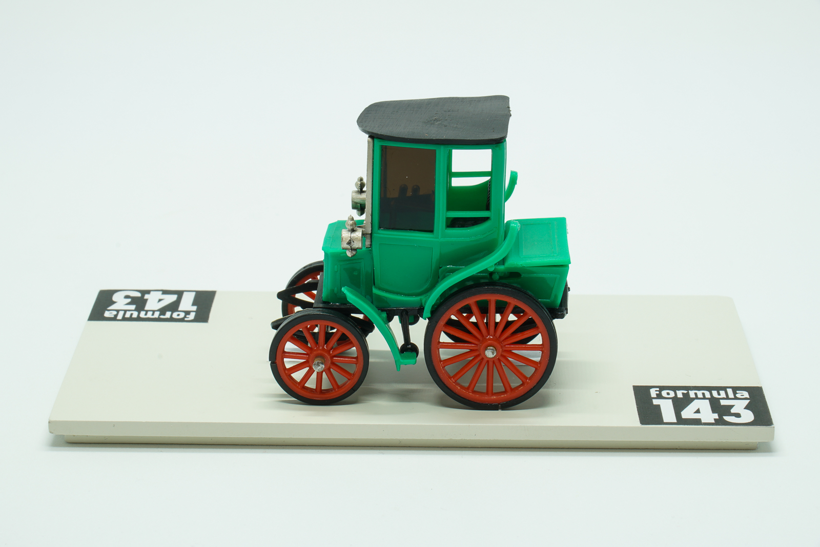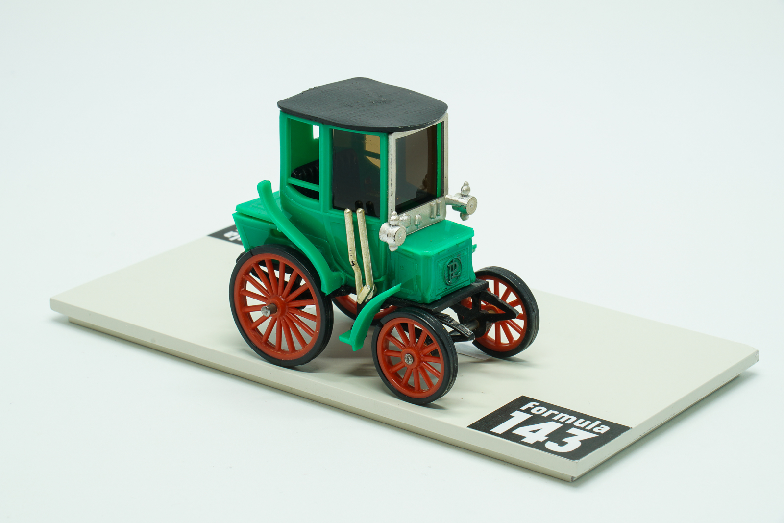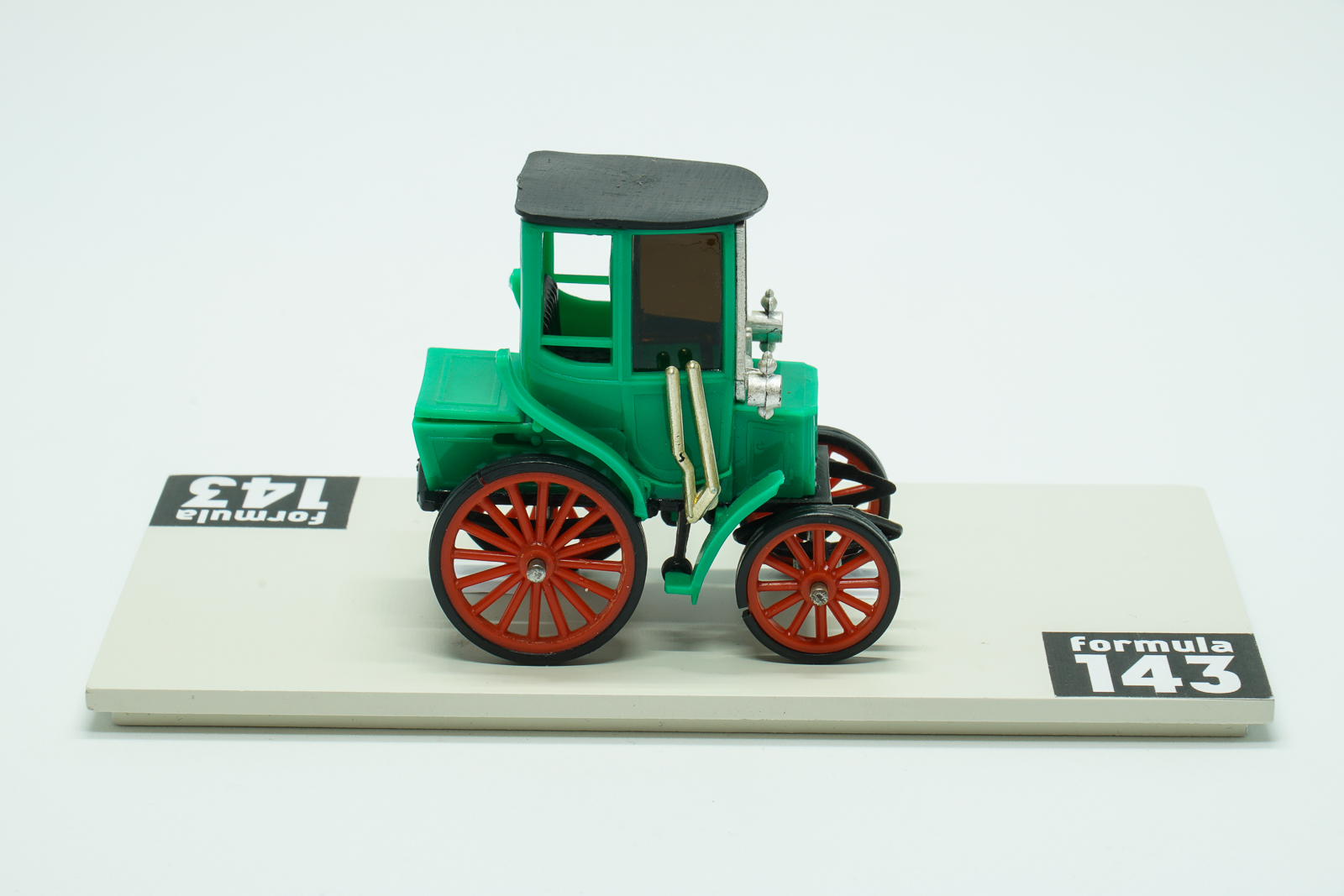 The 1895 Panhard-Levassor closed coupe cannot be attributed to any particular race but is similar to the open car on which Emile Levassor won the first real motor race, Paris – Bordeaux – Paris, in 1895. The plastic Minialuxe scale model was produced in 1960s.