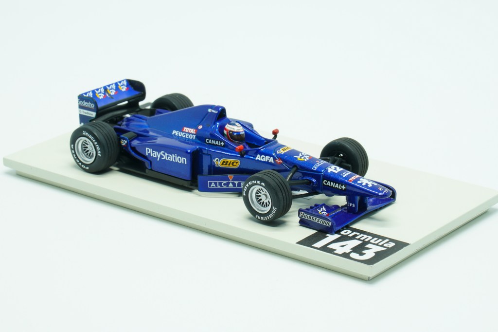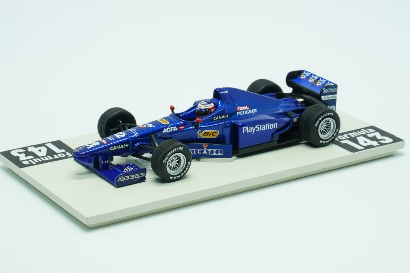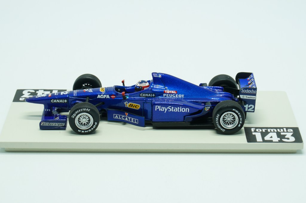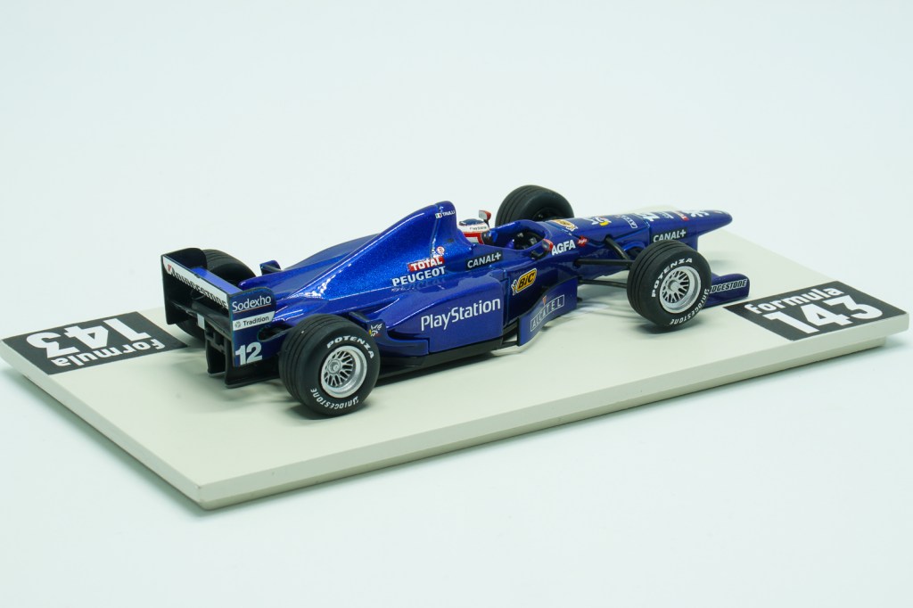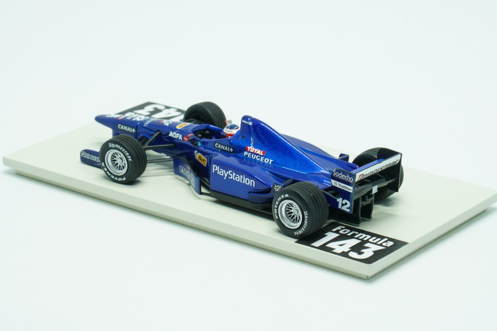 1998 was the second season for Prost F1 team. In 1997 when Prost acquired the remnants of Ligier F1, the Ligier car for the 1997 was already designed and built. So, Prost used it through the 1997 season under Prost badge but retained model designation as JS45. Thus the car is the first Prost and last Ligier F1 car simultaneously. The Minichamps scale model represents Prost JS45 in 1998 livery with Jarno Trulli behind the wheel as the launch car for the 1998 season.