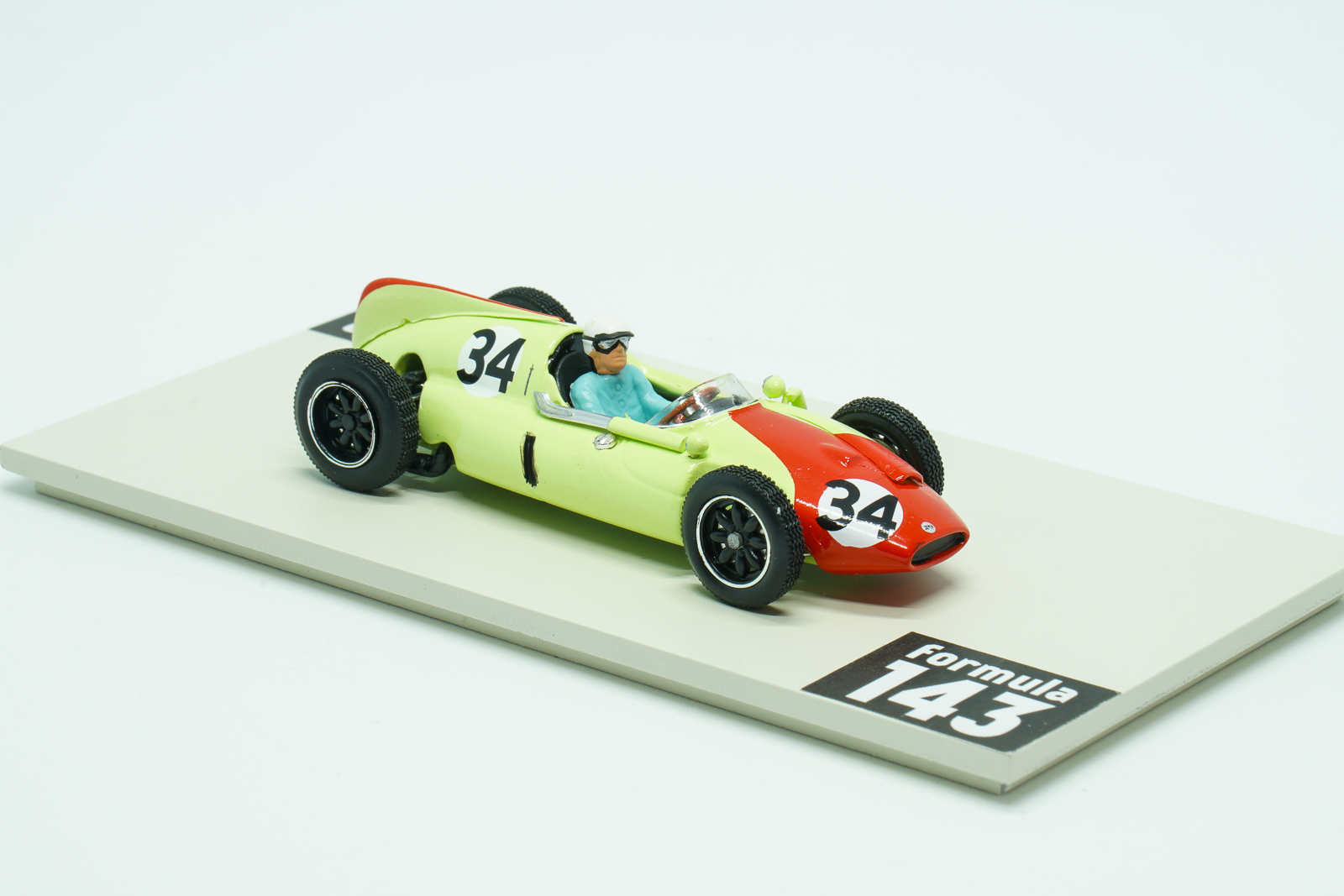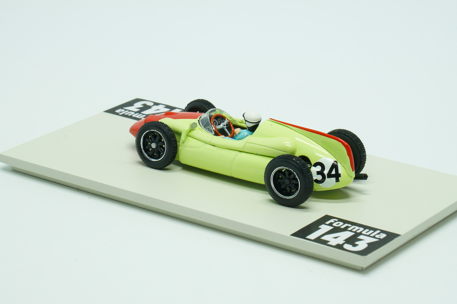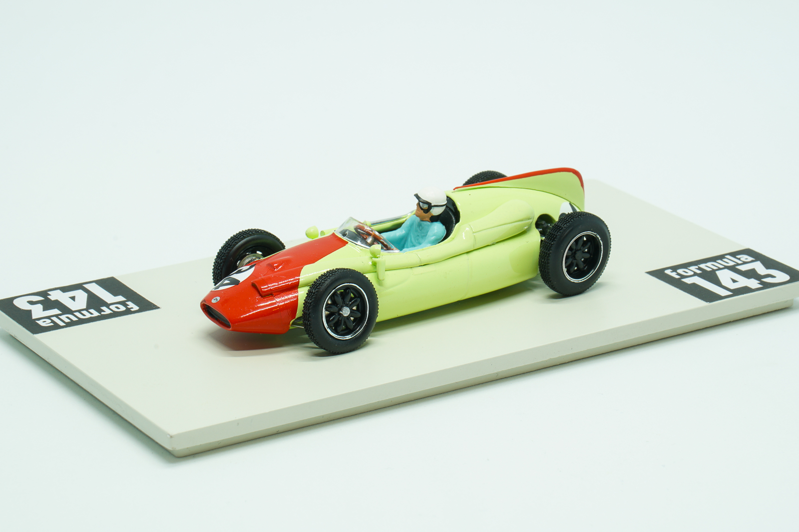 Cooper T51 has brought two consecutive Driver’s titles to Jack Brabham as well as two Constructors’ championships to Cooper Car Company in the 1959-1960 Formula One seasons. It is hard to imagine in today’s reality that the best Formula 1 car could be available not only to works team but virtually to any private entrant who was able to buy this relatively inexpensive machine. For instance, in 1960 T51 besides the factory team was used by more than a dozen of custom teams and private entrants. One of the most powerful private teams of the season was the Yeoman Credit Racing Team – UK-based British Racing Partnership team, run by Ken Gregory and Alfred Moss and sponsored by Yeoman Credit finance company. Permanent driver squad on board of Yeoman Credit cars in their distinctive bright livery were British Chris Bristow, Tony Brooks, Henry Taylor and Belgian Olivier Gendebien. The latter was the best team’s performer of the season. Gendebien took two podiums at Belgian and French Grand Prix and was 6th in the Driver’s Championship. This Quartzo scale model represents Gendebien’s car from his home Grand Prix where he has finished 3rd.