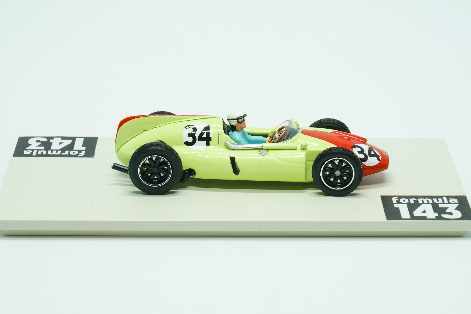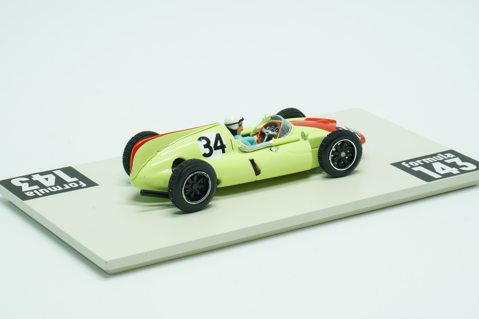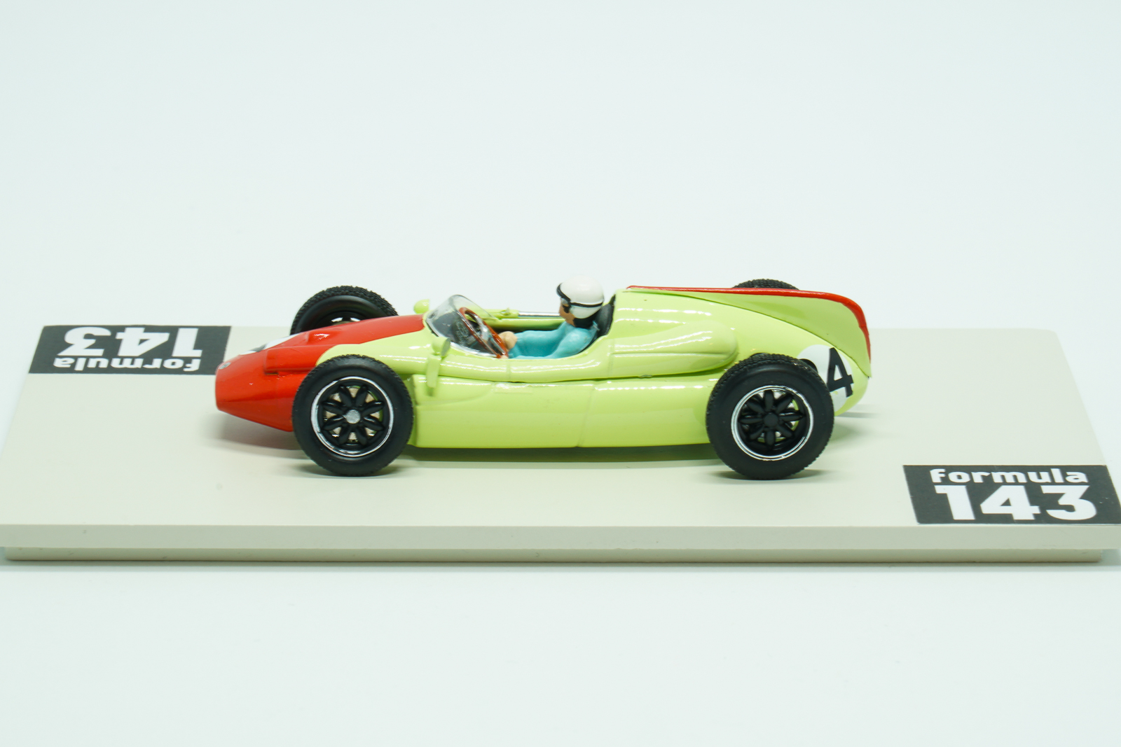 Cooper T51 has brought two consecutive Driver’s titles to Jack Brabham as well as two Constructors’ championships to Cooper Car Company in the 1959-1960 Formula One seasons. It is hard to imagine in today’s reality that the best Formula 1 car could be available not only to works team but virtually to any private entrant who was able to buy this relatively inexpensive machine. For instance, in 1960 T51 besides the factory team was used by more than a dozen of custom teams and private entrants. One of the most powerful private teams of the season was the Yeoman Credit Racing Team – UK-based British Racing Partnership team, run by Ken Gregory and Alfred Moss and sponsored by Yeoman Credit finance company. Permanent driver squad on board of Yeoman Credit cars in their distinctive bright livery were British Chris Bristow, Tony Brooks, Henry Taylor and Belgian Olivier Gendebien. The latter was the best team’s performer of the season. Gendebien took two podiums at Belgian and French Grand Prix and was 6th in the Driver’s Championship. This Quartzo scale model represents Gendebien’s car from his home Grand Prix where he has finished 3rd.