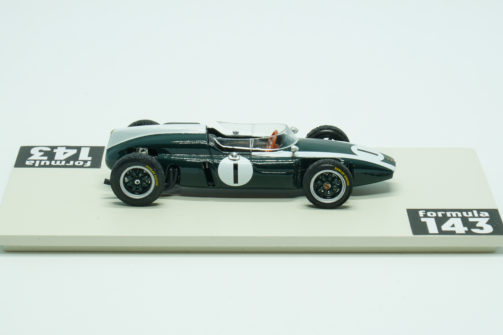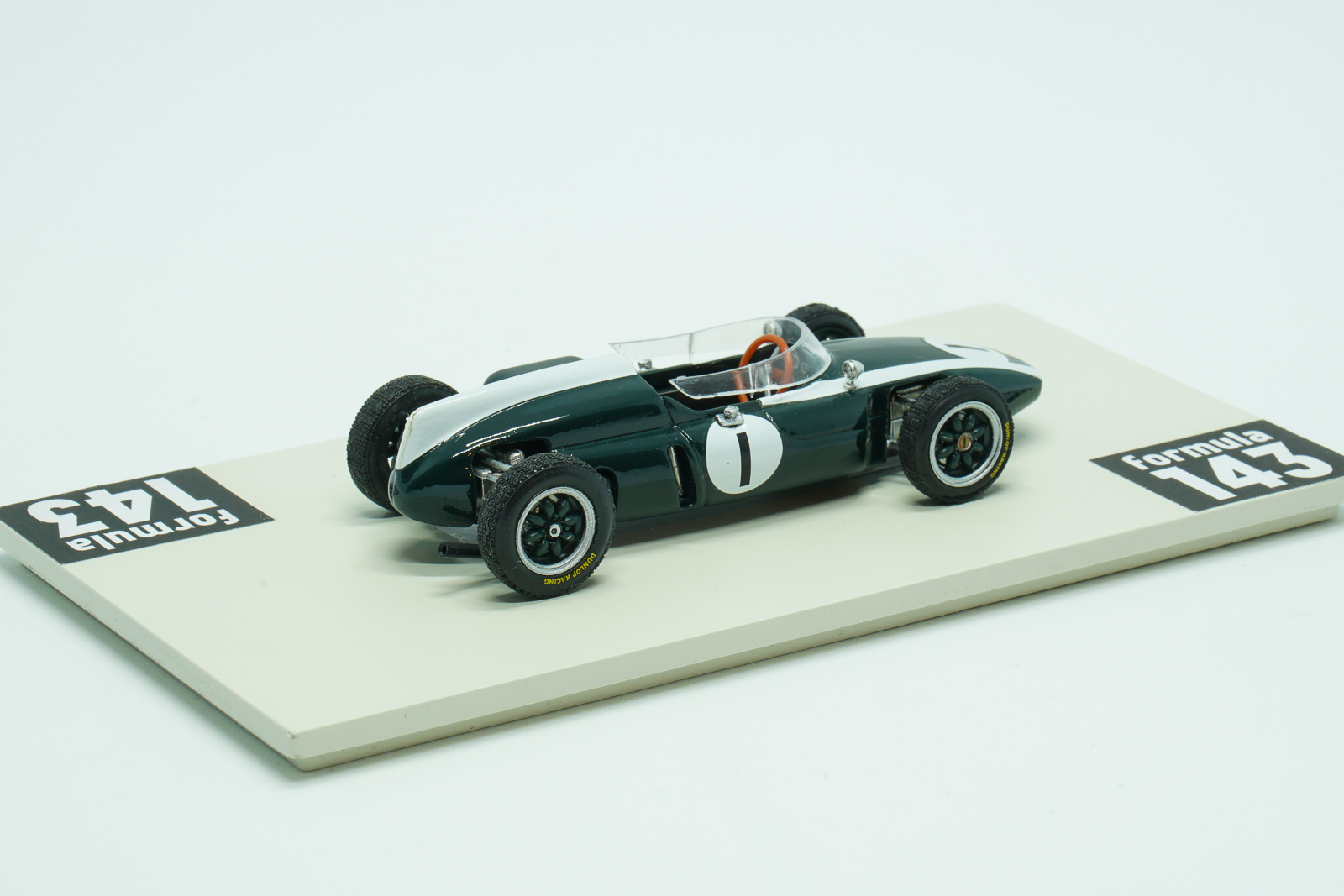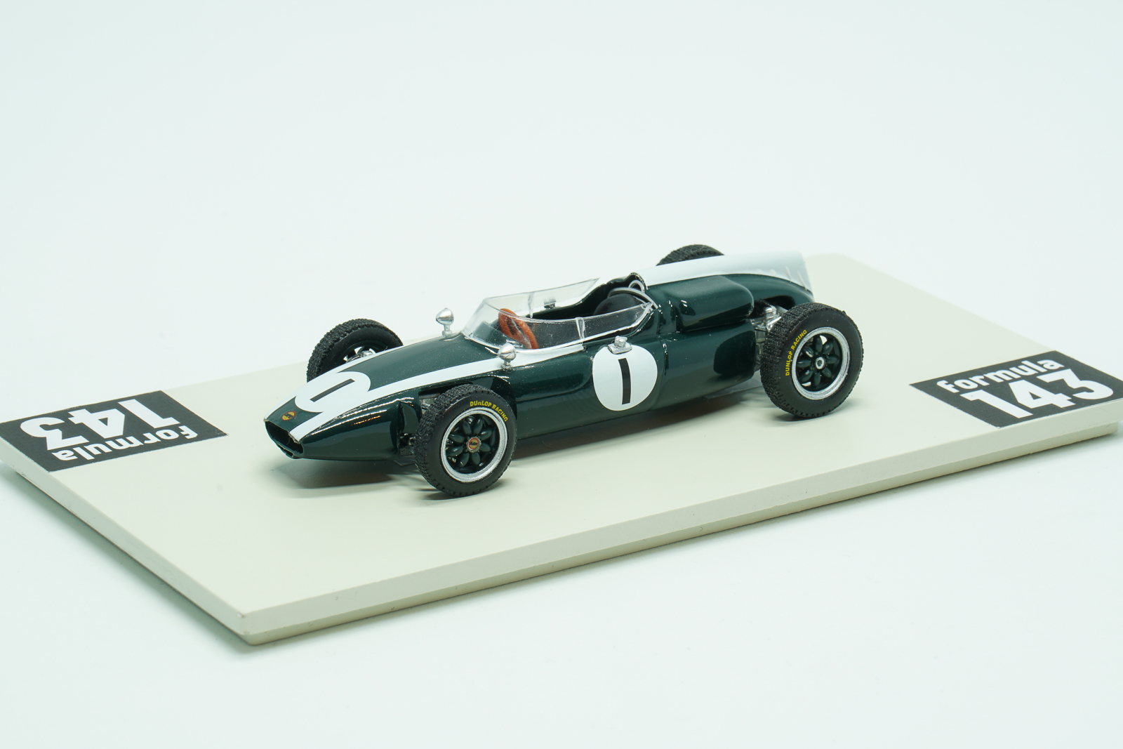 Cooper Car Company started the 1960 season with T51, its successful model of the previous year. But after extraordinary performance of new Lotus 18 at races in Argentina in the beginning of the season, team principal John Cooper and designer Owen Maddock have no option rather than to try redevelop T51 into new chassis copying best Lotus technical solutions in in addition to winning Cooper combination of simplicity and reliability. New T53 was born very quickly and was available for Monaco Grand Prix in May. It was more lighter, lower and aerodynamically effective than T51. Jack Brabham, despite disqualification in Monaco for outside assistance, won four next Championship races and took his second consecutive Drivers’ Championship title. This scale model by Brumm is Jack’s T53 from victorious British GP at Silverstone.