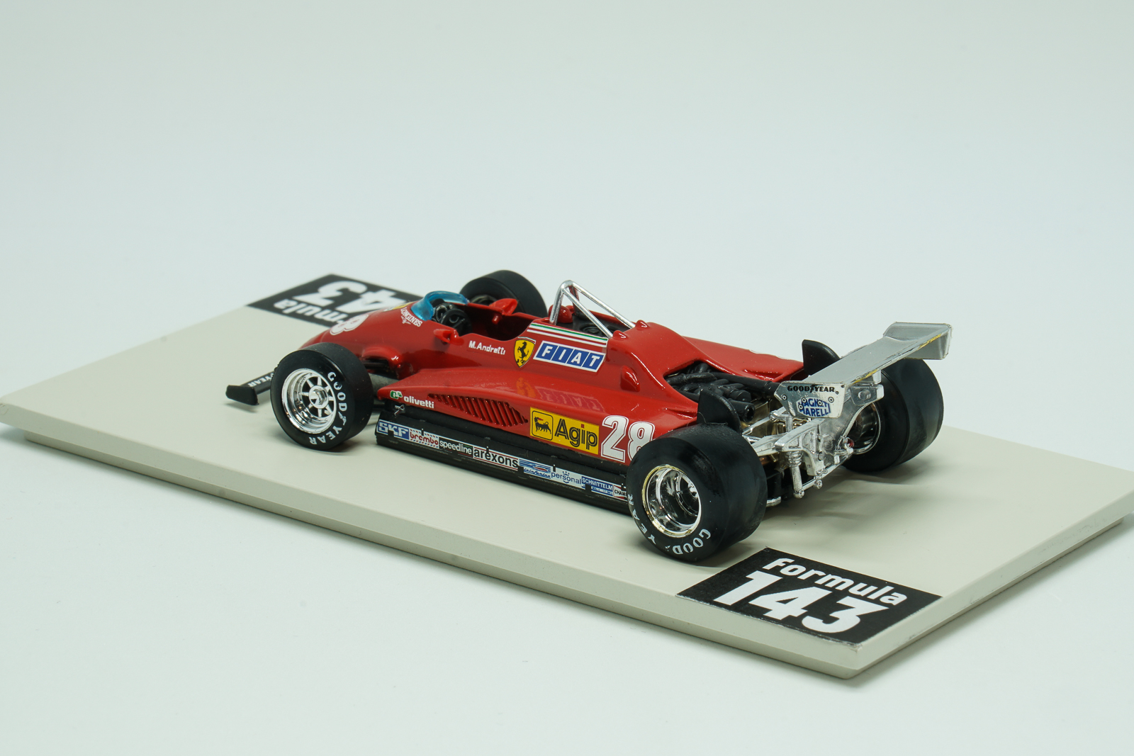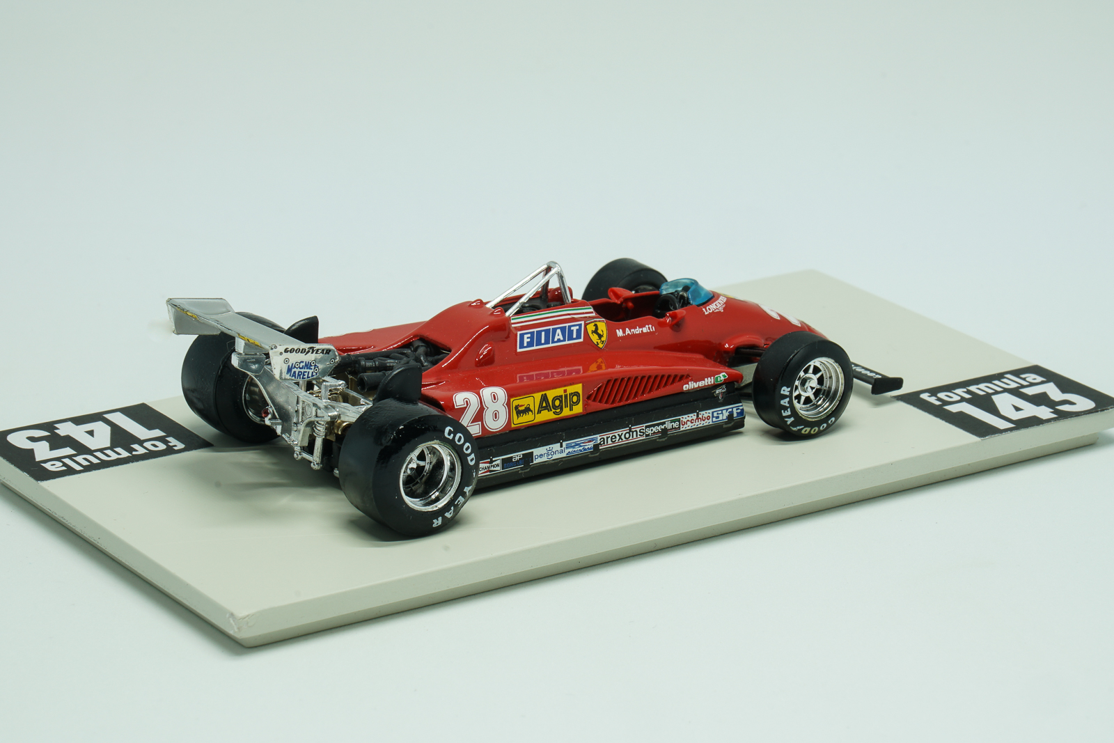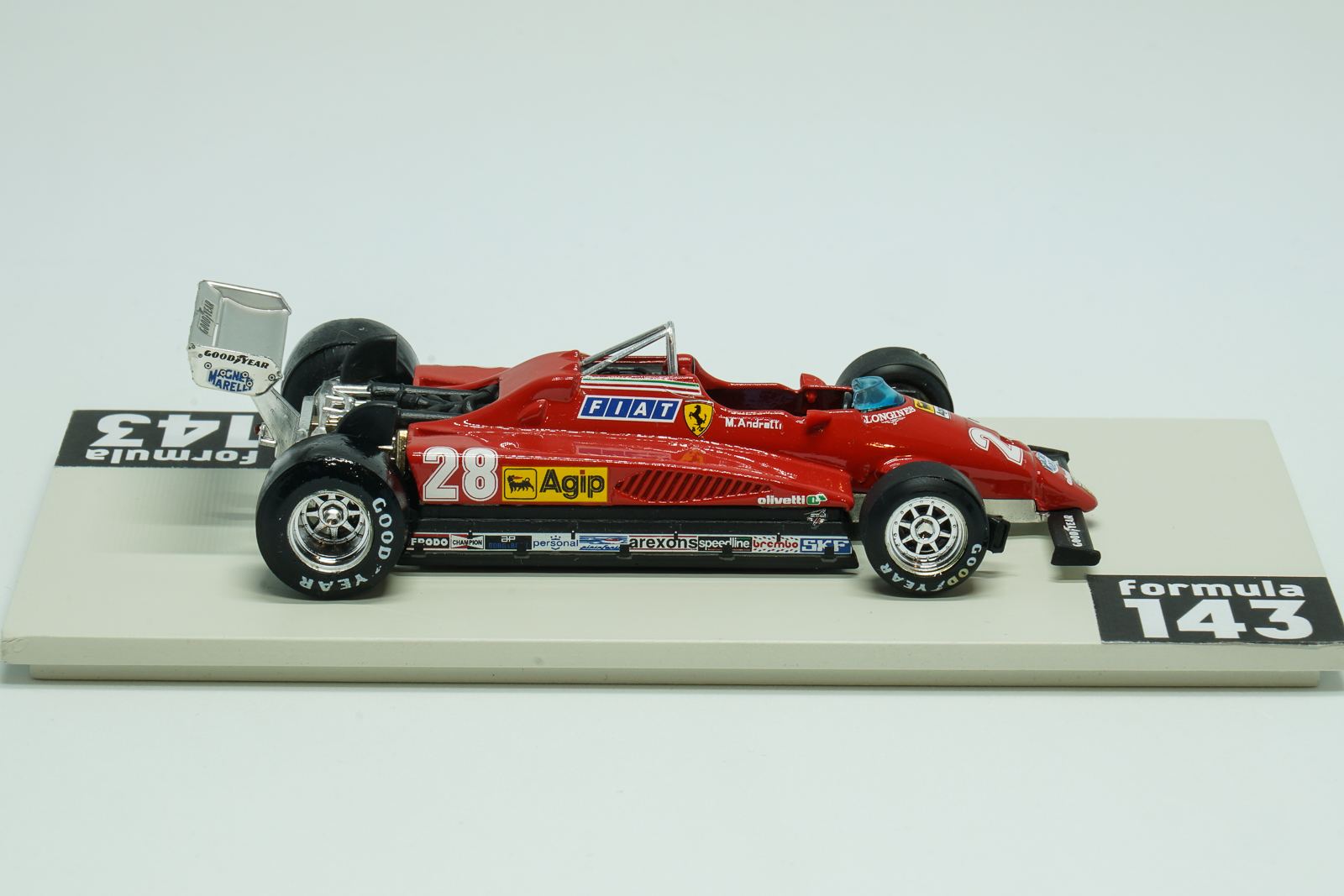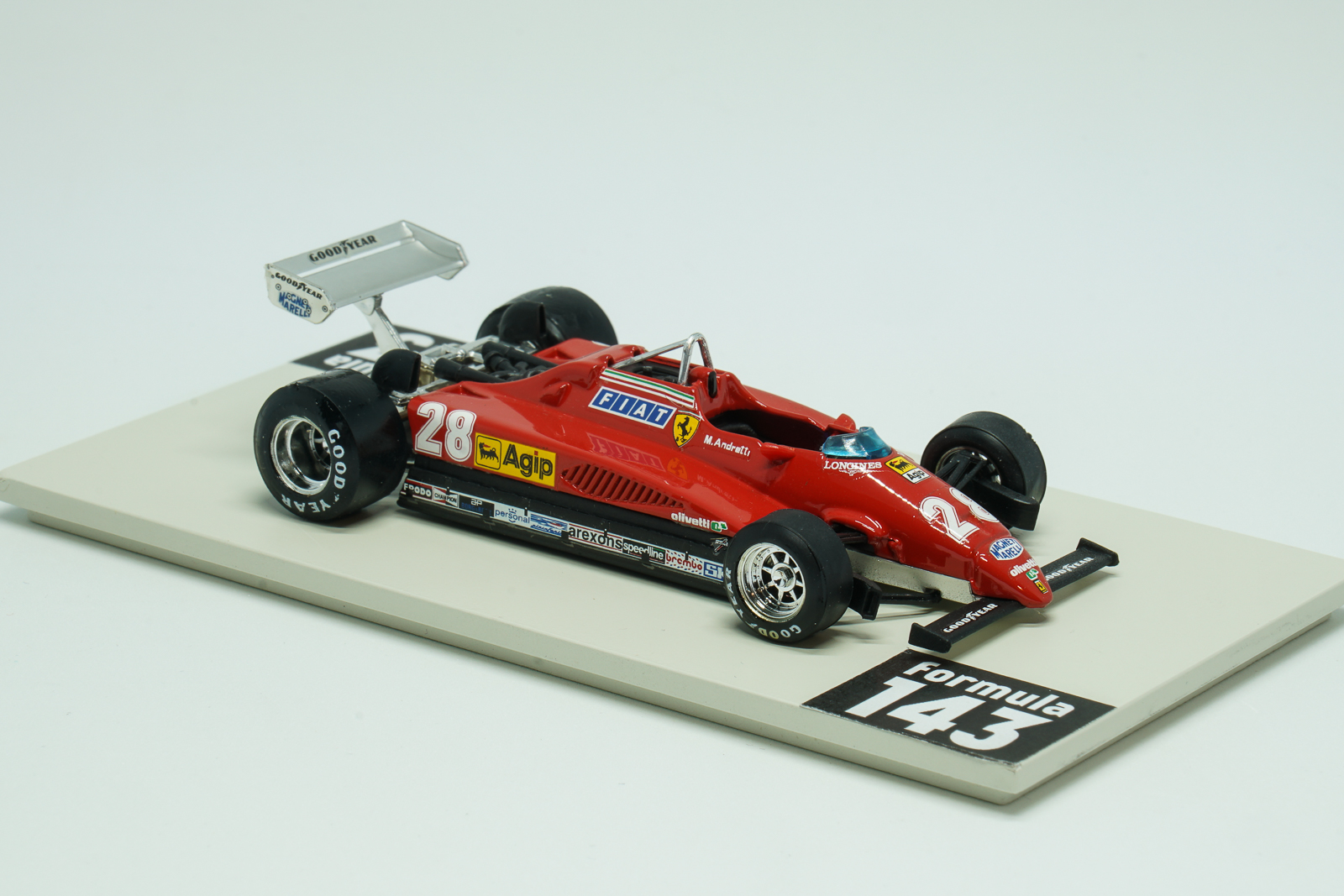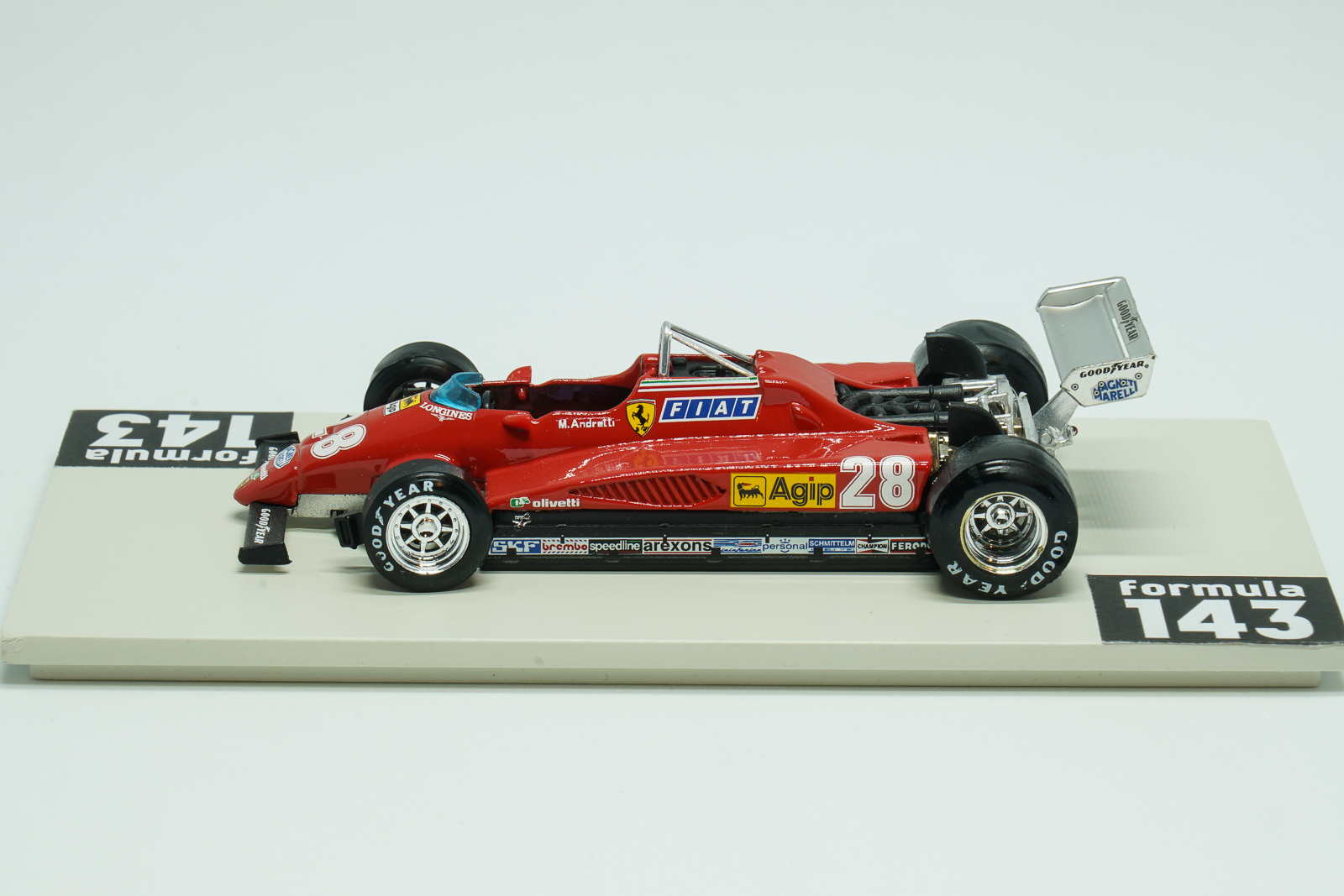 American veteran was recruited by Ferrari for the last two races of the 1982 Formula 1 Championship to replace Didier Pironi who was very seriously injured in an accident during wet qualifying session at German Grand Prix. In his first race after comeback Andretti drove 126C2 to the third position at Italian Grand Prix in Monza. It was Andretti’s last podium and last finish in F1 race. See also model of Andretti’s 126C2 from Formula 1 Auto Collection.