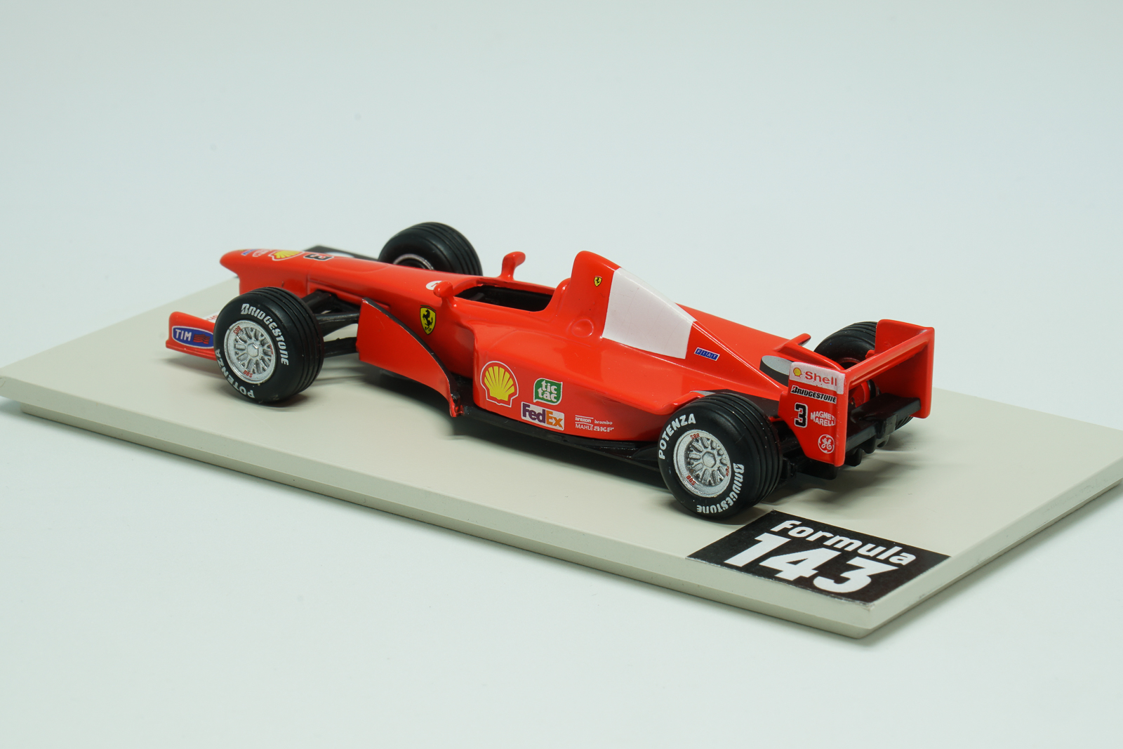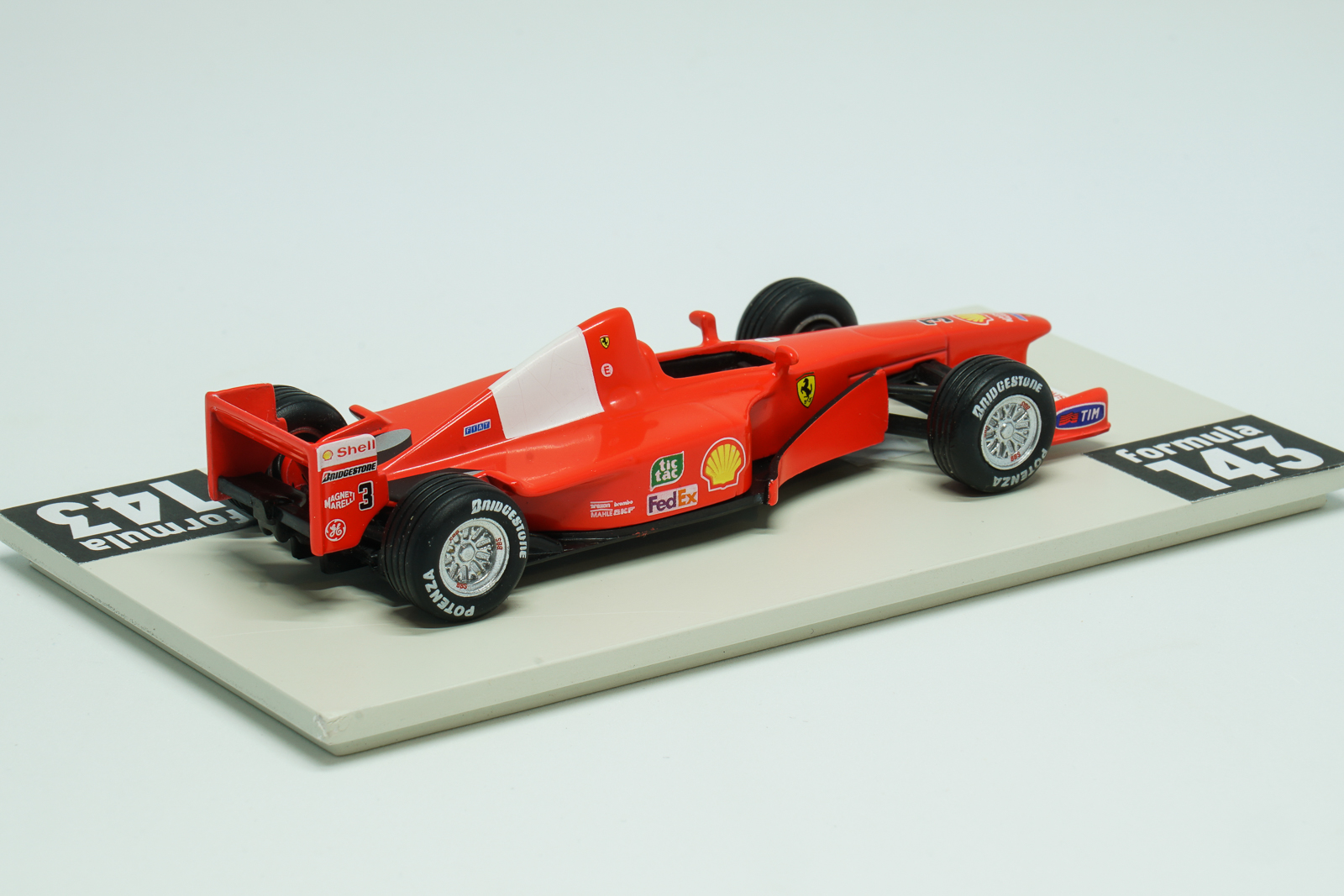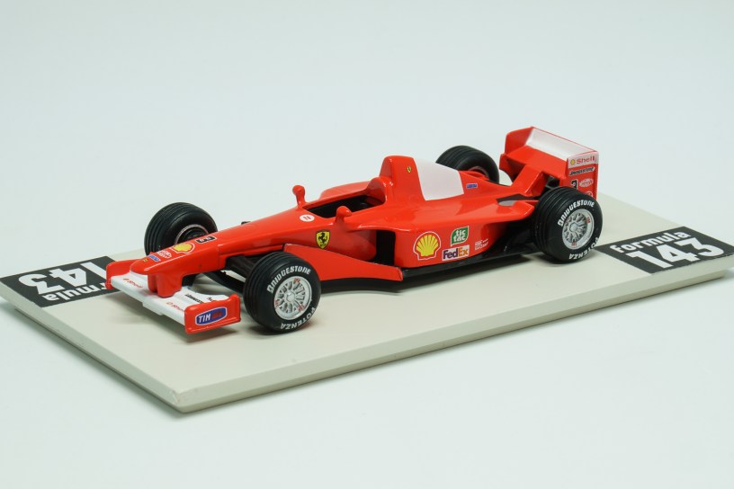 F1-2000 was the car which started the era of Ferrari dominance through the first half of the decade. The car designed by Rory Byrne was the further development of the F300 and F399 from the previous two seasons. The major improvement was the new engine with a wider V-angle (90 degrees vs. 75 degrees in the 048 engine). Michael Schumacher who was in his fifth season with Ferrari won his third World Championship title after a year-long battle with Hakkinen on McLaren. Schumacher won 9 Grand Prix against 4 wins by Mika. It was Ferrari’s first crown for 21 years. It also defended Ferrari’s constructors’ title. This scale model is from Fabbri / RBA collection “Grand Prix. Legends of Formula 1”. Model was built by Hot Wheels but the edition for the collection is of significantly lower quality than the same model from original Hot Wheels production. See also ferrari F1-2000 by IXO from Ferrari F1 Collection.