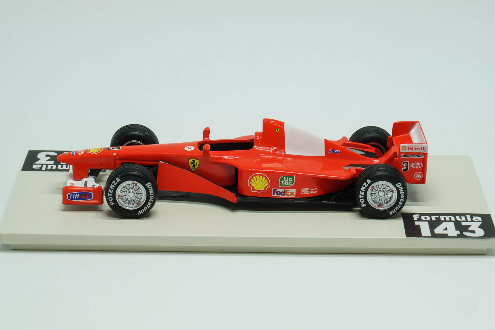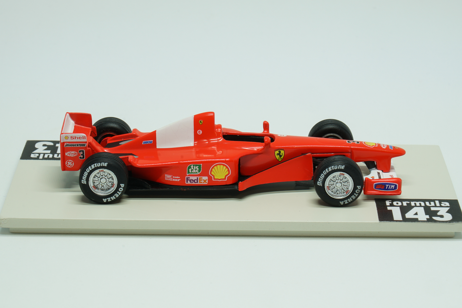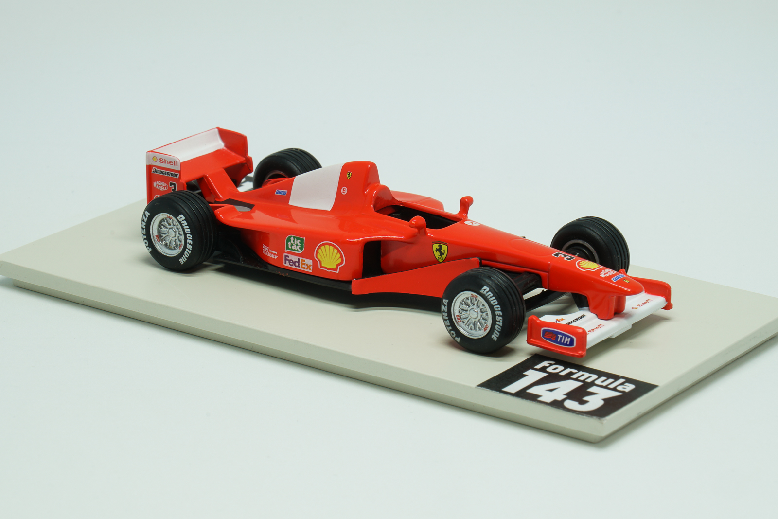F1-2000 was the car which started the era of Ferrari dominance through the first half of the decade. The car designed by Rory Byrne was the further development of the F300 and F399 from the previous two seasons. The major improvement was the new engine with a wider V-angle (90 degrees vs. 75 degrees in the 048 engine). Michael Schumacher who was in his fifth season with Ferrari won his third World Championship title after a year-long battle with Hakkinen on McLaren. Schumacher won 9 Grand Prix against 4 wins by Mika. It was Ferrari’s first crown for 21 years. It also defended Ferrari’s constructors’ title. This scale model is from Fabbri / RBA collection “Grand Prix. Legends of Formula 1”. Model was built by Hot Wheels but the edition for the collection is of significantly lower quality than the same model from original Hot Wheels production. See also ferrari F1-2000 by IXO from Ferrari F1 Collection.