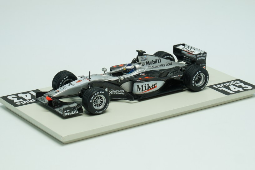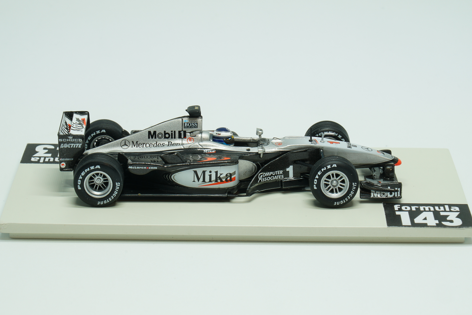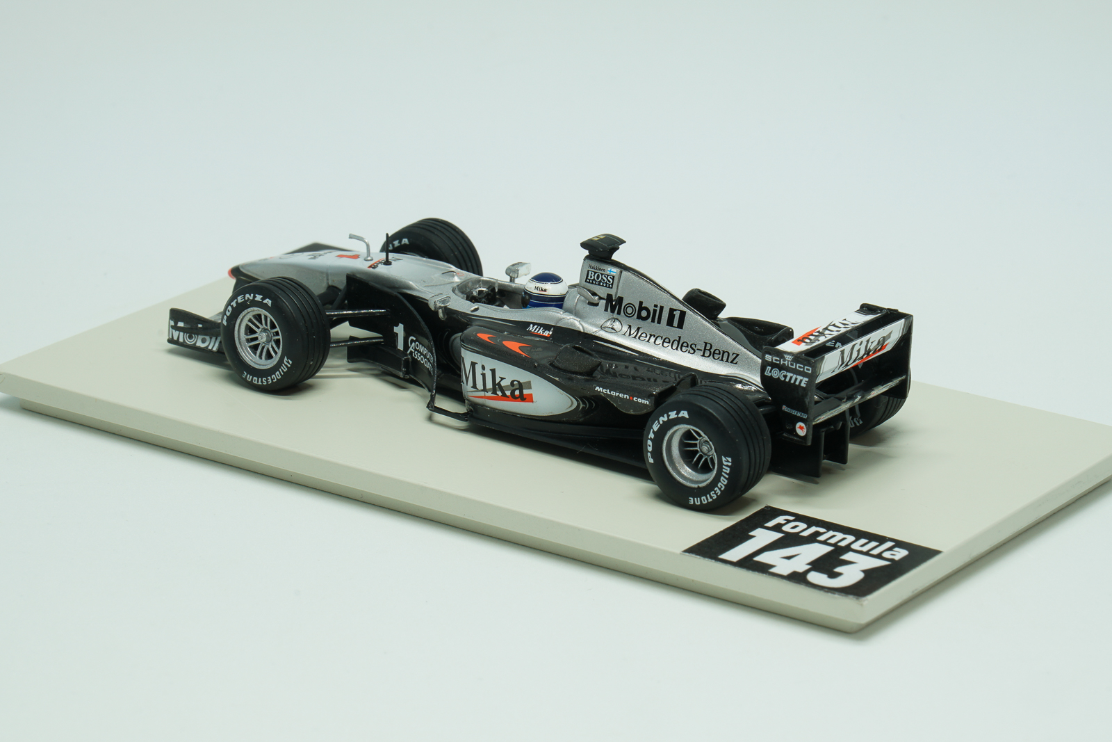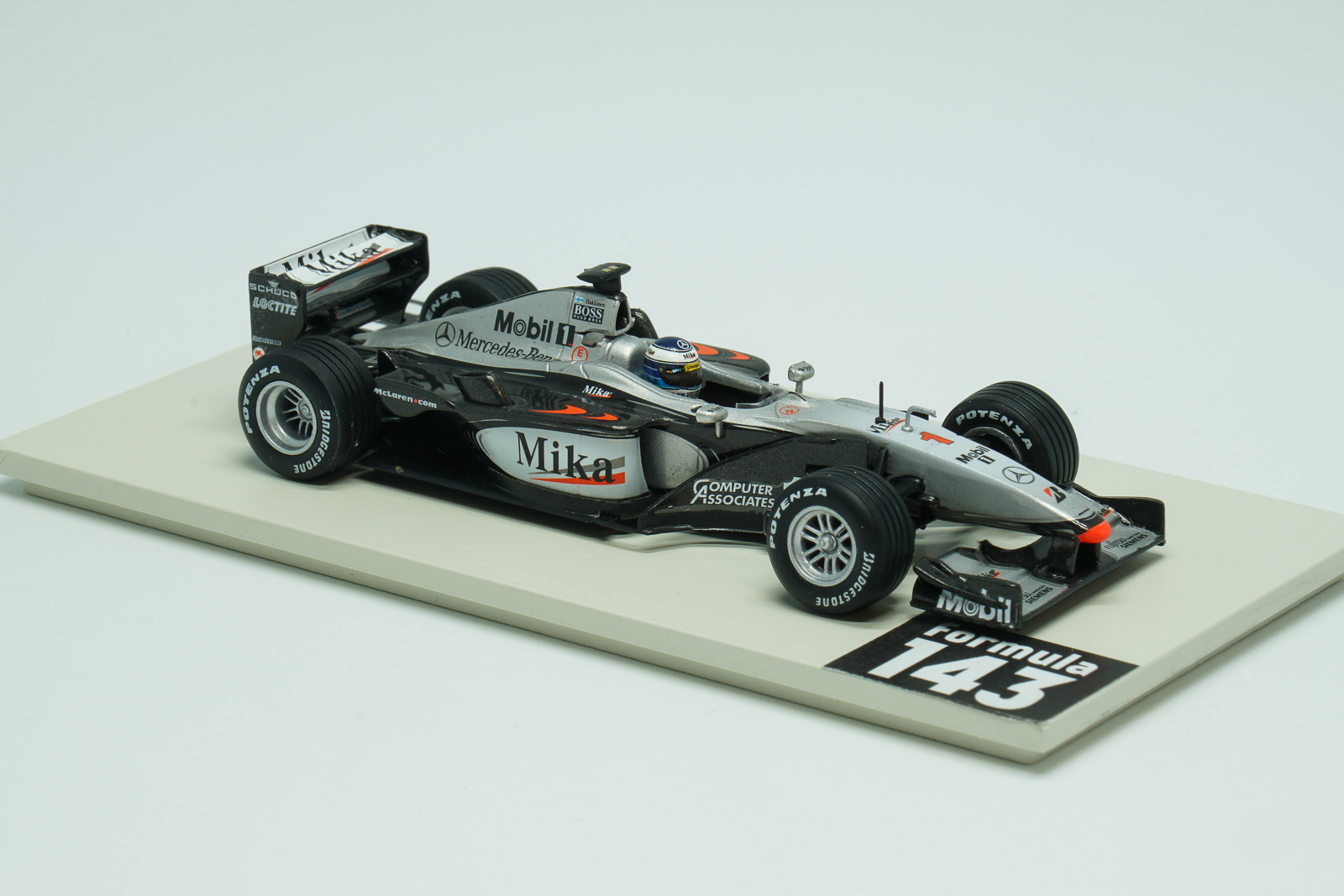 The MP4/15 was the direct development of MP4/14, the Championship winning car from the previous season. Designed by Adrian Newey, equipped with reliable and powerful Mercedes-Benz V10 engine and driven by Mika Hakkinen and David Coulthard, MP4/15 was one of the major contenders for the Championship along with Ferrari F1-2000 in hands of Michael Schumacher and Rubens Barichello. The car proved highly competitive and scored seven victories (4 by Hakkinen and 3 by Coulthard), but was still narrowly beaten to both championships by Michael Schumacher in the Ferrari F1-2000. Mika won in Spain, Austria, Hungary and Belgium and took 2nd position in the final Championship standings. In majority of the races McLaren used ‘West’ logos. The exceptions were British and French Grands Prix, where tobacco advertising was replaced with driver’s names.