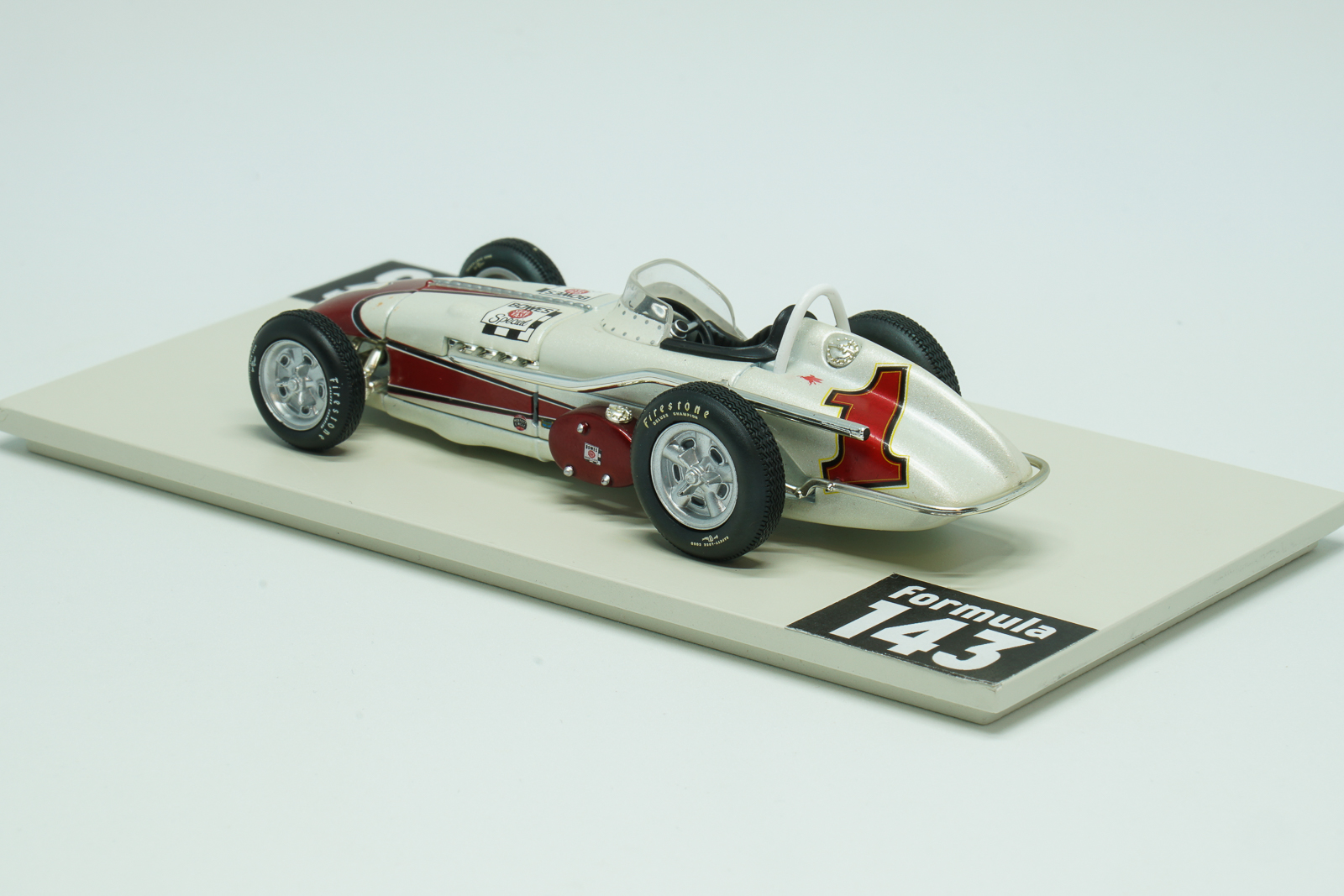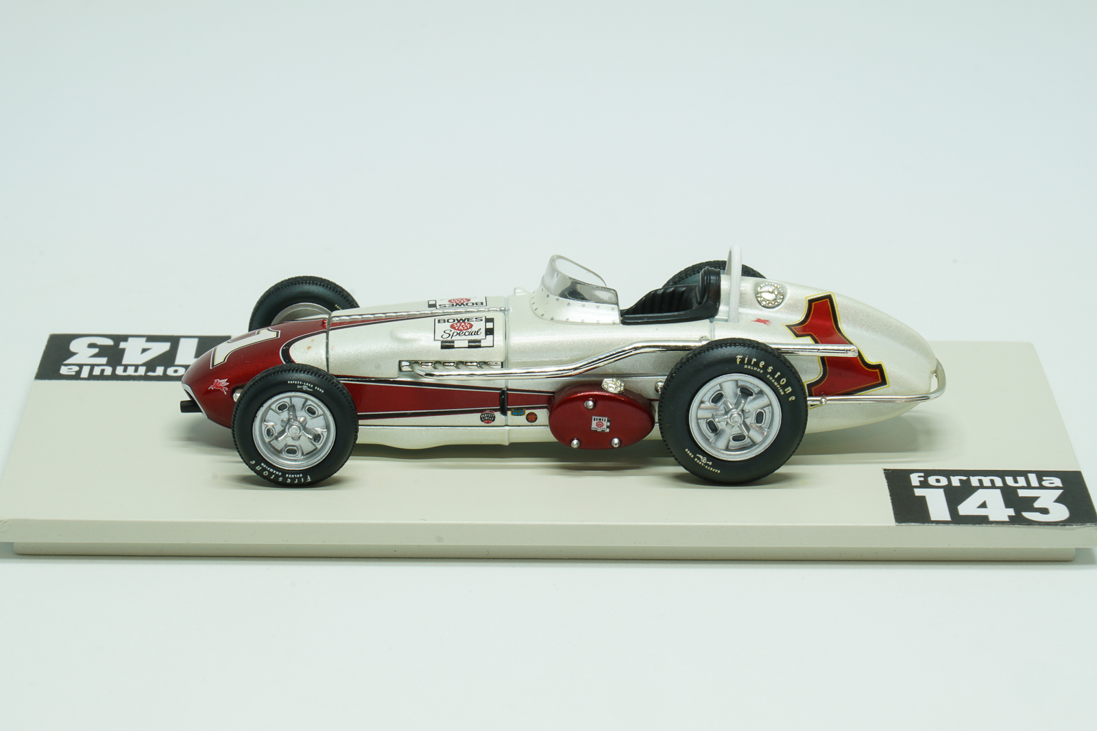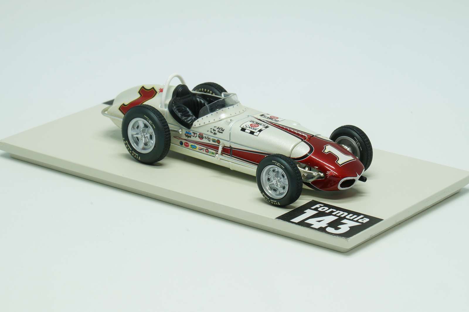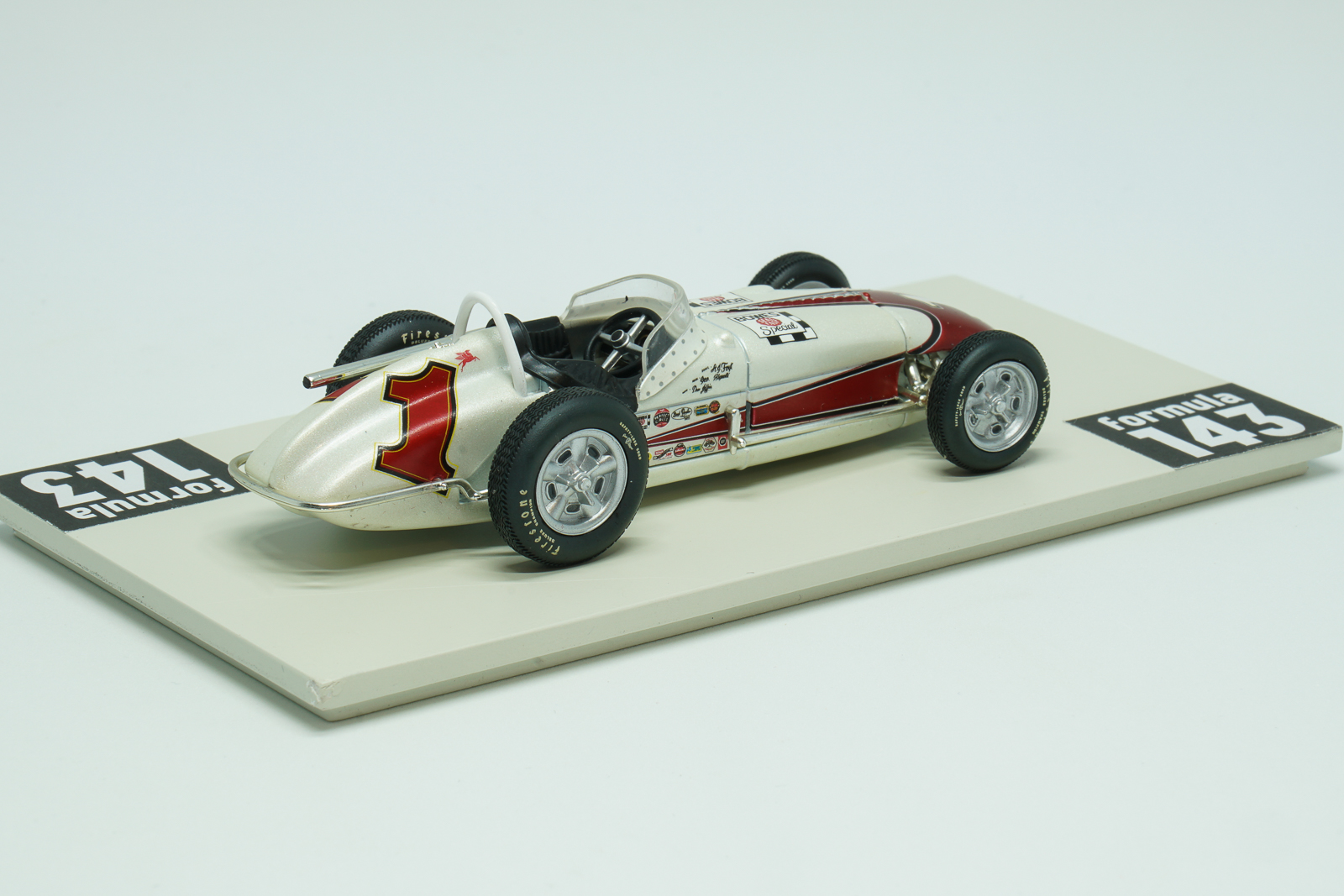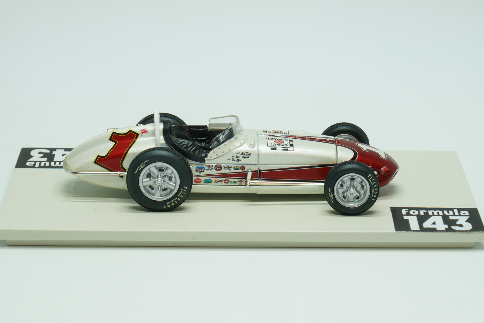In 1961 Indianapolis 500 was run for the 45th time and first time since the 1950 Indy 500 was not a formal part of World Drivers’ Championship. Antony Joseph, or just A.J., Foyt Jr. at age 27 at that time was already experienced racing driver and reigning USAC champion. But Indy 500 race has not yet been successful to him. in the 1961 edition late in the race when leading, Foyt made a pit stop for fuel, but a refueling malfunction meant that he returned to the race without enough fuel to finish. Eddie Sachs, unaware that Foyt’s now-quicker car was light on fuel, pushed hard to keep up—and Sachs had to pit from the lead with just three laps remaining to replace a shredded right rear tire. Foyt pitted again also but only for enough fuel to finish. He took over the lead and beat Sachs by just 8.28 seconds. The winning 1961 Indy 500 car was constructed by Trevis, an American racing car constructor of the 1950s and 1960s, established by Floyd Trevis of Youngstown, Ohio. The car was powered by Offenhauser 4.13-litre engine, familiarly known as the “Offy”, developed by Fred Offenhauser and Harry Arminius Miller. According to American traditions officially the car was named after the sponsor, Bowes Seal Fast, automotive parts and repair manufacturer. For Trevis it was their last USAC season and first and only Indianapolis 500 victory. After Indy 500 Foyt has continued his run to USAC silver crown. He won Langhorne 100, Ted Horn Memorial at DuQuoin State Fairgrounds, and Hoosier Hundred at Indiana State Fairgrounds and became the first driver to successfully defend his points USAC championship. The scale model of Foyt’s winning car was made in 2000s by Hobby Horse, Brand of American Carousel 1 toy and model company, as a part of a series of few Indy 500 winners in 1:43 scale.
