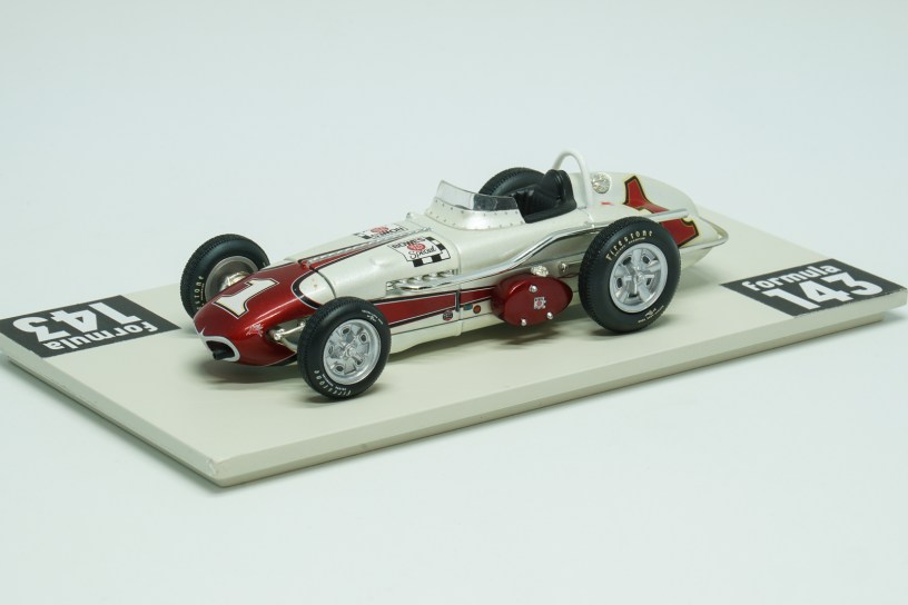 In 1961 Indianapolis 500 was run for the 45th time and first time since the 1950 Indy 500 was not a formal part of World Drivers’ Championship. Antony Joseph, or just A.J., Foyt Jr. at age 27 at that time was already experienced racing driver and reigning USAC champion. But Indy 500 race has not yet been successful to him. in the 1961 edition late in the race when leading, Foyt made a pit stop for fuel, but a refueling malfunction meant that he returned to the race without enough fuel to finish. Eddie Sachs, unaware that Foyt’s now-quicker car was light on fuel, pushed hard to keep up—and Sachs had to pit from the lead with just three laps remaining to replace a shredded right rear tire. Foyt pitted again also but only for enough fuel to finish. He took over the lead and beat Sachs by just 8.28 seconds. The winning 1961 Indy 500 car was constructed by Trevis, an American racing car constructor of the 1950s and 1960s, established by Floyd Trevis of Youngstown, Ohio. The car was powered by Offenhauser 4.13-litre engine, familiarly known as the “Offy”, developed by Fred Offenhauser and Harry Arminius Miller. According to American traditions officially the car was named after the sponsor, Bowes Seal Fast, automotive parts and repair manufacturer. For Trevis it was their last USAC season and first and only Indianapolis 500 victory. After Indy 500 Foyt has continued his run to USAC silver crown. He won Langhorne 100, Ted Horn Memorial at DuQuoin State Fairgrounds, and Hoosier Hundred at Indiana State Fairgrounds and became the first driver to successfully defend his points USAC championship. The scale model of Foyt’s winning car was made in 2000s by Hobby Horse, Brand of American Carousel 1 toy and model company, as a part of a series of few Indy 500 winners in 1:43 scale.