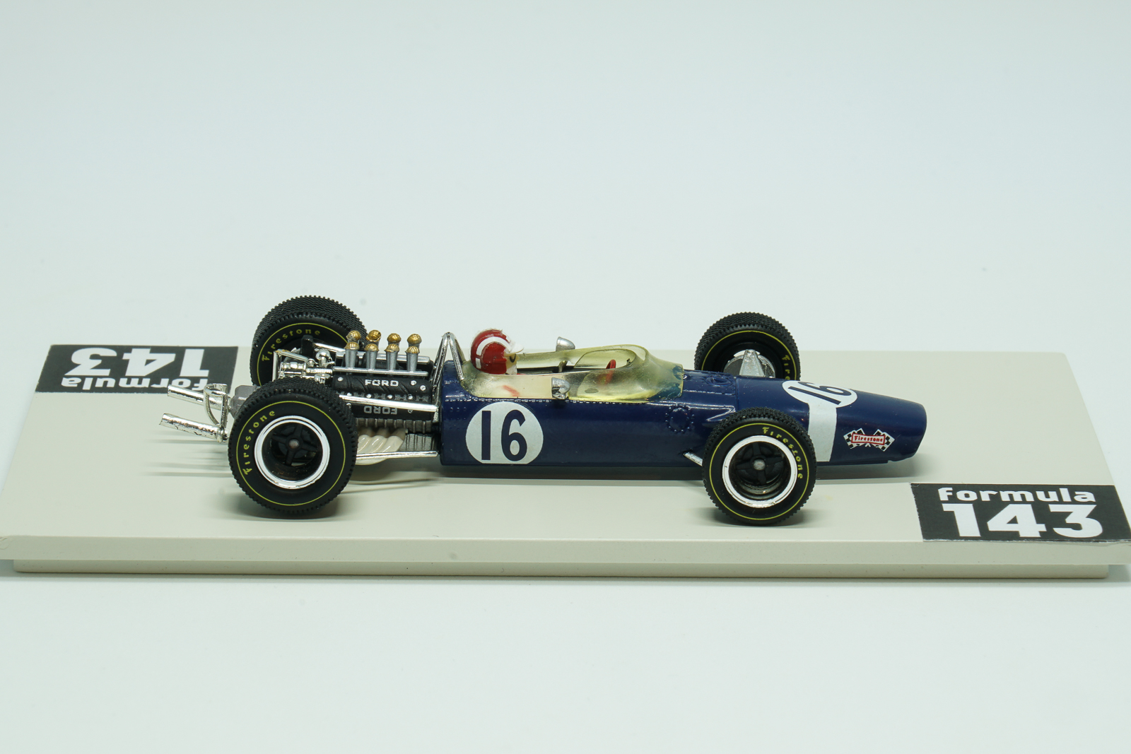 Swiss driver Joseph Siffert run Lotus 49 and 49B in 1968 season under the banners of Rob Walker/Jack Durlacher Racing Team, F1’s most successful privateer in history. Siffert got his new 49B for British Grand Prix at Silverstone and won this race, which was his first out of two formula One Championship Grand Prix victories. This scale model by Quartzo is Siffert’s Lotus 49 from Spanish Grand Prix 1968.