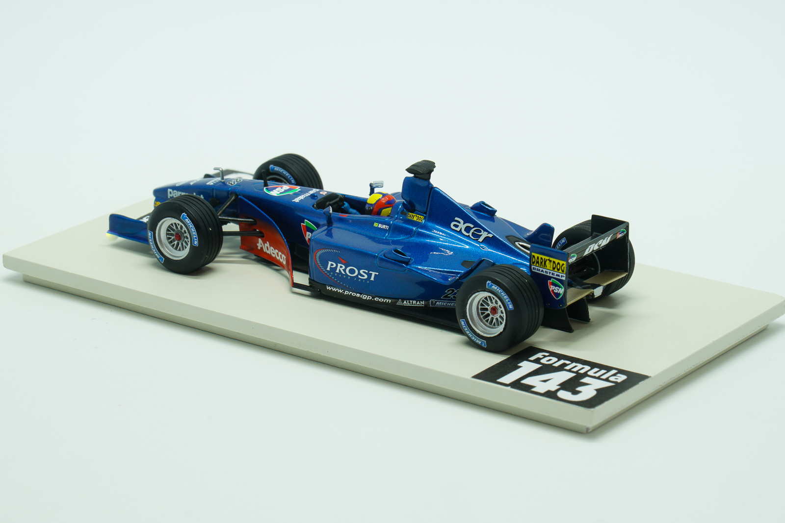 The 2001 was the final season for Prost Grand Prix team. Accordingly, Prost AP04 was the last car constructed by Alain Prost’s company. AP04 designed by Henri Durand and John Barnard was powered by Ferrari V10 engine badged as Acer, the Taiwanese electronics company who was the general sponsor of Prost F1 team. The car was not very fast, but reliable and Prost’s driver number one, Jean Alesi, has finished in all 12 races with the team in 2001, including 3 races in points. But not the car was the major problem. Team faced serious financial problems after leaving of previous title sponsor Gauloises. Gaston Mazzacane, who took the second seat in the team at the beginning of the season brought from Minardi his personal sponsor PSN, but has left Prost after 4 Grand Prix. Then Acer provided the sponsorship but that was not enough to survive. The drivers’ lineup changed completely – Alesi left for Jordan and Mazzacane was replaced by Brazilian Luciano Burti who was fired from Jaguar after four races. Burti himself also did not keep the seat until the end of the season. At Belgian Grand Prix at Spa Luciano crashed into the barriers and was seriously injured. His seat was taken by Czech rookie Tomáš Enge for last three Grand Prix of the year.