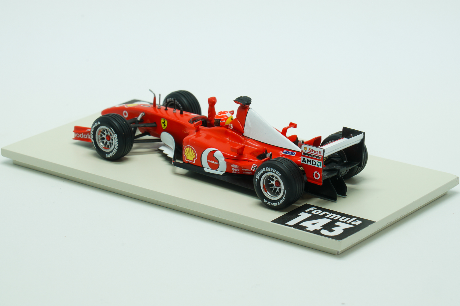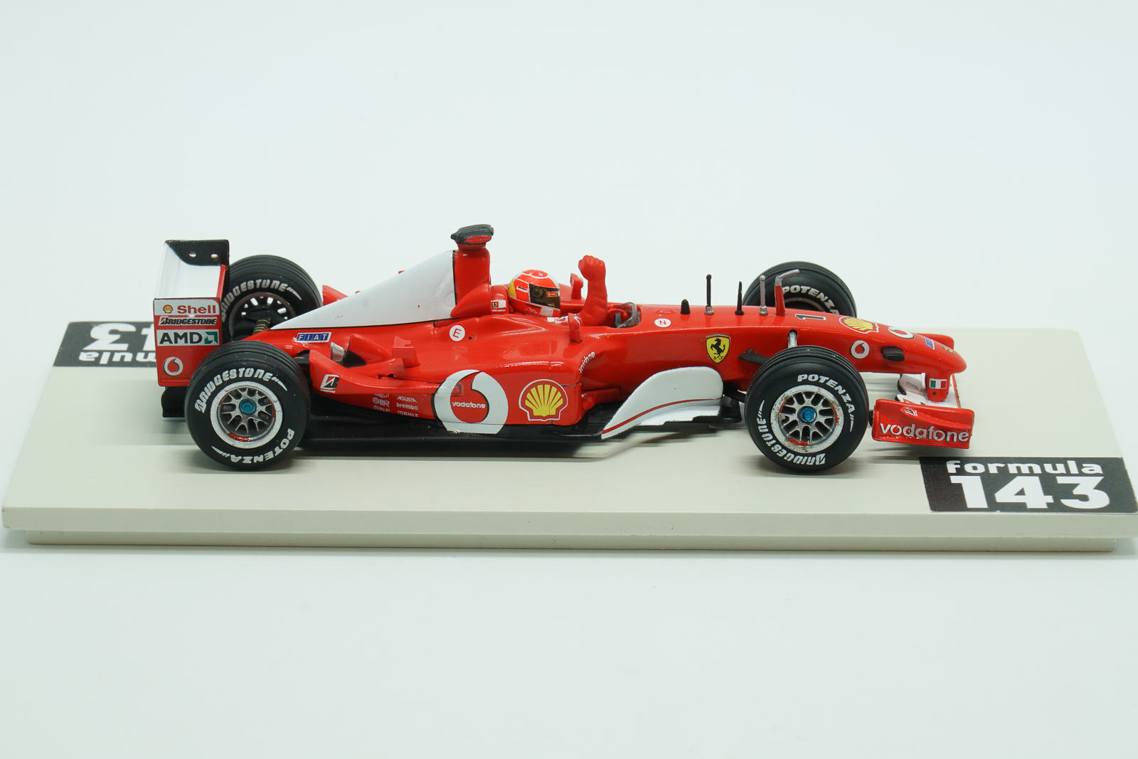 The Ferrari F2002 was one of the most successful F1 cars of all time. The car was powered by Ferrari Tipo 51 V10 engine designed by Paolo Martinelli. Chassis was developed by Rory Byrne, and the whole project was managed by Ross Brawn, technical director of the team. F2002 was introduced on the third race of the season at Brazilian Grand Prix and won 14 out of 15 starts in 2002. Michael Schumacher won 11 Grand Prix, including victory at Australian Grand Prix on Ferrari F1-2001, while Rubens Barichello took 4 victories. Scuderia Ferrari Marlboro also used the F2002 in first 4 races of the 2003 season, one of which, San Marino Grand Prix, was won by Michael Schumacher. This Hot Wheels model is from Hot Wheels’ Michael Schumacher Ferrari Hat Trick Set of championship winning cars of 2000 – 2002.
