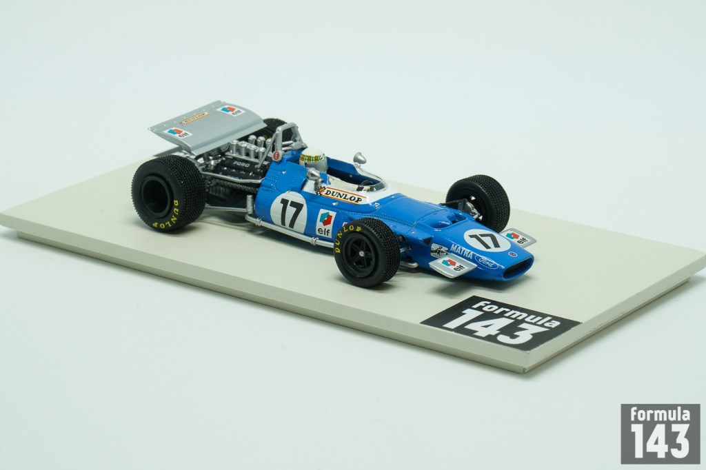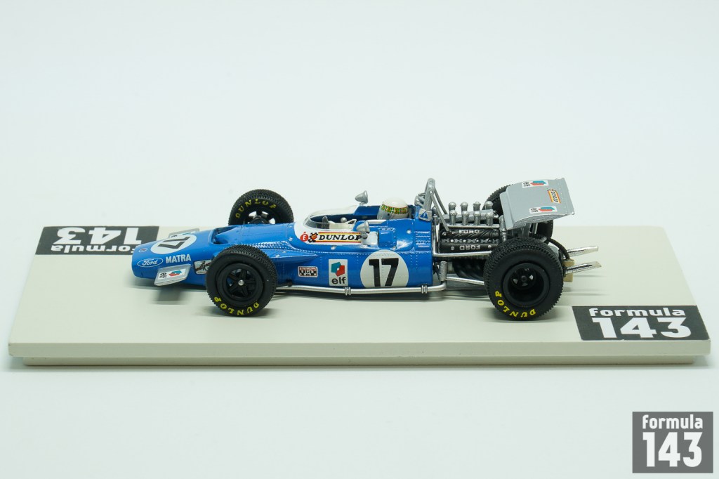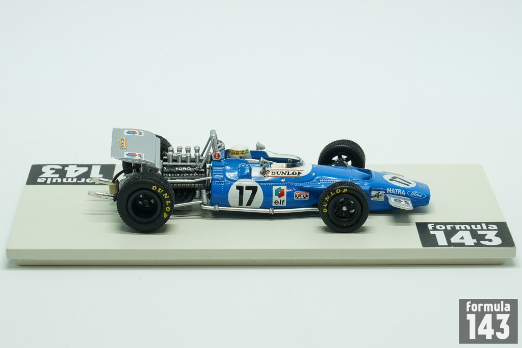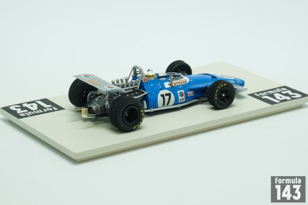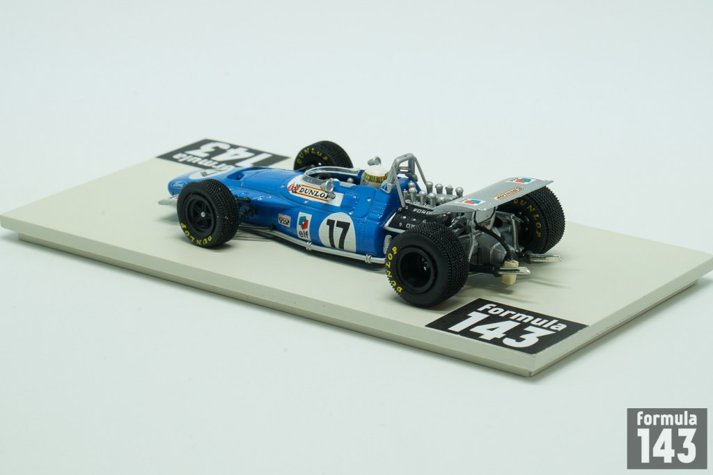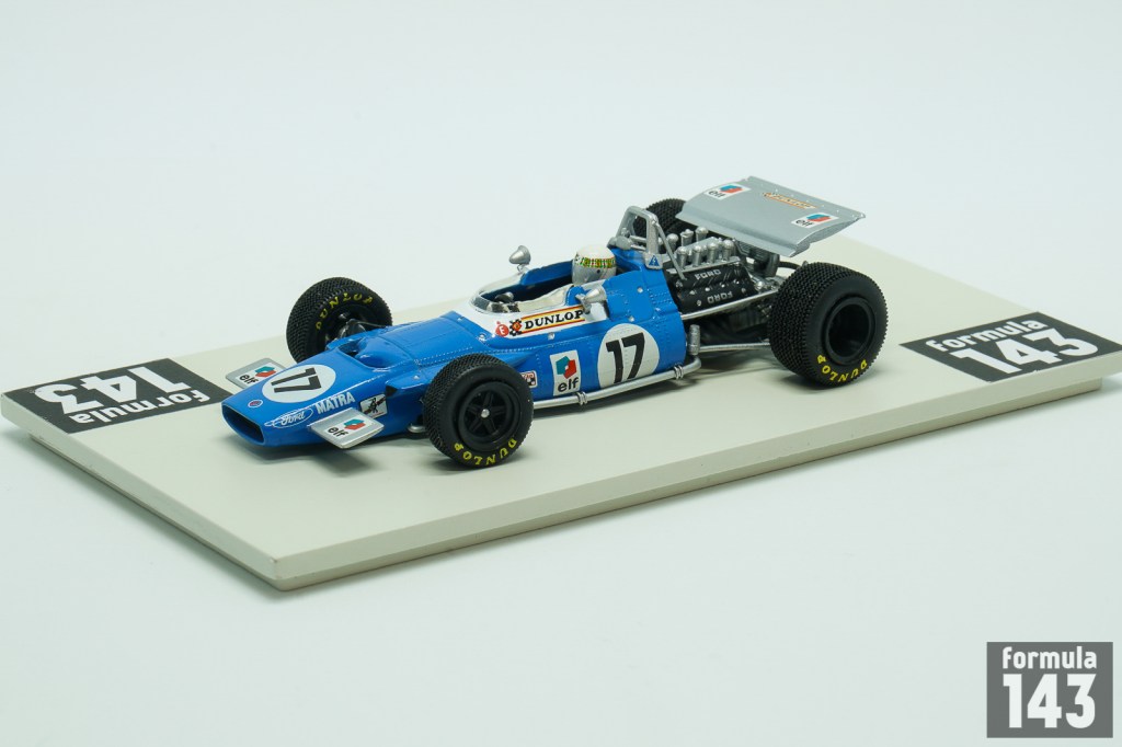 Matra MS80 was the fourth car produced by French team since it entered F1 scene in the previous season. The car was powered by Ford Cosworth DFV 3000 cc engine capable of around 420 bhp. A major change from the MS10 was the location of the fuel cell, which was moved from behind the driver and placed in sidepods by the driver’s hips. Drivers of Matra International in the 1969 season were Jackie Stewart and Jean-Pierre Beltoise who teamed up for the second consecutive year. Stewart drove the car to victories in 6 out of 11 Championship rounds and took his first Driver’s title. Beltoise achieved two podium finishes at Spain and Italy which was enough to secure the Constructors Championships for the Matra team. This scale model from Quartzo is Stewart’s car from Canadian Grand Prix where the season leaser has retired due to collision on lap 32 with Jacky Ickx on Brabham, winner of the race.