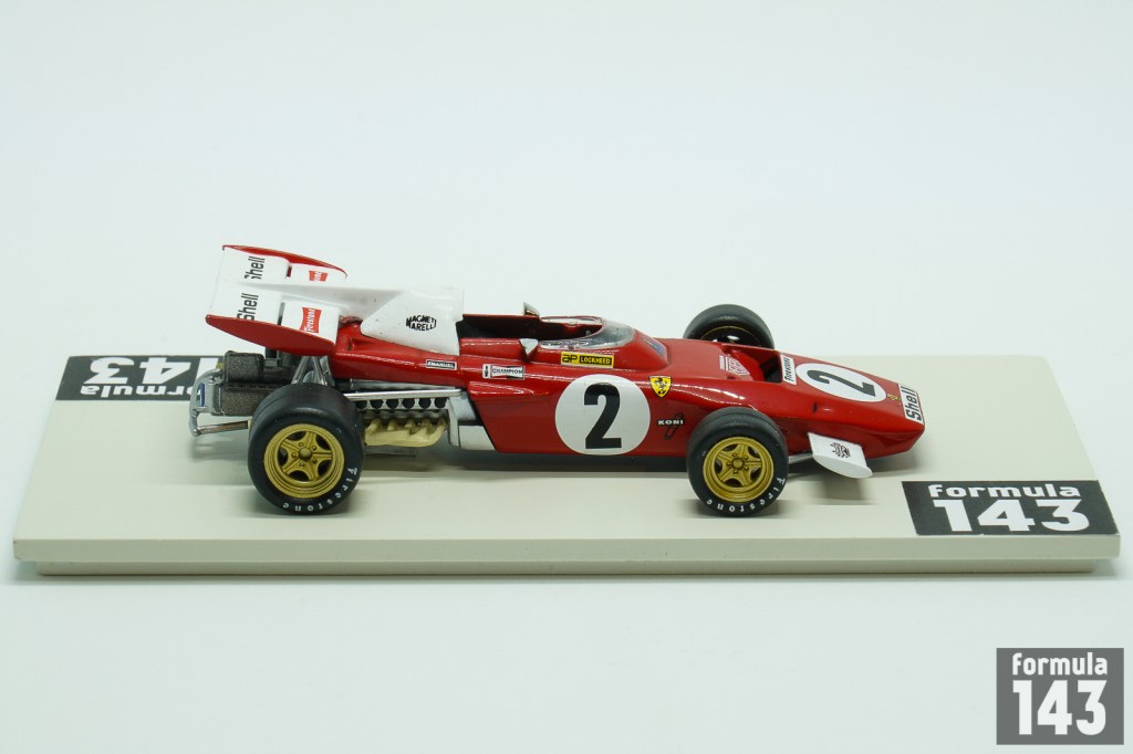 For the 1971 season Ferrari designer Mauro Forghieri refined the 312B, used in 1970, with a distinctly wedge-shaped chassis. New 312B2 also got updated flat-12 engine and innovative rear suspension. This had its coil-springs and damper units mounted inboard and almost horizontally across the back of the car. Scuderia entered three-drivers team for the 1971 season: permanent drivers Clay Regazzoni and Jacky Ickx were teamed up with part-time pilot Mario Andretti, who continued his career in Indy cars in the USAC Championships. Mario won the first round of the FIA Championships in Kyalami driving old 312B car. Then Clay Regazzoni gave the 312B a superb debut by winning the Race of Champions in March. But B2 suffered with handling problems: the combination of the rear suspension and the new Firestone tyres gave severe vibrations when driven close to the limit. The car debuted in the Championship only at the third round in Monaco, followed by the Dutch Grand Prix success for Ickx. But throughout the rest of the season 312B2 continue to fight with the disappointing handling problems and even was replaced back to 312B for the couple of the last rounds. Victory of Jacky Ickx in Zandvoort was the only win of 312B2 in the 1971 Championship. The scale model of the Dutch GP car by IXO is from Fabbri / RBA / Del Prado Ferrari Collection.