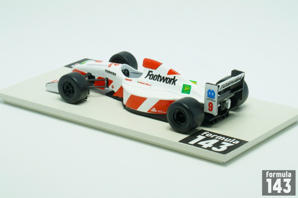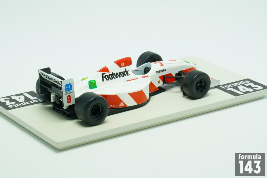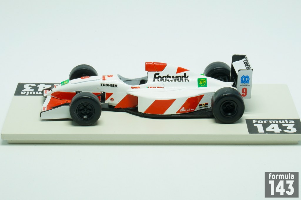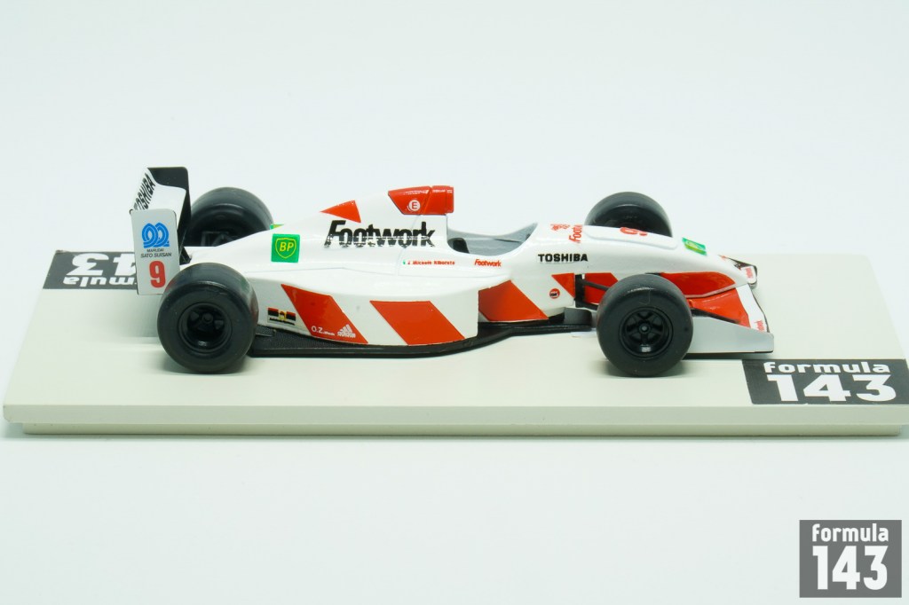 The FA13 used by Footwork Arrows team in 1992 Formula 1 season. Car was designed by Alan Jenkins and was the typical mid-of-the-grid car of the season featured conventional carbon fibre monocoque chassis, 6-speed manual gearbox, and powered by Mugen-Honda V10 engine. Footwork Arrows drivers of the season were experienced Italian Michele Alboreto and Japanese Aguri Suzuki. Alboreto scored several finishes in the points, including season’s best 5th positions at Spain and San Marino, and was classified 10th in the Driver’s Championship. Suzuki’s best result was 7th position in Spain.