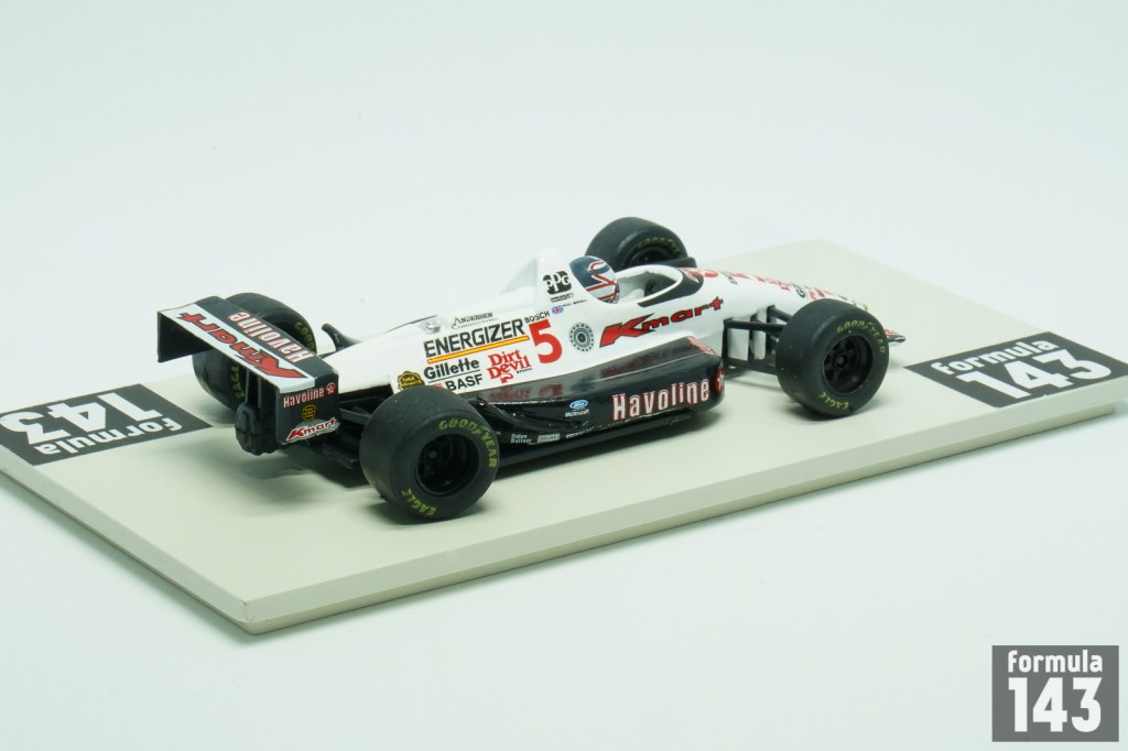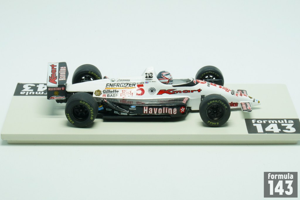 After winning the 1992 Formula 1 World Championship Nigel Mansell went to the US attention to prove his abilities in Indy Car racing accompanied by huge press and public. And the excitement of media and fans was justified – English F1 reigning champion won his very first IndyCar race at Surfers Paradise in Australia. Mansell became the first person to win his first IndyCar race since Graham Hill had won the 1966 Indianapolis 500. 1993 PPG IndyCar World Series sanctioned by CART was 16-round championship which combined races on oval speedways, road courses and street tracks. Mansell driving his Lola T93/00 for the Newman-Haas team then won 4 other rounds (surprisingly, all at ovals) and became the IndyCar champion, and the only driver in history to hold both the Formula One and CART championships at the same time, because when he won the 1993 CART championship he was still the reigning F1 world champion, with the 1993 F1 championship not yet having been decided. Mansell’s achievement was also so illustrative considering the rivalry between F1 and CART, because he replaced at Newman-Haas Mario Andretti’s son Michael, 1991 CART champion, who moved to F1 and McLaren to get complete fiasco in FIA F1 championship 1993. As to Mansell’s Championship winning car, it was Lola Indycar 1993 model, T93/00 powered by Ford Cosworth XB engine. The scale model is from Onyx contemporary IndyCar model series.