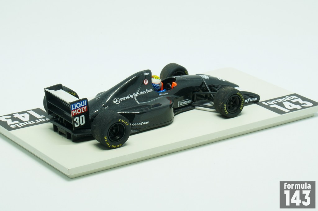 Sauber Formula One team made his debut in the F1 World Championship with this car in 1993. The car was designed by Harvey Postlethwaite and Leo Ress. The C12 was powered by a Sauber-branded 3.5-litre V10 built by Ilmor in partnership with Mercedes. In recognition of the contribution of the German company Sauber cars had “Concept by Mercedes-Benz” stickers on the engine cowling. Finn J.J. Lehto (Jyrki Järvilehto) and Austrian Karl Wendlinger were the team drivers in its debut season. Lehto launched the team with the promising 5th place at the maiden Grand Prix in South Africa. Later the season he scored 4th place in San Marino and was 13th in the final driver’s standings. Five his points plus 7 by Wendlinger put Sauber to 7th position in the Constructor’s Championship.