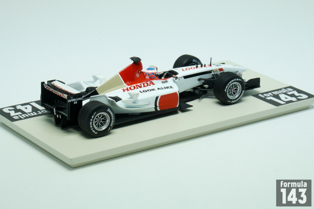 British American Racing team has built BAR 005 for 2003 Formula One season. The car designed by Geoff Wills was usual F1 vehicle featured carbon fibre monocoque, clean aerodynamics and powered by Honda 3-litres V10 engine. The 005 was driven by Jacques Villeneuve, who was in his 5th and last season with BAR, and Jenson Button, who moved to BAR from Renault. Button was regular point scorer with the best 4th place finishes in Austria and Japan and was classified 9th in the 2003 Driver’s Championship. Villeneuve has added only 6 points for two 6th places, and BAR finished 5th in the Constructors’ Championship with 26 points.