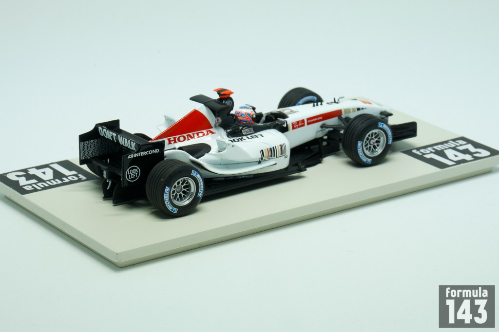 BAR 007 was an evolution of the 006 model from the 2004 season, which marked the highest success of the British American Racing Team in F1 leading to their second place in the 2004 championship behind Ferrari. The general line of modifications led by chief designer Geoff Willis was to make car smaller and lighter. Eventually this was led to some controversy with the FIA when both BAR-Hondas were disqualified from the San Marino Grand Prix after it was found the cars could run below the minimum weight, stated by the FIA regulations of 605 kg. A brand new Honda RA005E V10 unit was also smaller, lighter and had a better centre of gravity than the 2004 engine. The team has saved the successful drivers lineup from the previous year – Jenson Button and Takuma Sato were teamed up for the 3rd consecutive season. The season for the Lucky Strike BAR Honda Team turned out to be ambiguous. First part of the season was the continuous series of failures – retirements in first races, disqualification from San Marino GP with the following ban for two next rounds. But then Jenson Button continued to race very reliably and finished in points all 10 last rounds of the Championship, including two podium finishes at 3rd place in Germany and Belgium. In the final Championship standings the Brit was 9th with 37 points. As to Sato, Japanese was able to score only one point. In the Constructor’s standings BAR-Honda was classified on the 6th position. The 007 was the last car under BAR banner. At the end of the 2005 season, Honda, the engine supplier since 2000, secured 100% team ownership, purchasing it from British American Tobacco, the long term sponsor of the team. The cars would remain with the BAT sponsorship throughout 2006.