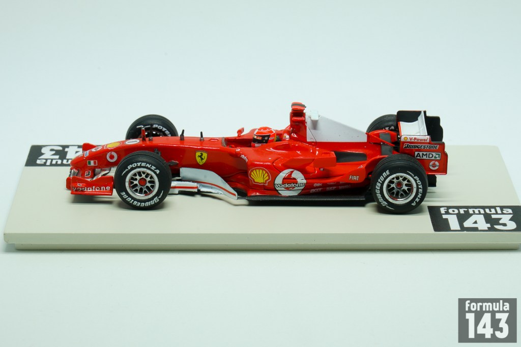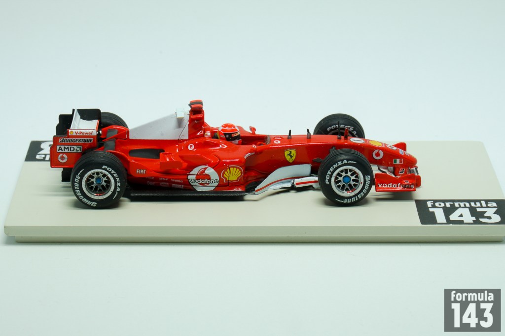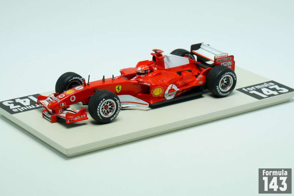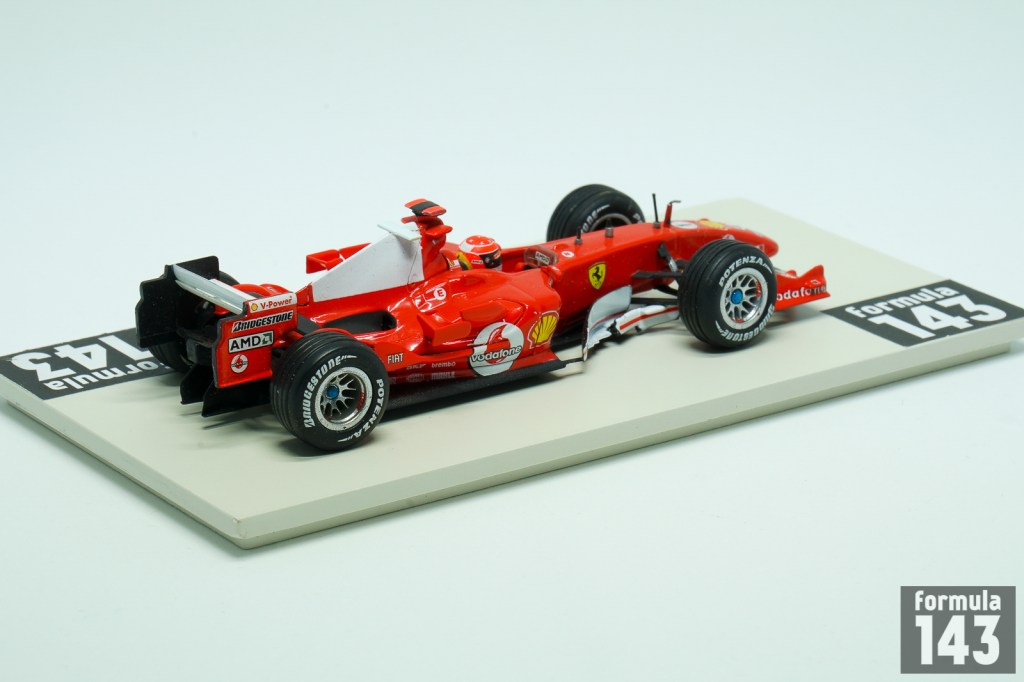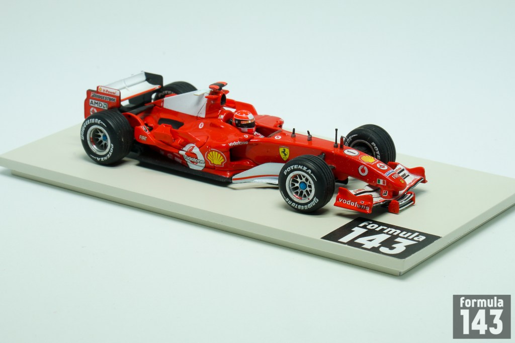 Scuderia Ferrrai’s car for 2005 Formula One season, the F2005, was the less competitive vehicle from Maranello since the 1995. After five straight Driver’s Championships and six straight Constructors titles the 2005 season was the significant step down for Ferrari. The car itself, which was Aldo Costa’s and Rory Byrne’s creation based on winning F2004, was not so bad. The major problem for Scuderia was the Bridgestone tyres. They were uncompetitive comparing to Michelin which was used by all other major rivals. The only win of Michael Schumacher and Ferrari in the season was at United States Grand Prix where Michelin claiming that their tyres were unsafe. So only six cars from three Bridgestone supplied teams – Ferrari, Jordan and Minardi – raced in the US GP. In other full-grid races of the season Schumacher really fought for victory only at Imola and Hungaroring. Thus the season’s results (3rd place both for Schumacher with 62 points in the Drivers’ standings and for the Scuderia in the Constructors’ standings) were the worst Ferrari performance since the 1995.