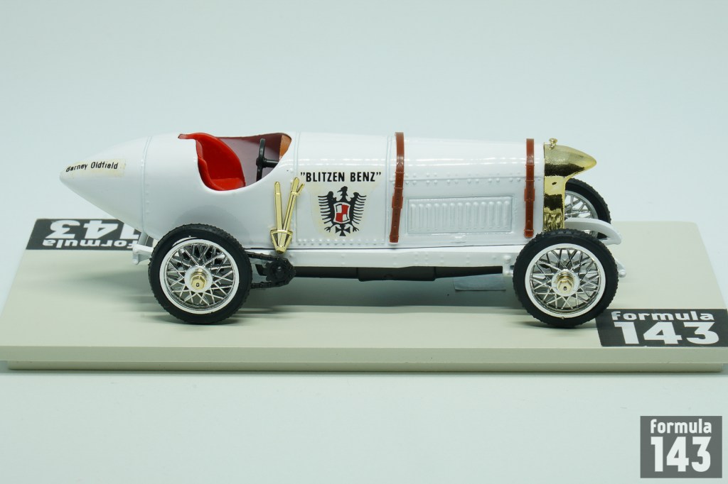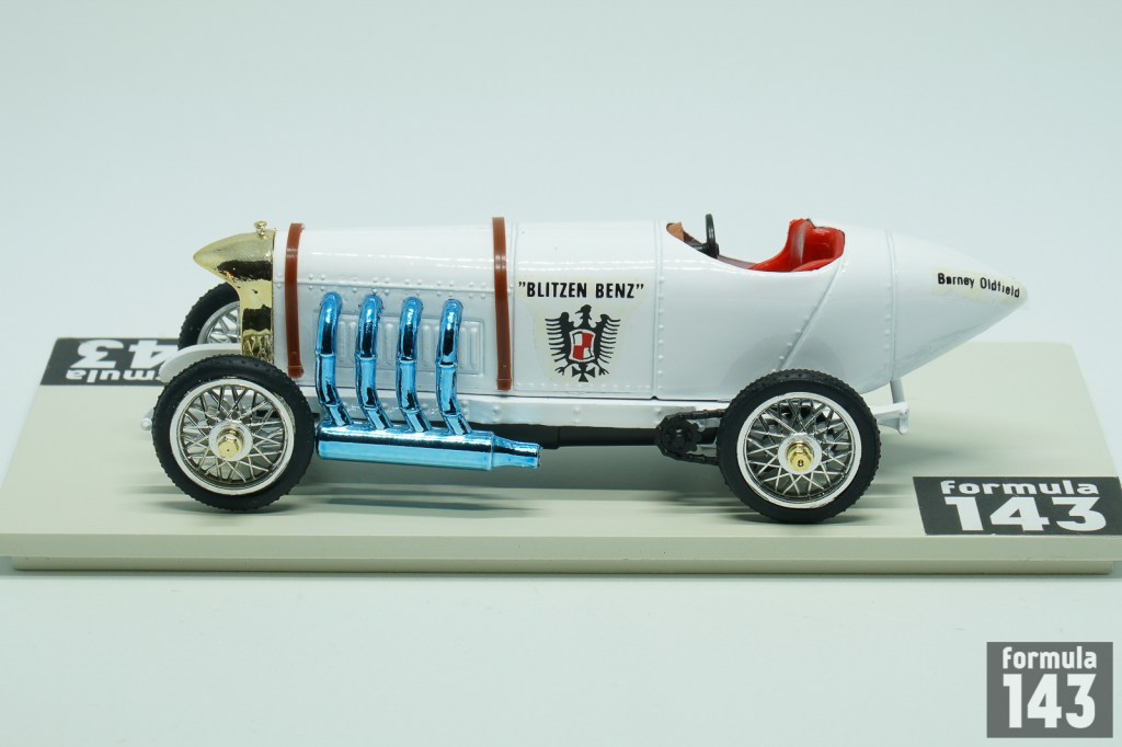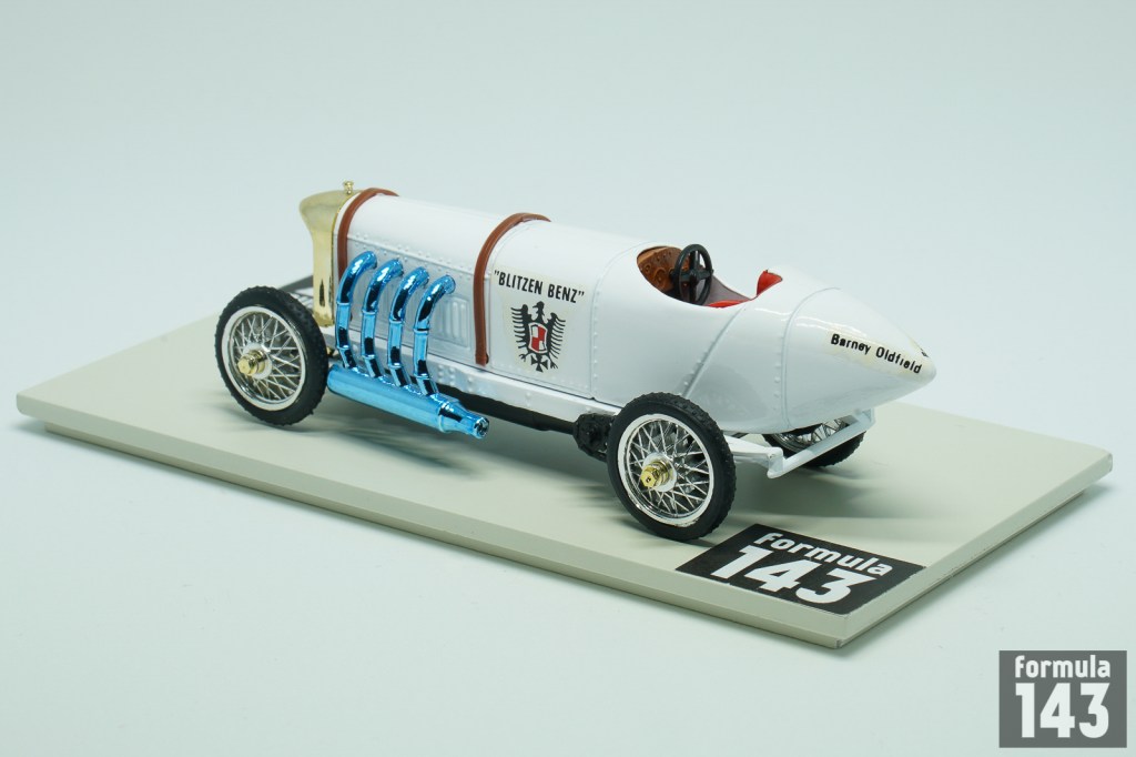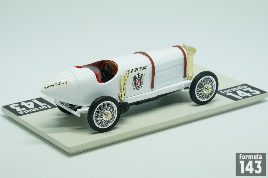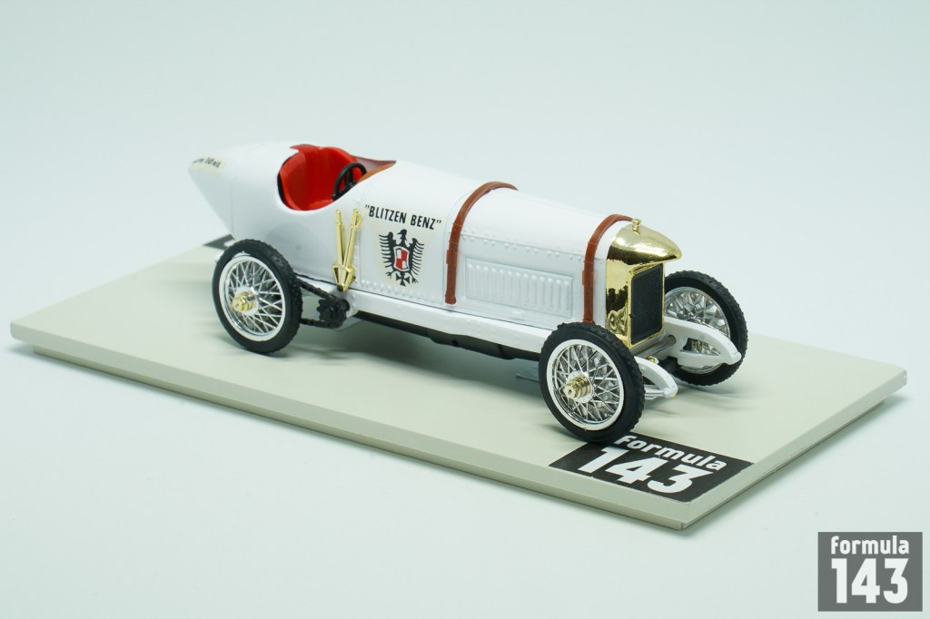 Benz racing history goes back to the very beginning of the motorsport – it took part in the first organized motorsport event – Paris – Rouen trial in 1894. In 1890s – 1910s Benz was the regular entrant of many major automobile races. At the beginning of 1909, Julius Ganss, working for Benz, was given permission to design a car which could reach a speed of over 200 km/h. This car was based on the 150 hp Benz Grand-Prix car. Its gigantic four-cylinder engine had an output of 184 hp at 1500/min, which could be increased to 200 hp at 1600/min by precision tuning. The engine weight was 407 kg. At first time the car was still fitted with the body of the Benz Grand-Prix car and entered competitions under that name. Later designers in Mannheim had set to work on a new body for the record car which was to give the vehicle its typical look and a car became known as “Blitzen Benz” (“Lightning Benz”). On 16 March 1910 Barney Oldfield drove the Blitzen Benz in the record run on the sands of Daytona Beach, Florida. He covered a measured mile with a flying start in 27.33 seconds (211.97 km/h). The speed achieved over a measured kilometre, also with a flying start, was only insignificantly lower at 211.09 km/h. The record was not officially acknowledged because the highest supervisory authority for motor sports, the Association Internationale des Automobile Clubs Reconnus (A.I.A.C.R.), had stipulated that in world record trials the distance had to be covered in both directions and that the mean value from both runs made up the final value.