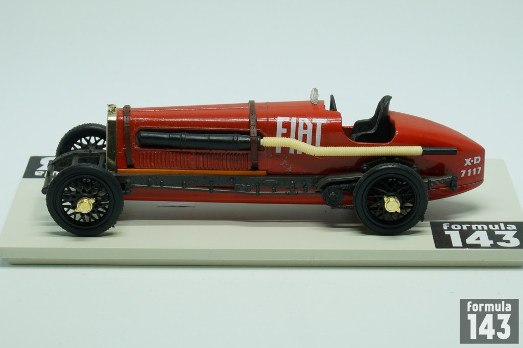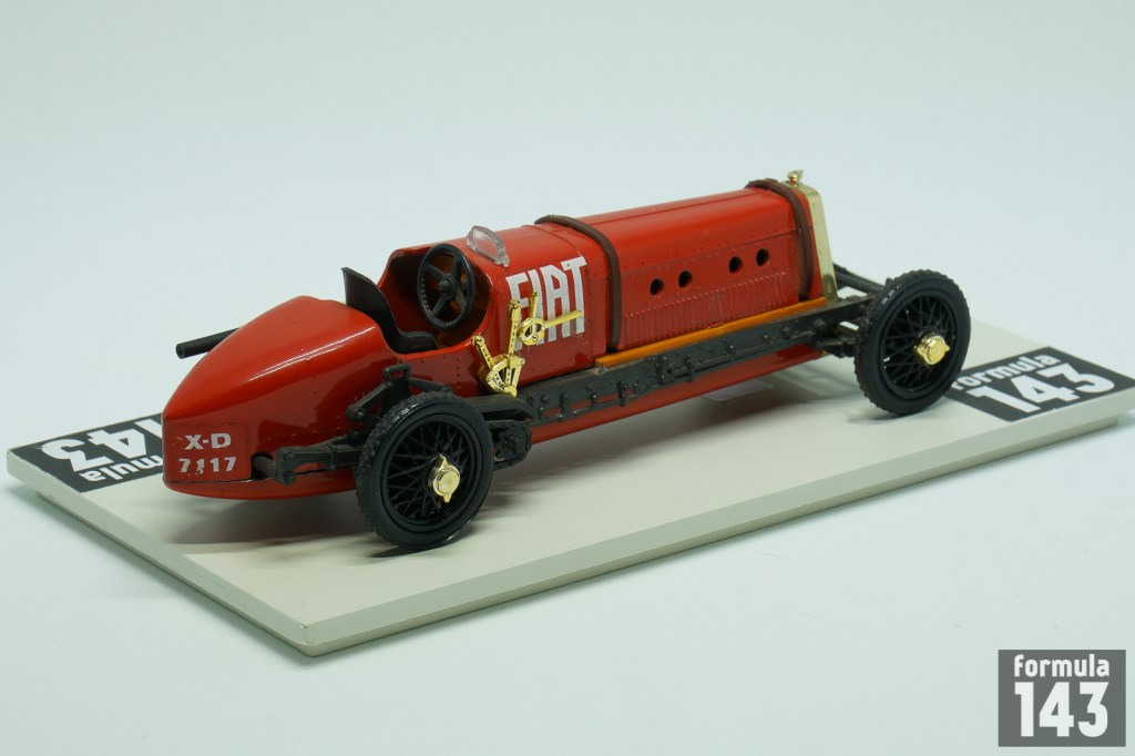 The Fiat Mephistopheles (known in Italian as Mefistofele) is a record racing car created by Sir Ernest Eldridge in 1923 by combining a FIAT racing car chassis and FIAT aeroplane engine. Eldridge bought the 1908 Fiat SB4 and replaced its engine with a 6-cylinder, 21.7 litre (21706 cc) Fiat A.12 aeroplane engine producing 316 bhp. On July 12th of 1924 Eldridge on his modified racer, now called the Mefistofele due to its ominous smoke and explosions produced by the engine, set the world land speed record in Arpajon, France after achieving a top speed of 234.980 km/h (146 mph). The record would remain for 32 days. It is believed that this was the last land speed record set on public roads. This scale model by Brumm is the regular production of the Italian manufacturer. The model also exists in another version in black color which was the subscriber’s gift for 100 Anni di Italia in Automobile magazine collection published by De Agostini.