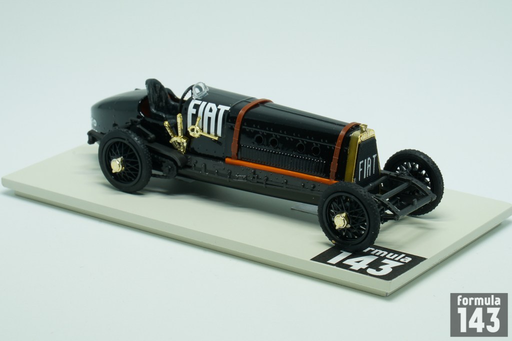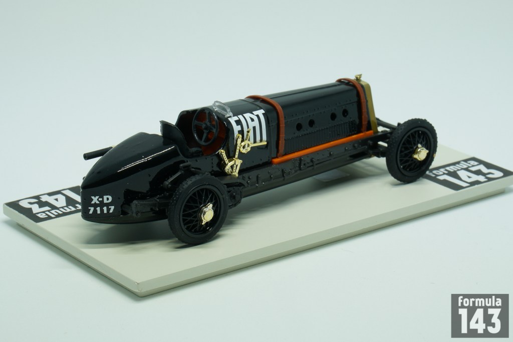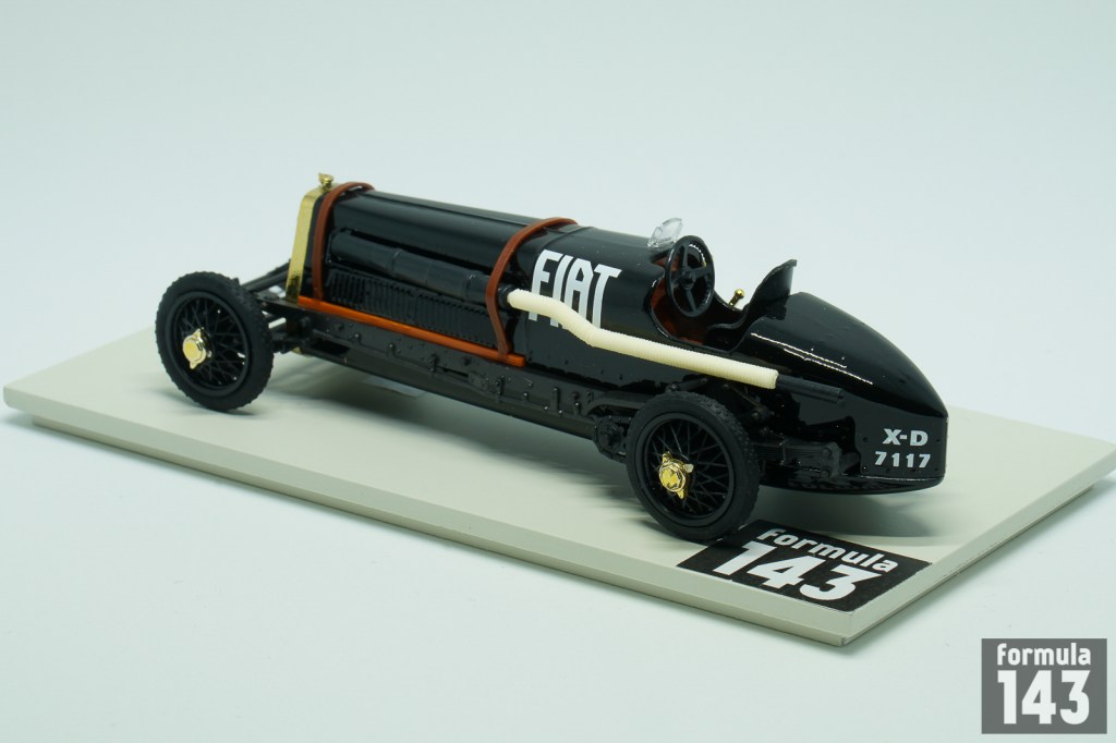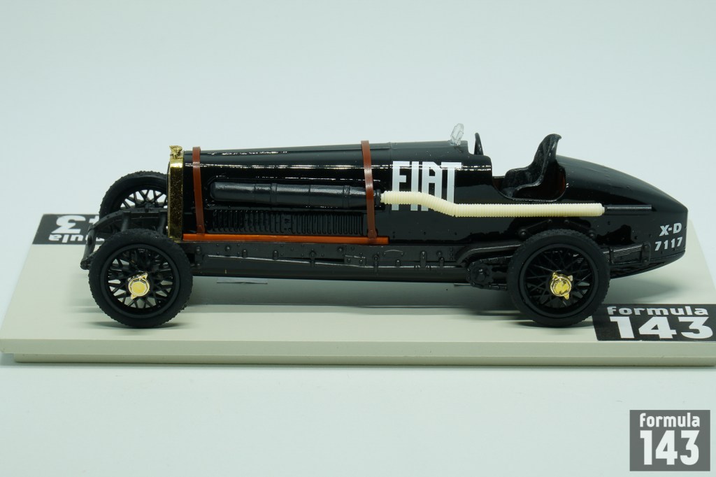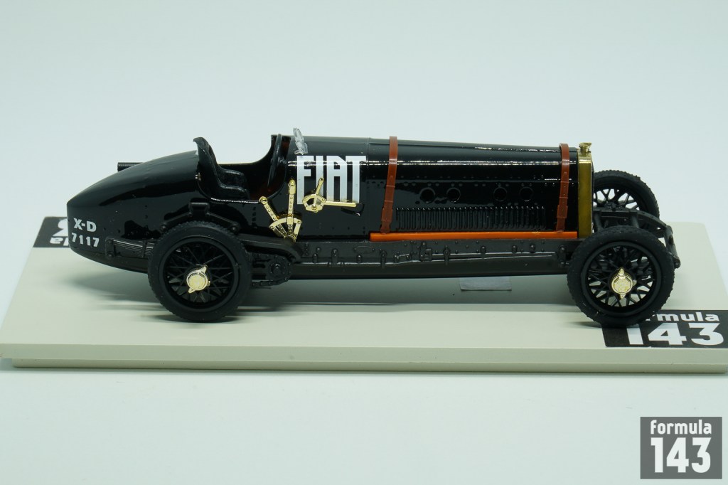 The Fiat Mephistopheles (known in Italian as Mefistofele) is a record racing car created by Sir Ernest Eldridge in 1923 by combining a Fiat racing car chassis and FIAT aeroplane engine. Eldridge bought the 1908 Fiat SB4 and replaced its orogonal engine with a 6-cylinder, 21.7 litre (21706 cc) Fiat A.12 aeroplane engine producing 316 bhp. On July 12th of 1924 Eldridge on his modified racer, now called the Mefistofele due to its ominous smoke and explosions produced by the engine, set the world land speed record in Arpajon, France after achieving a top speed of 234.980 km/h (146 mph). The record would remain for 32 days. It is believed that this was the last land speed record set on public roads. This scale model by Brumm is the subscriber’s gift for 100 Anni di Italia in Automobile magazine collection published by De Agostini. The regular model by Brumm is in red color and is dated as 1923.