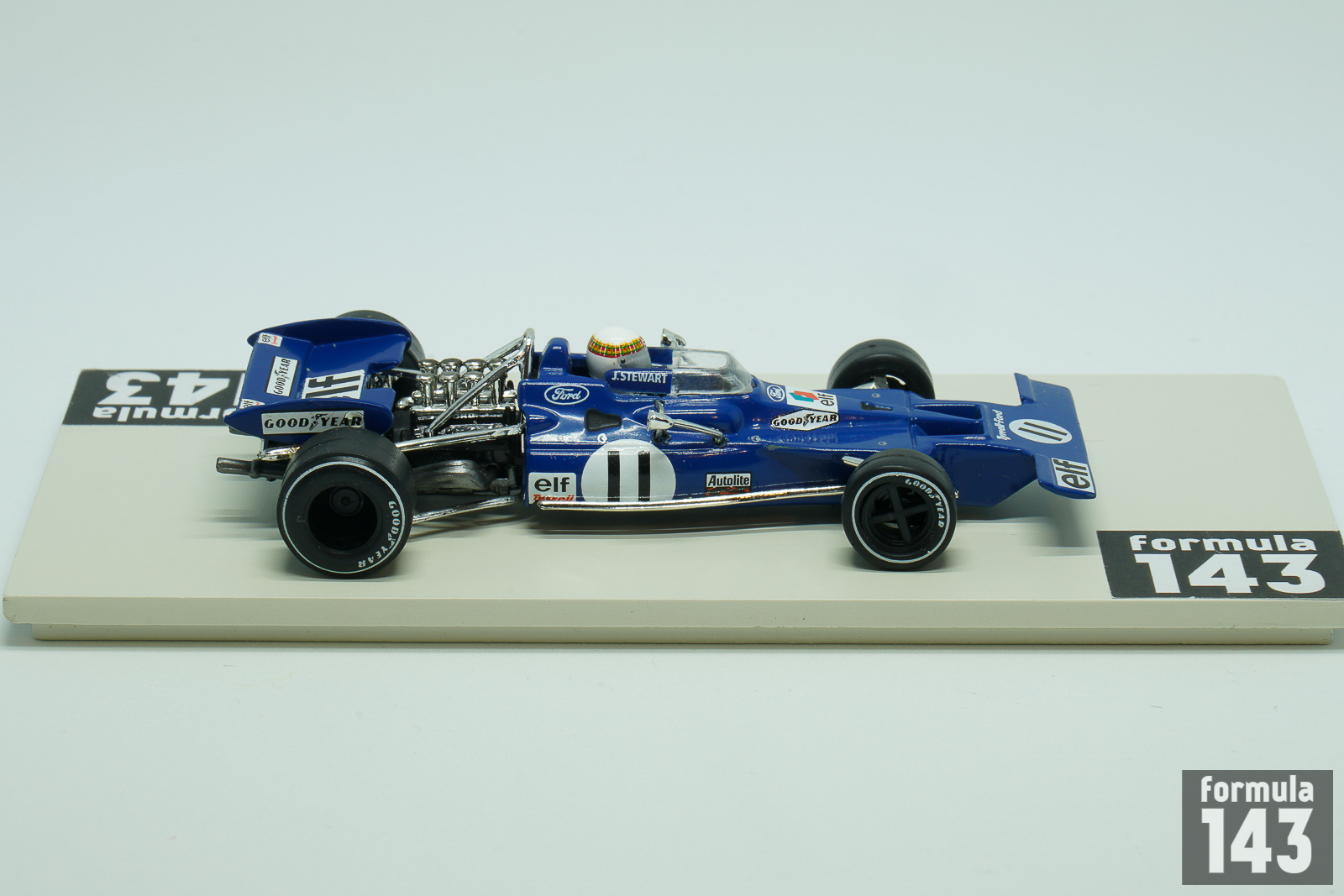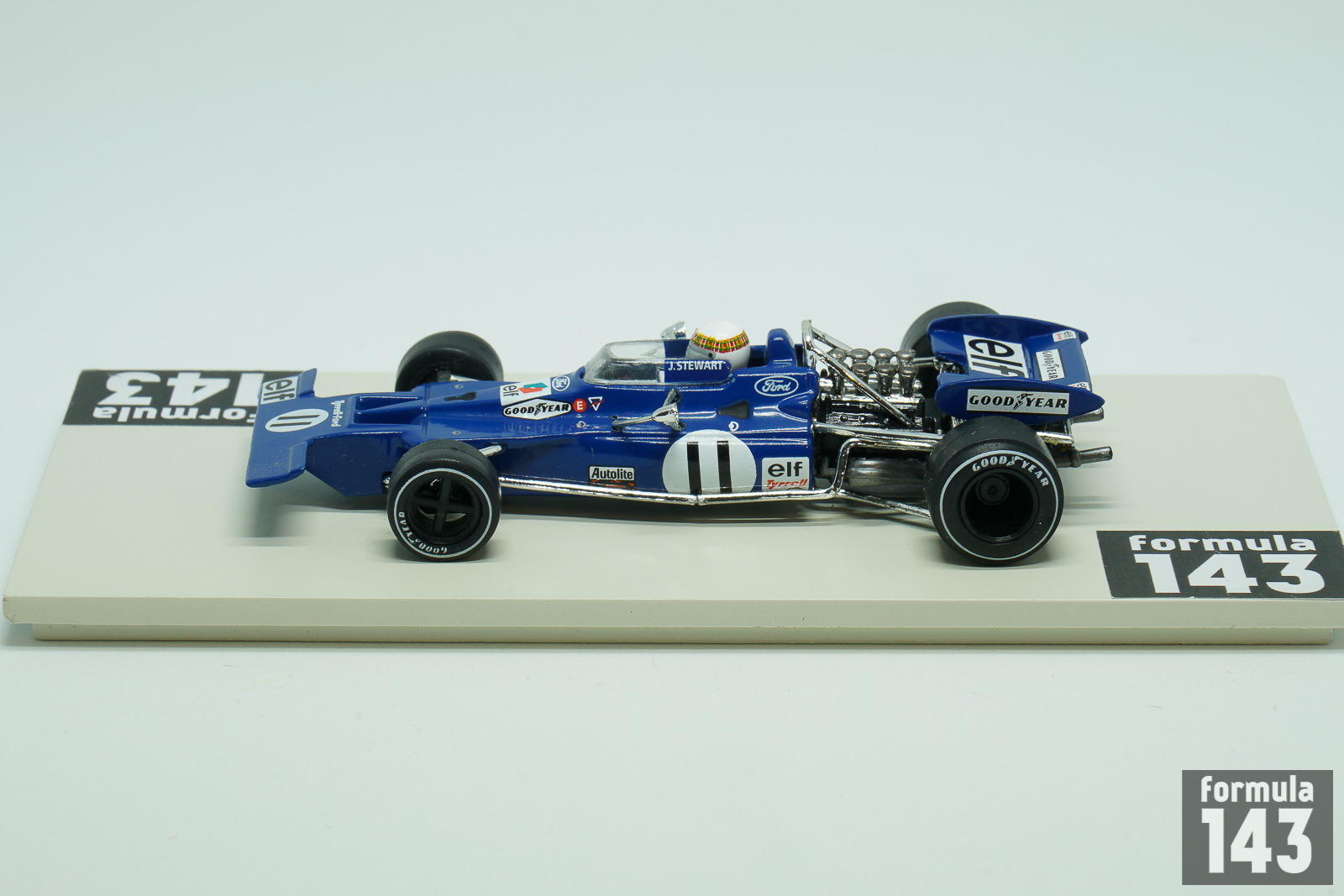 This Quartz model (Ref 4036) is wrong, it does not represent the Tyrrell-Ford 003 but the Tyrrell-Ford 001 nº 11T used by Jackie Stewart in training for the Monaco GP. The roll bar structure, over the engine, are typical of 001, they have nothing to do with those of 003, as well as the rear wing. The same observation applies to the Tyrrell 003 from IXO – RBA Collectibles and Tyrrell 002 from Quartz (Ref 4037).