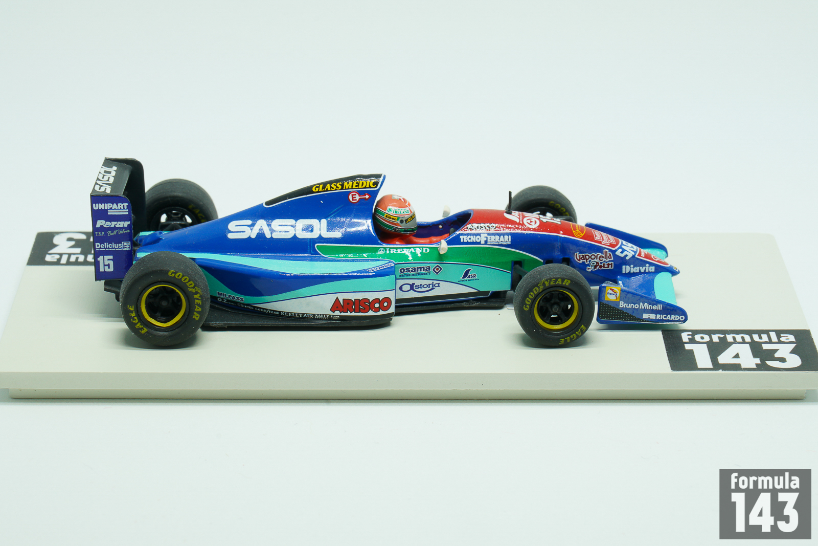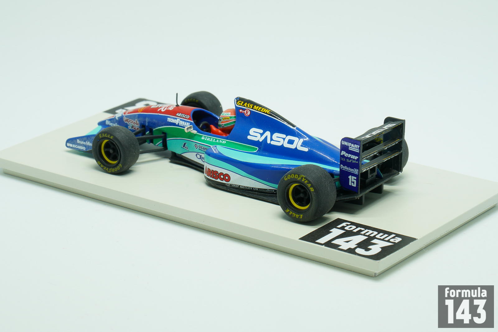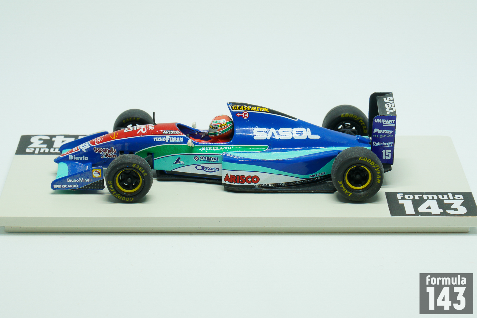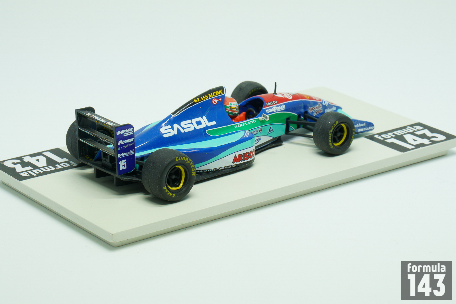 Eddie Irvine, Northern Irish “Playboy of the peloton” drove this car in 1994 Formula One Championship. The car was designed by Gary Anderson and was powered by Hart V10 engine. Eddie was able to achieve 3 finishes in the points which put him on a 16th position in the Drivers’ standings of the season. Performance of his teammate Rubens Barrichello was much more impressive: Rubinho best race was at Pacific Gran Prix were he was third. And in the Championship the Brazilian finished as high as 6th. See also the model of 194 by Barichello from the Brazilian Legends Collection.