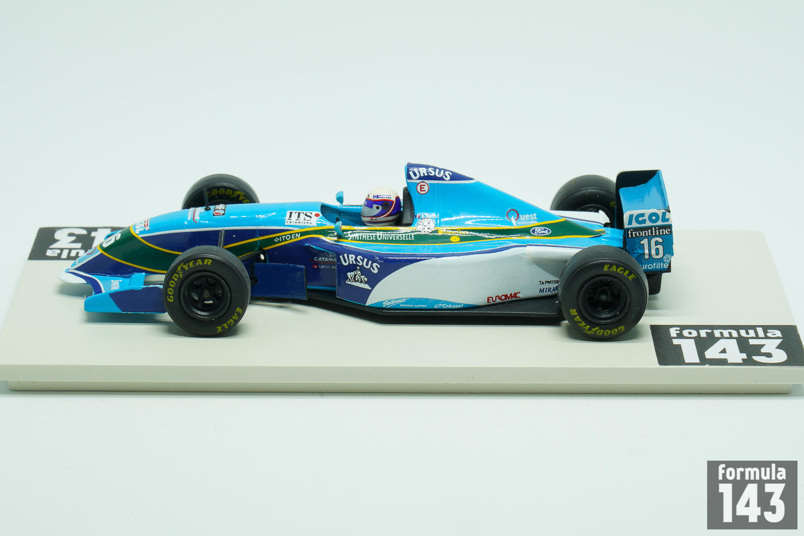 In 1995 Pacific Grand Prix had merged with Team Lotus and was renamed as Pacific Team Lotus. New car, PR02 was designed by Frank Coppuck, and obsolete Ilmor engines had been replaced by Ford ED V8. The drivers were Andrea Montermini and team shareholder Bertrand Gachot. In the mid-season the latter vacated his seat to paydrivers Giovanni Lavaggi and Jean-Denis Delertaz, but when their money was over, Gachot returned in the cockpit of PR02 and scored the 8th place in Australia, repeating team’s best result achieved previously by Montermini in German Grand Prix. At the end of the 1995 season, the team owner Keith Wiggins withdrew from Formula One and decided went back to Formula 3000.