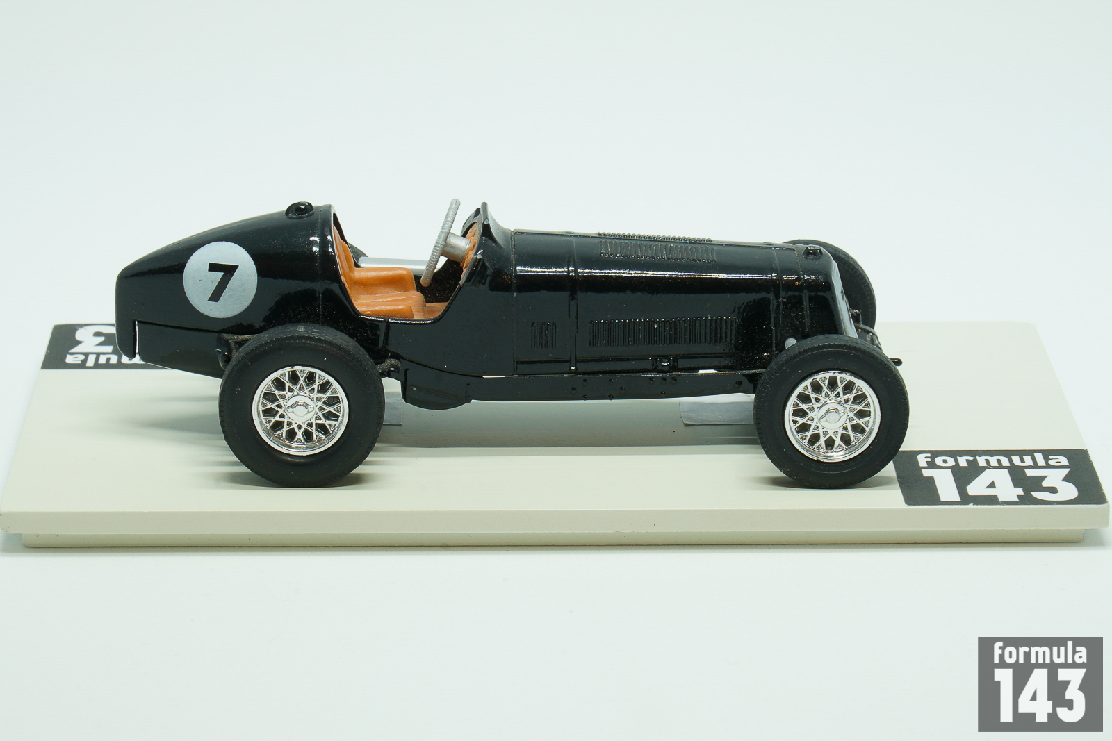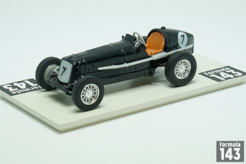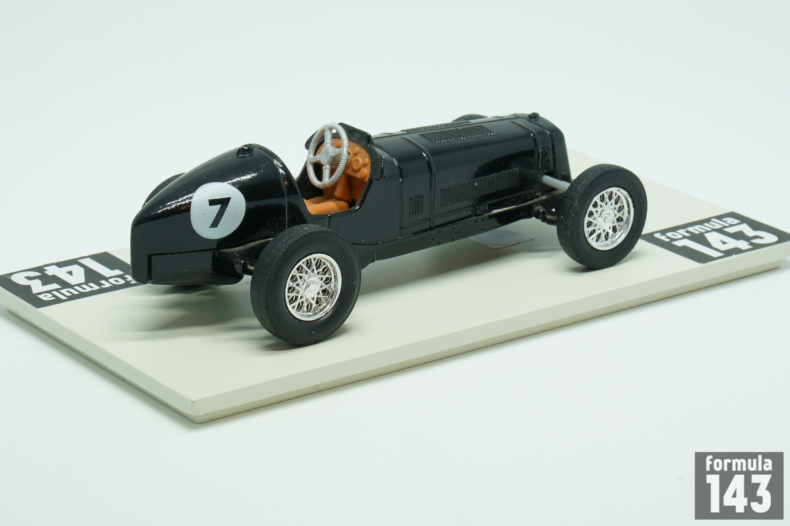 English Racing Automobiles, or ERA, was founded by Humphrey Cook, Raymond Mays, and Peter Berthon in November 1933 and started to produce racing cars in 1,500 cc voiturette class in 1934. In 1934 4 cars designated as ERA A were built designed by peter Berthon and Reid Railton. Cars were powered by 3 types of 6-cylinder engines (1.0, 1.5 and 1,9 L) with Roots supercharger. 1.5 L engine corresponding to voiturette regulations was capable of 175 bhp at 6500 rpm. In 1935 13 more cars were built designated as ERA B. The A and B were absolutely identical and differed only in year of production. ERA C and D series were built in 1937 and 1938 respectively. ERA cars quickly became very popular in Britain, and constituted the significant part of the starting grin in many local and international voiturette and Grand Prix racing until 1950. The black-painted car, R1B, the first B chassis built in 1935, was raced in 1935 – 1937. In 1935 season R1B was used by Richard Seaman, who drove this privately entered vehicle to victories in Coppa Acerbo, Prix de Berne and Masarykuv Okruh. Later in 1936-1937 this ERA was raced by other British drivers, but not of a caliber of Seaman. The Matchbox 1:35 scale model of the 1980s is from “Models of Yesteryear” series. The same model is also available in Siamese pale blue and yellow colors modeling Prince Bira “Romulus” car.