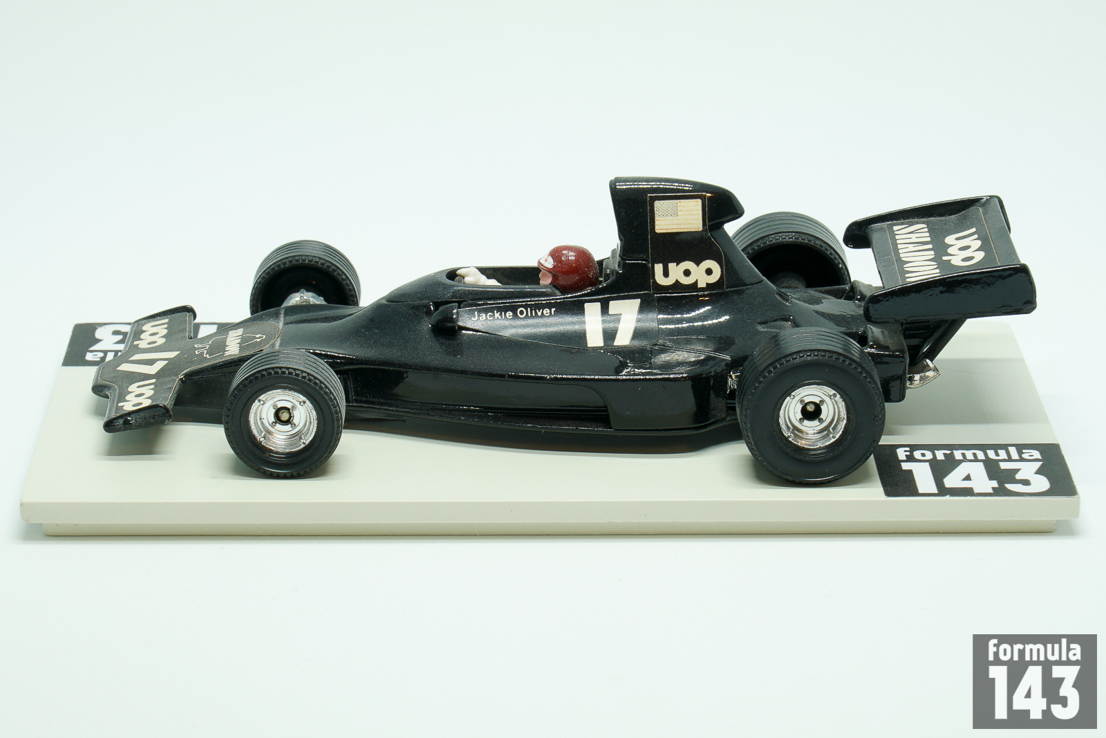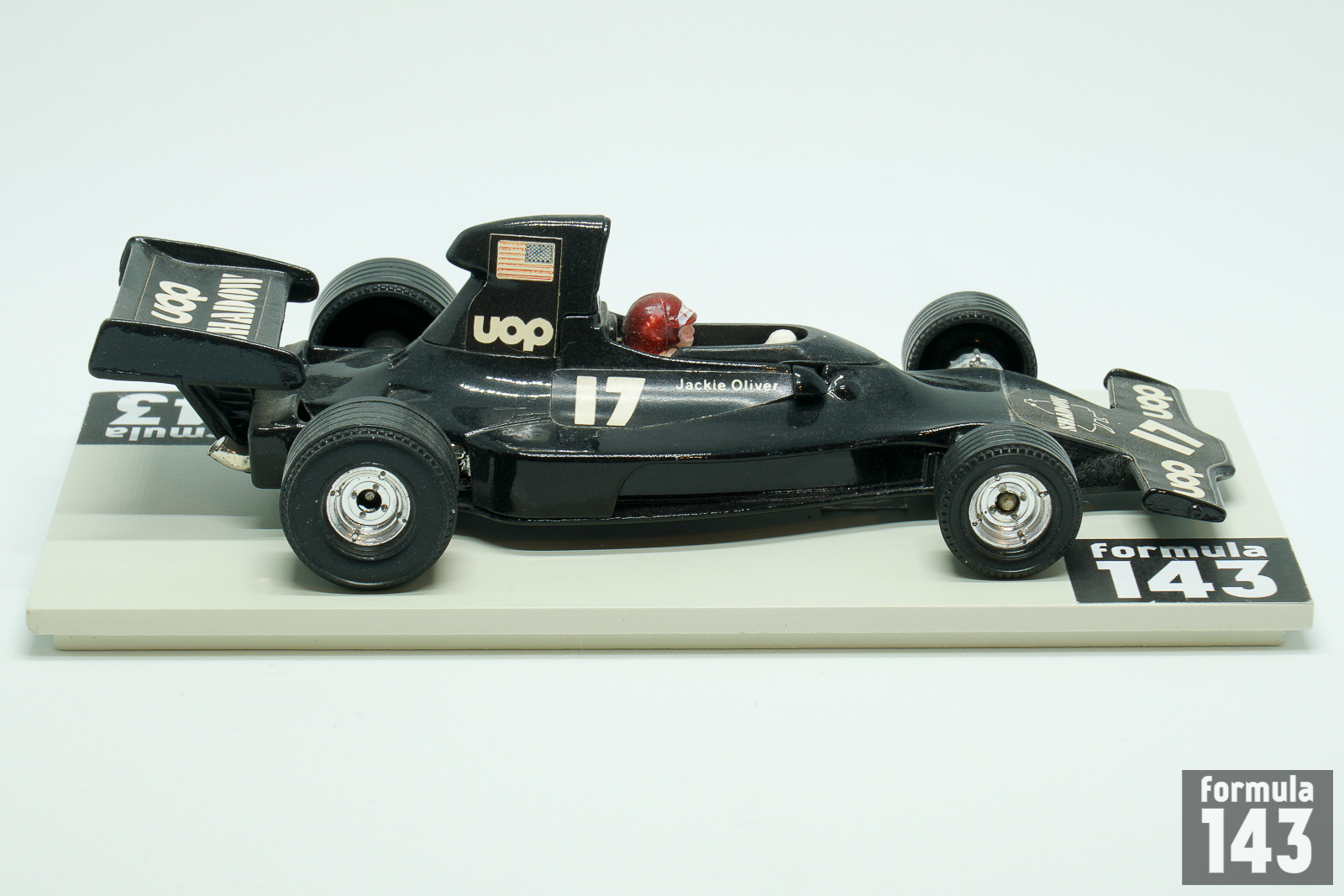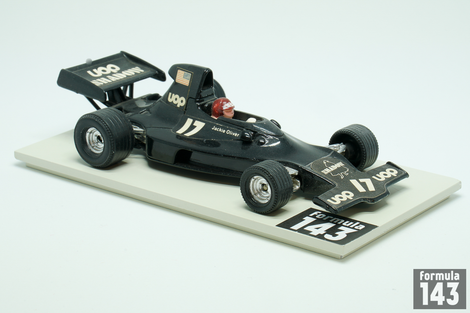 The first Formula 1 car for newly established Shadow team was designed by Tony Southgate. DN1 used an aluminum monocoque and was powered by a 2993 cc Ford Cosworth DFV engine. The new team missed first two races of the 1973 season, but its debut in South African Grand Prix was marked by excellent 6th place by George Follmer. American, who raced previously in sportcar racing, took 3rd position in the following race in Spain. His teammate experienced British Jackie Oliver was nominated as team leader. His best result of the year was 3rd place at the penultimate round in Canada. The messy Canadian Grand Prix was confused by a rain shower and first appearance of a pace car in Formula 1 race. Many believe that Oliver actually won the race but lap-charts were thrown into confusion due to multiple pit-stops and after long debates Peter Revson was declared as the winner.