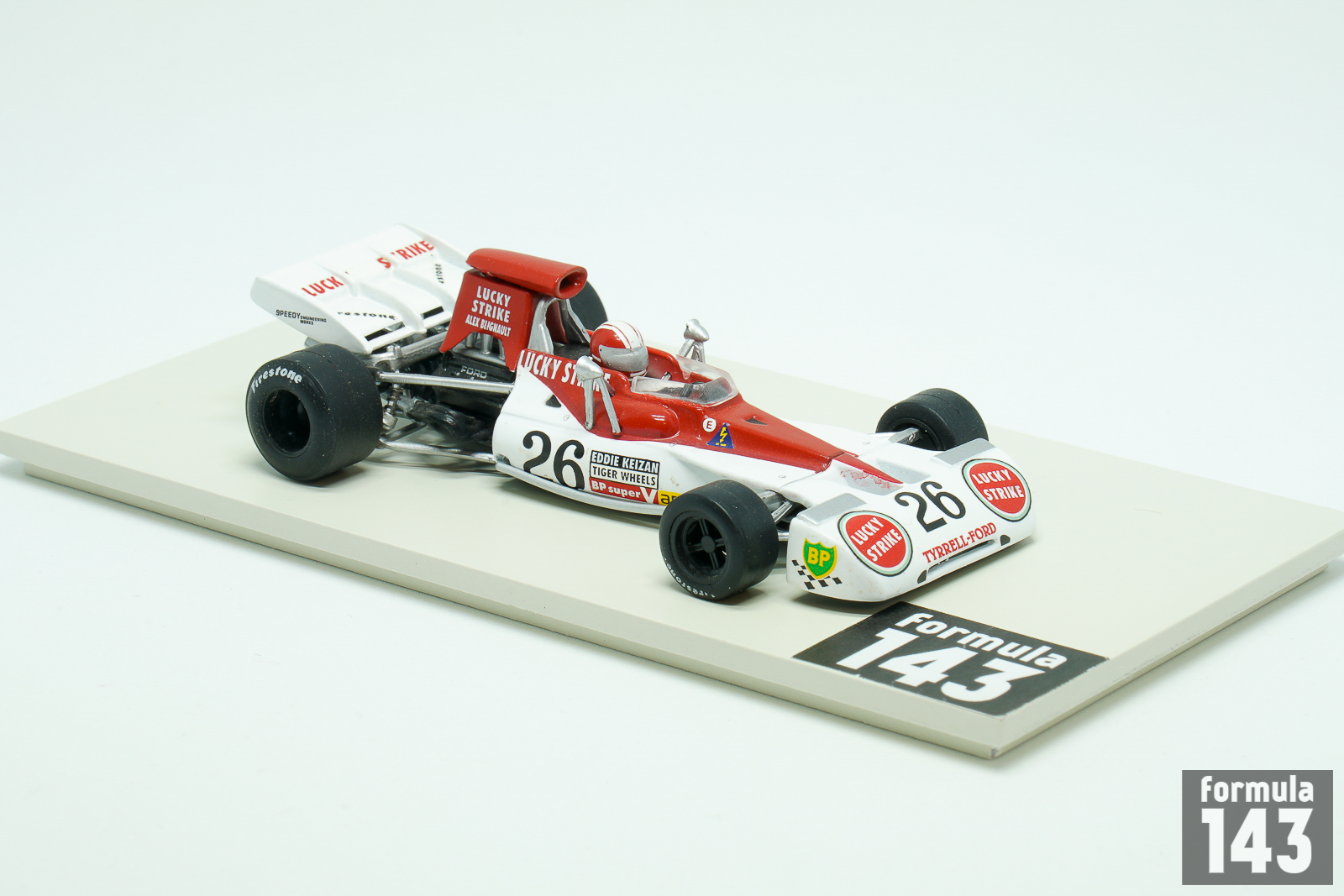 Tyrrell 004 previously driven by Jackie Stewart was bought by South African former racing driver Alex Blignault who entered cars under “Alex Blignaut Racing Team” in the South African Formula 1 Championship. In 1973 Alex entered his Tyrrell 004 in South African GP, 3rd round of the World Championship. The driver was Eddie Keizan who drove for Blignault’s team in many local events. Keizan was qualified 22nd out of 25 entries and finished 12 laps behind the winner, Jackie Stewart.