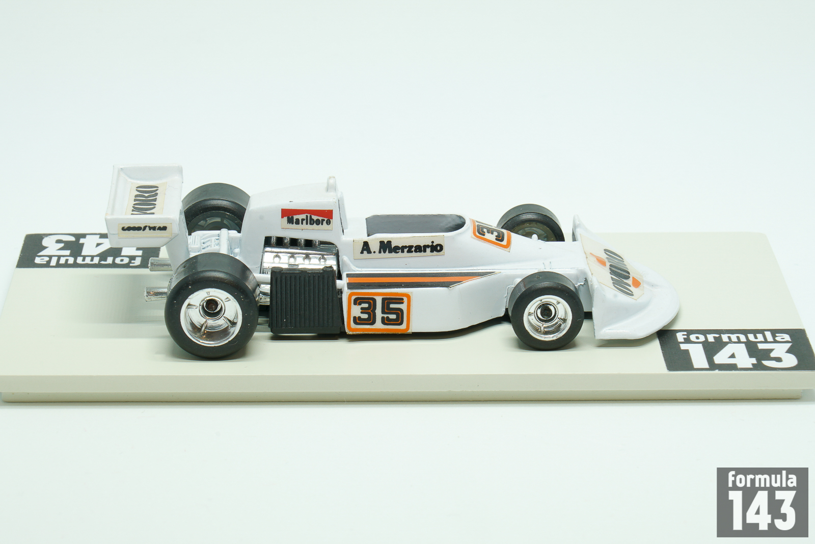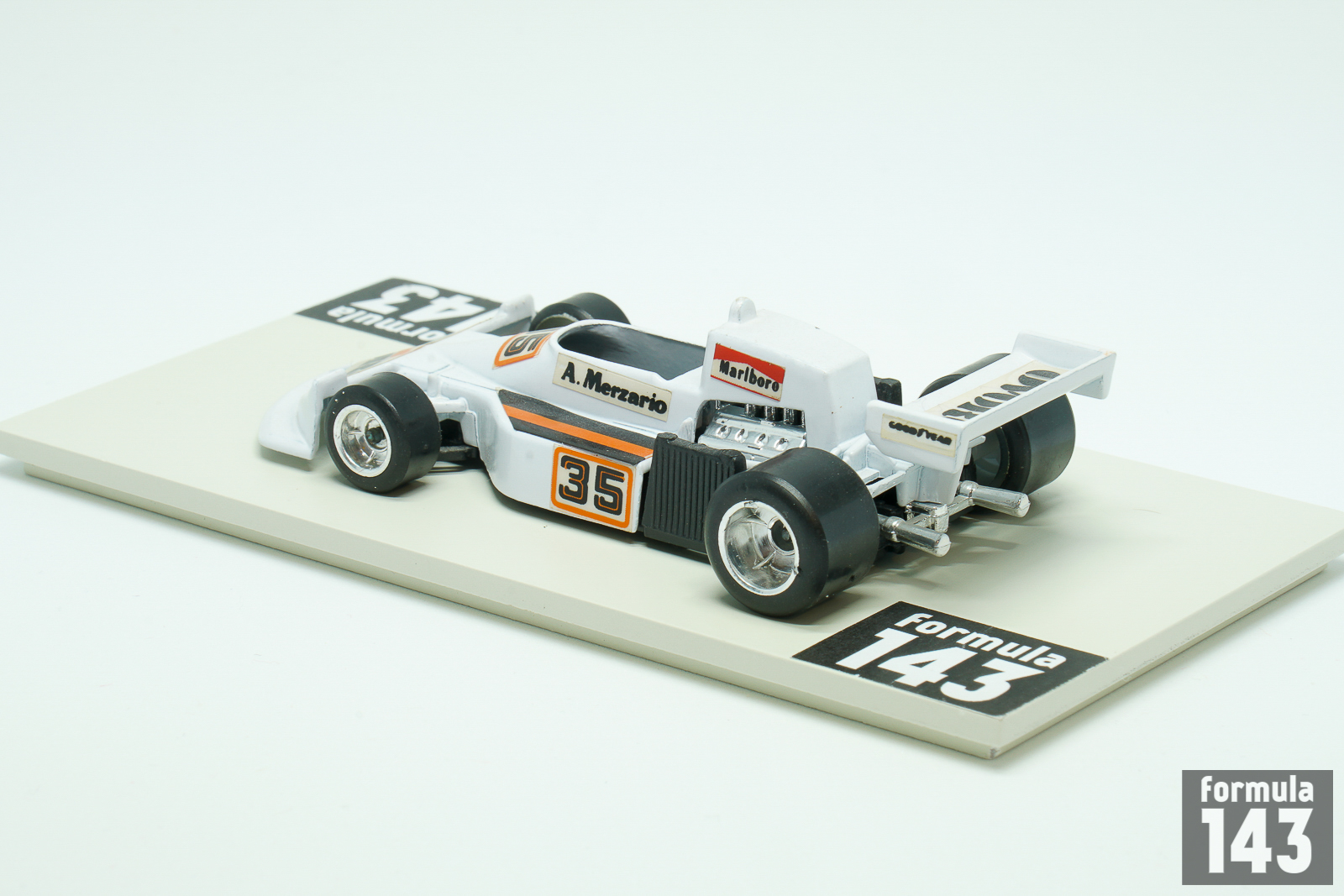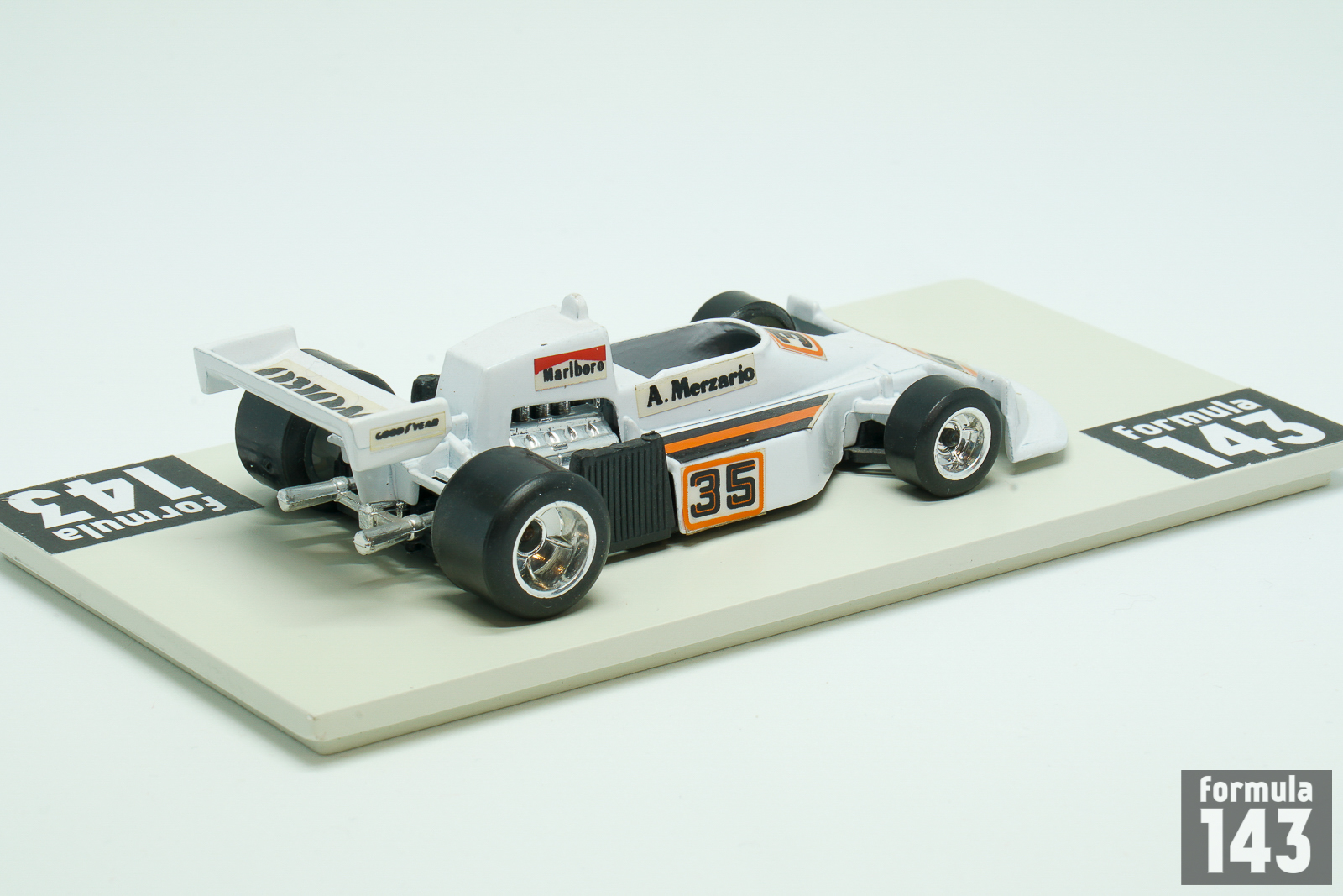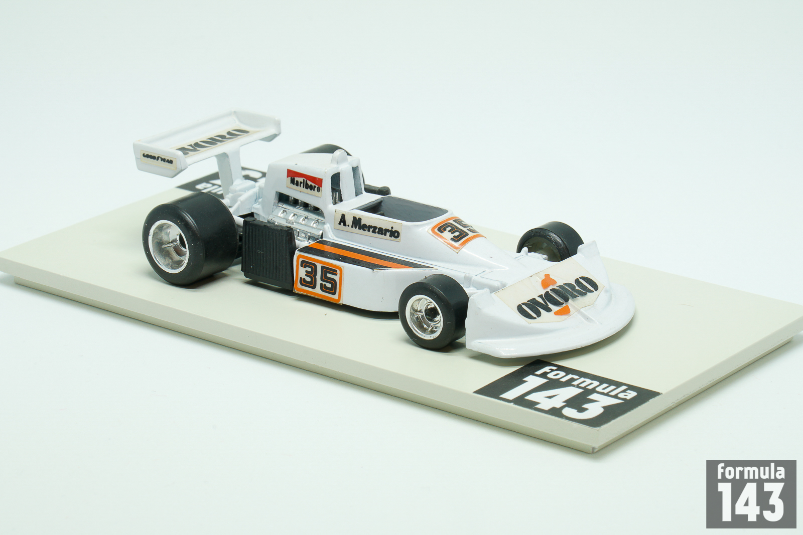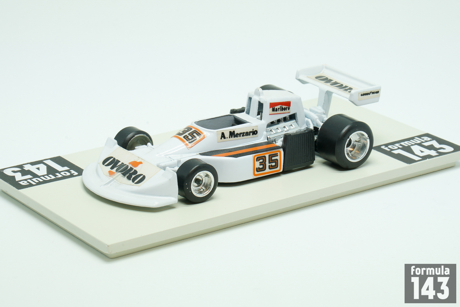 March F1 car for 1976 season was at the disposal of works March Engineering team with Ronnie Peterson, Hans-Joachim Stuck, Vittorio Brambilla, Arturo Merzario and Lella Lombardi. Due to a small budget, the cars tending to turn up in different liveries as race-by-race sponsorship deals were signed. Brambilla was entered under Beta sponsorship, Merzaio raced for Ovoro and Lombardi was sponsored by Lavazza. Italian Arturo Merzario had started in 7 GP for March in 1976 before moving to Walter Wolf’s team to drive Williams FW05. His best finish in 761 was 9th place in French GP.