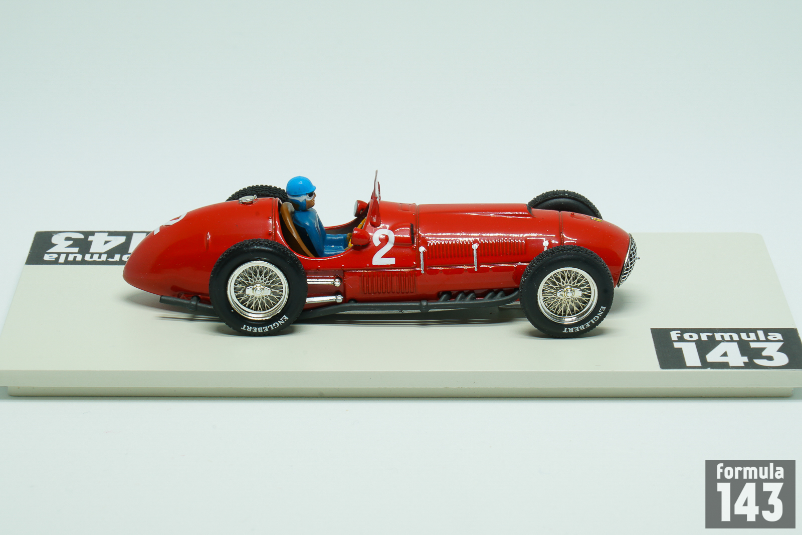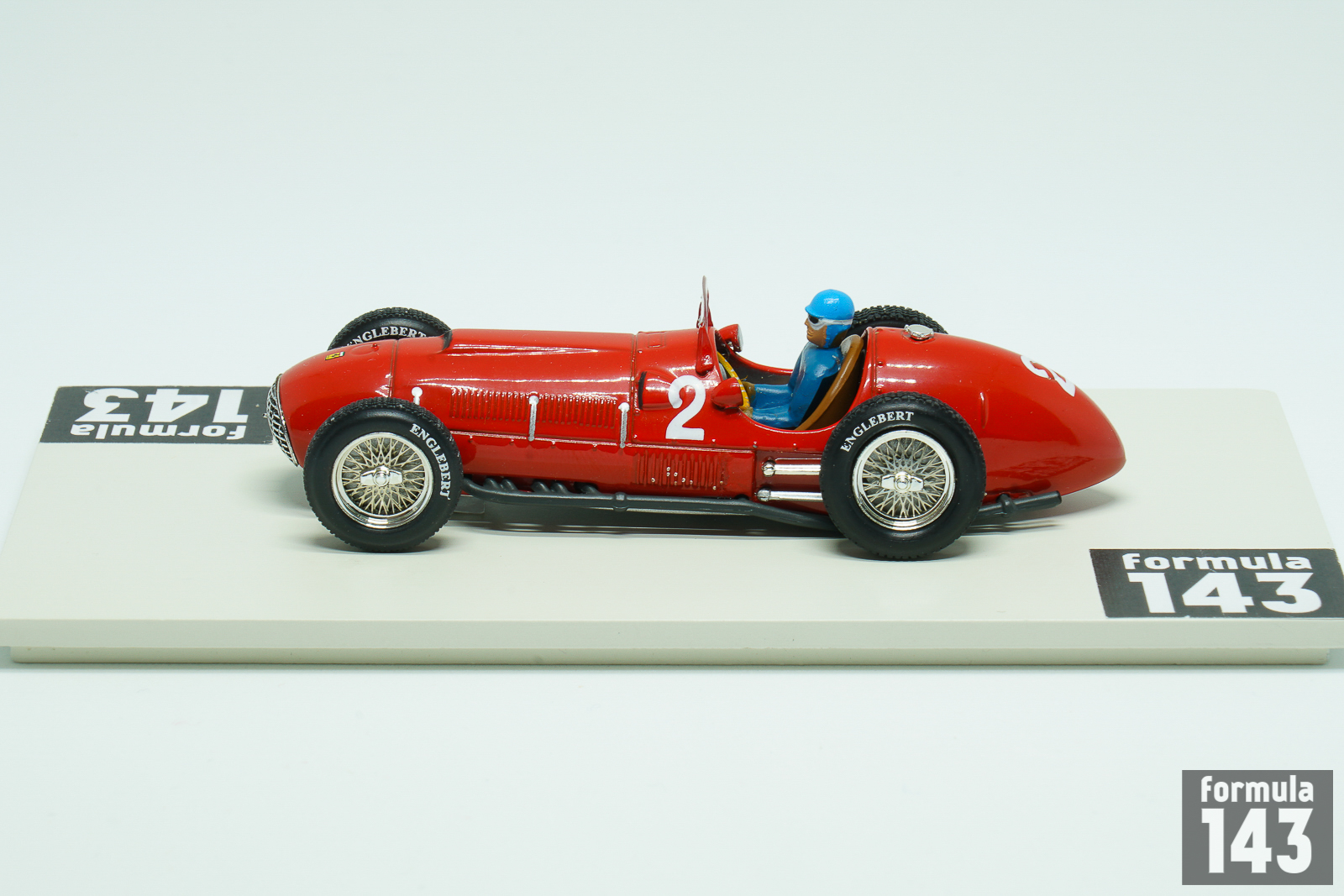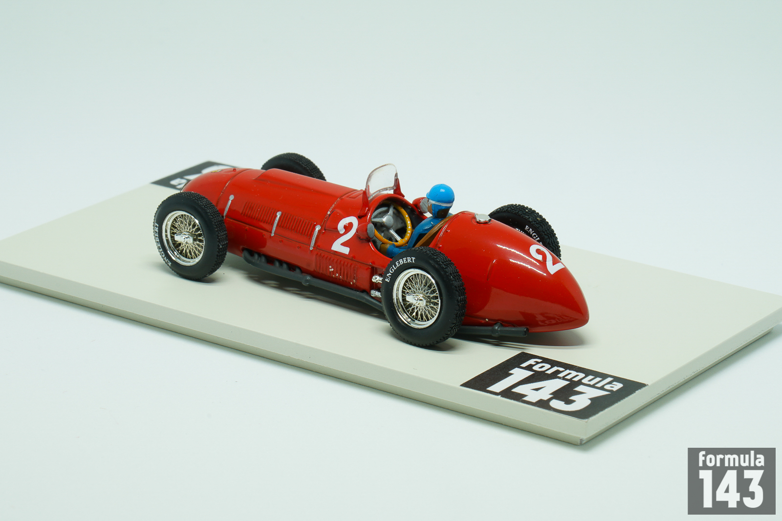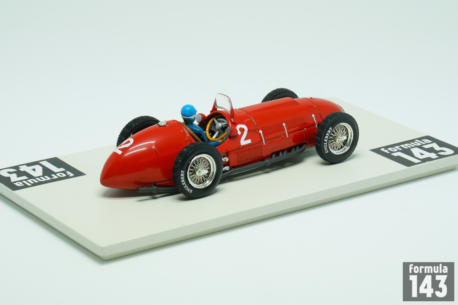 Ferrari 375 was designed by Aurelio Lampredi in 1950 to replace supercharged 125. After intermediate variant, 275 F1, fitted with 3.3-litre naturally aspirated V12 engine, 375 was finally developed to be powered by 4.5-litre V12. The racing debut of the 375 was in the 1950 Italian Grand Prix at Monza. This scale model by Quartzo represents Alberto Ascari’s winning car from non-championship 1950 Penya Rhin Grand Prix held at Pedralbes Circuit on 29 October 1950.