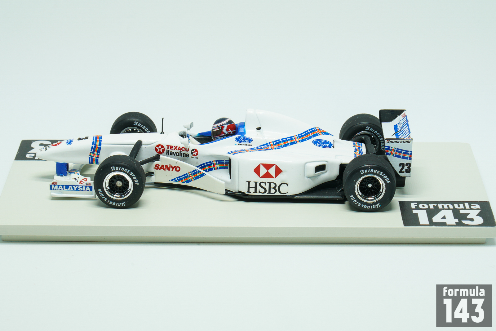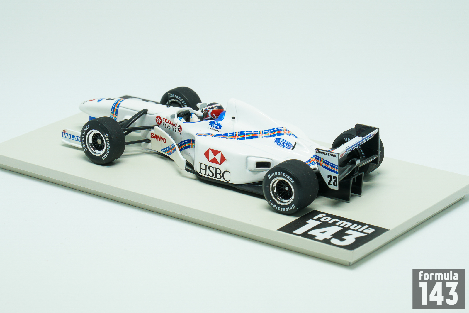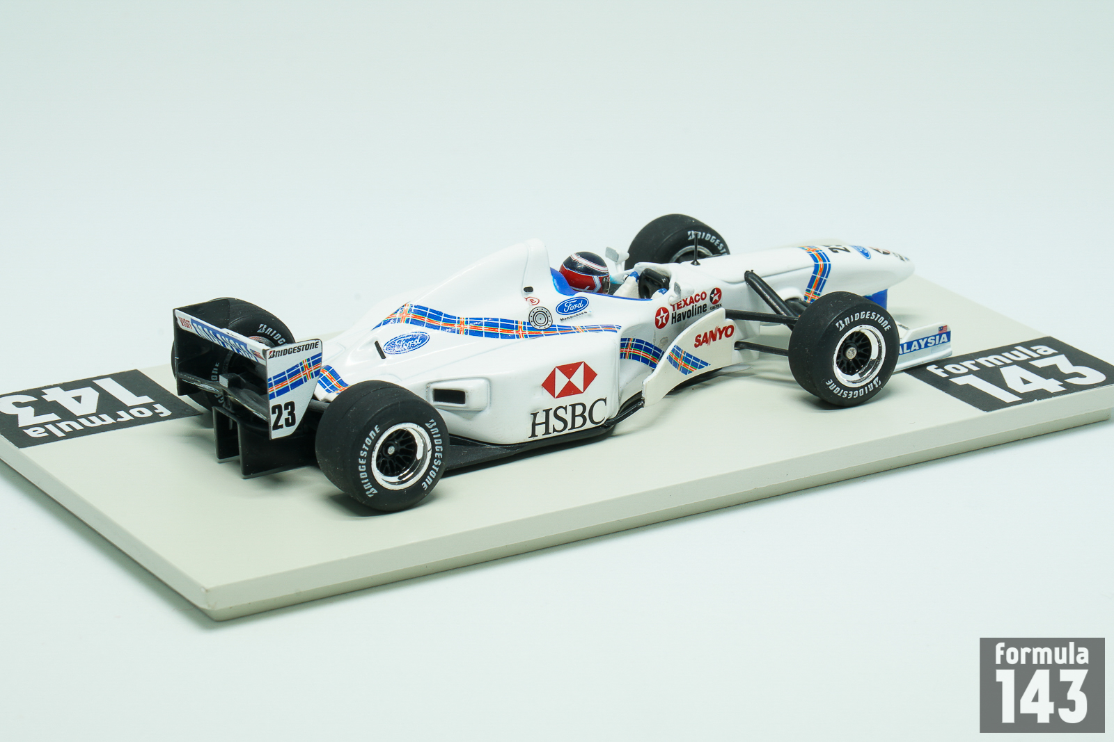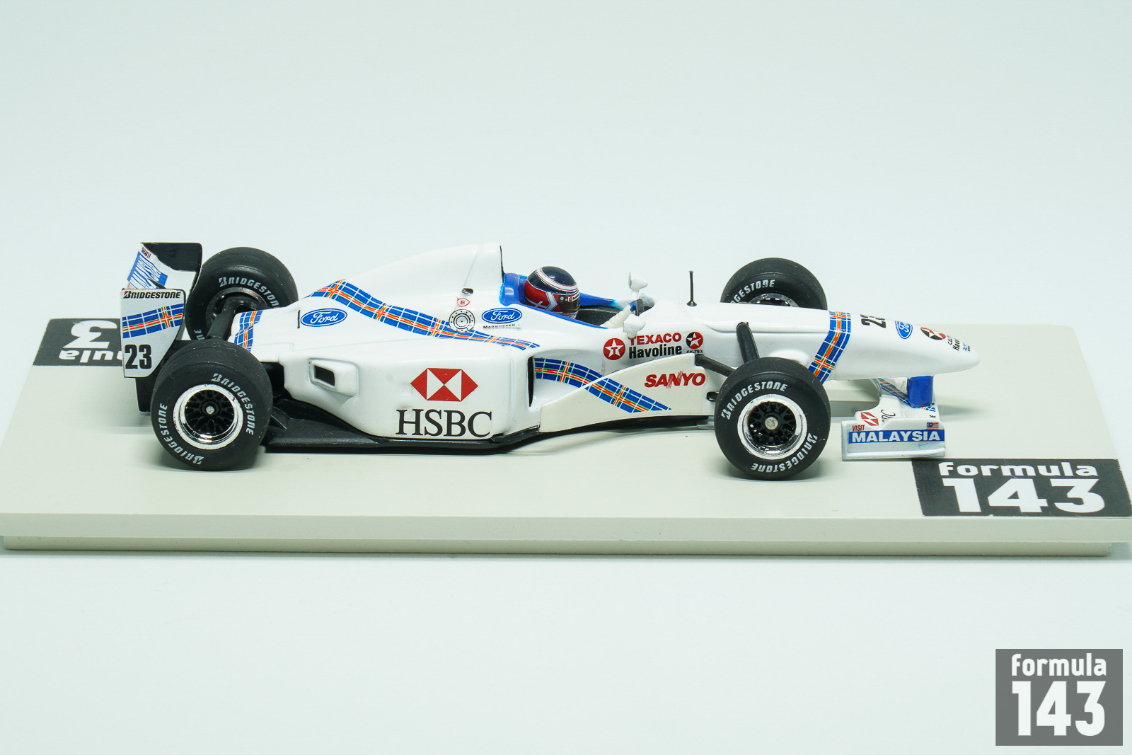 Stewart Grand Prix was founded by triple Formula One champion Jackie Stewart and his son Paul Stewart in 1996 when Jackie Stewart secured a five-year development deal with Ford to make it a factory team. The first car, SF01 , was designed by Alan Jenkins for the 1997 F1 season. It was powered by Ford Zetec-R 72-degree V10 engine and proved to be quite competitive but very unreliable. Team drivers Rubens Barichello and Jan Magnussen were only classified eight times out of 34 starts. The only time when both cars reached the finish was at Monaco Grand Prix where Barichello took impressive 2nd place and Magnussen finished 7th.
