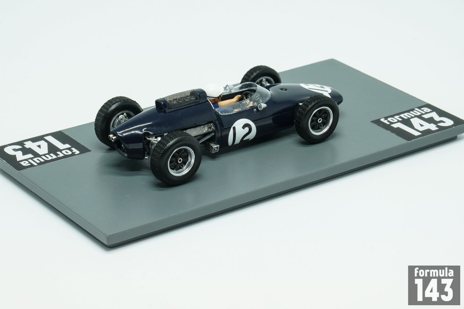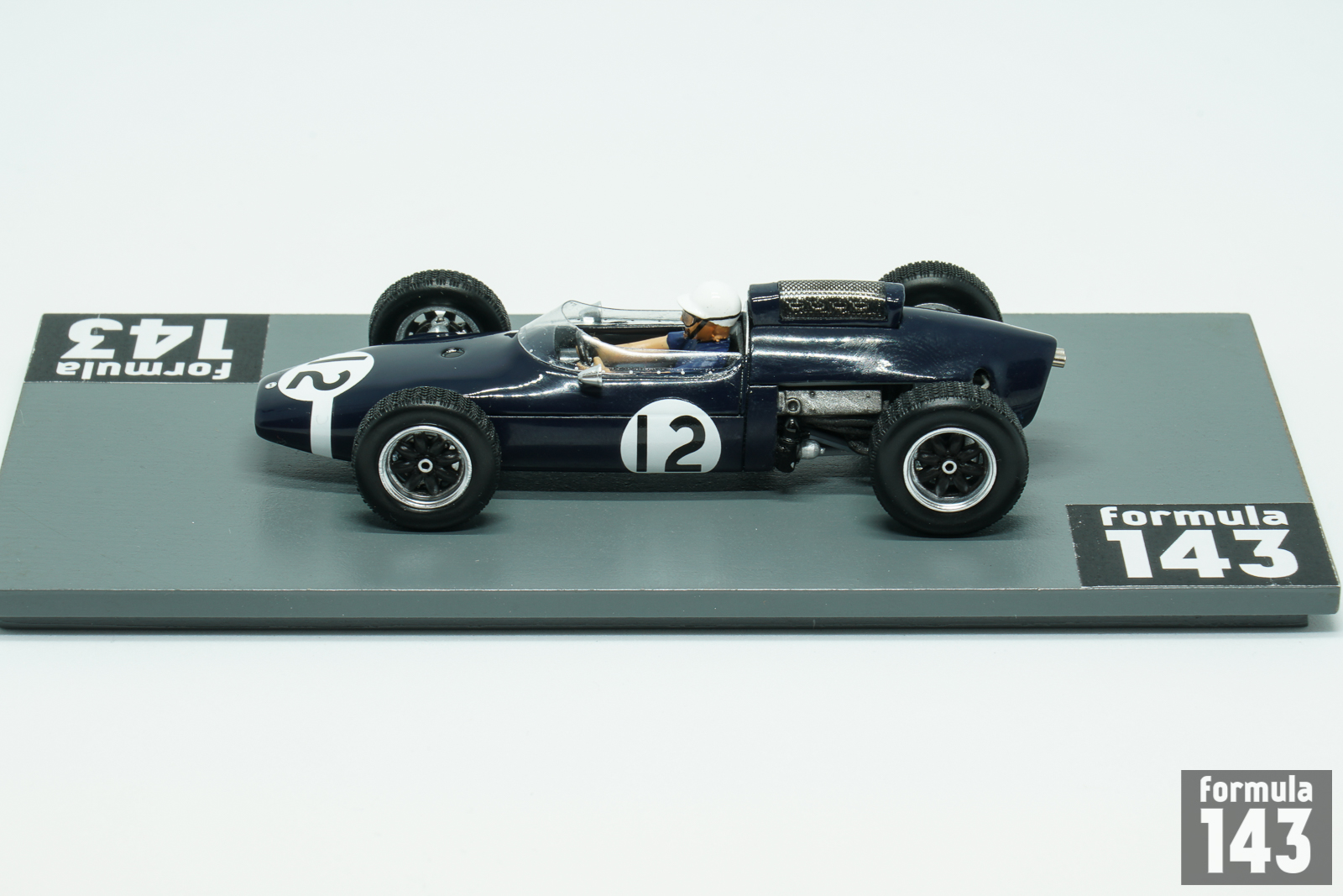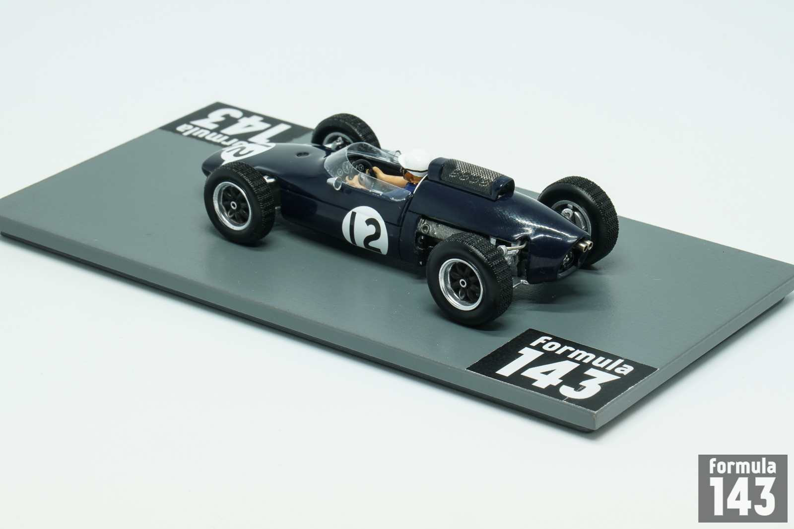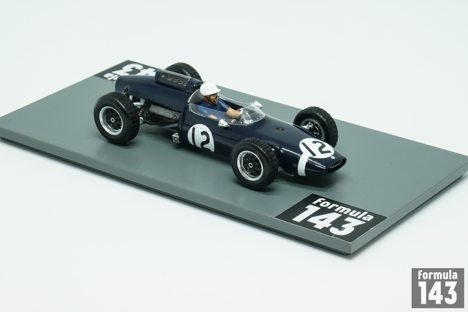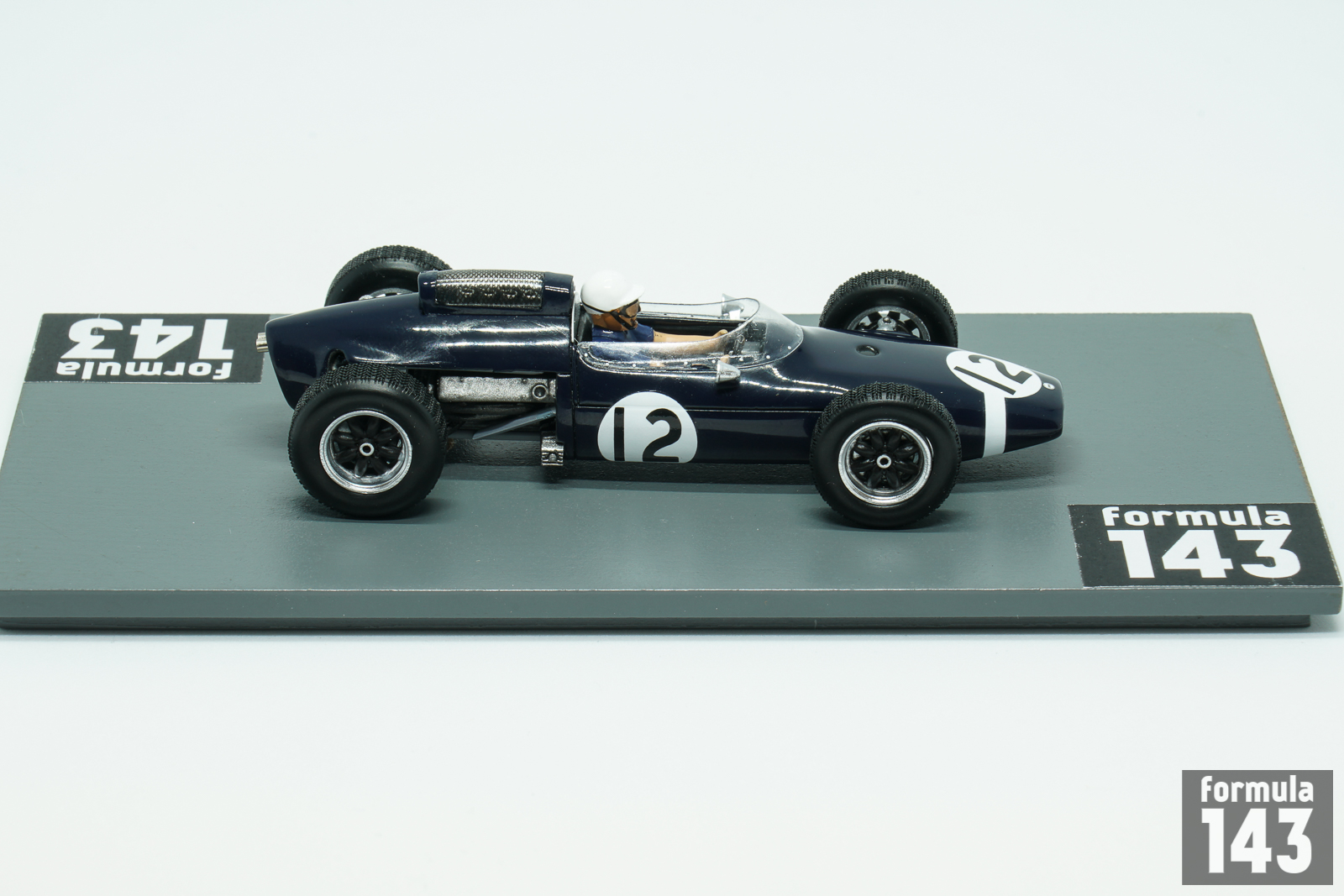 The T60 was the third Cooper’s model built according to 1.5-Litre Formula 1 regulations introduced in 1961. T60 was constructed in 1962 and like its predecessors T58 was powered by Coventry Climax FWMV 1.5 V8 engine with twin overhead camshafts. The chassis was based on conventional tubular frame covered with aluminium panels, which did not have enough cross braces to be considered a full spaceframe. Suspension was by double wishbones all-round, lacking the parallel radius arms found on the rear suspension of most of the competitors. The V8 engine was mated to Cooper’s own six speed gearbox. In 1962 Bruce McLaren in works T60 took the victory at Monaco which remained the only victory for Cooper in the five years Formula 1 was run under the 1.5 litre regulations. In 1963 Cooper works team switched to new model, T66, while T60 was at the disposal of private teams such as R.RC. Walker Racing Team and Scuderia Centro Sud. Rob Walker’s driver that season was Swede Joakim Bonnier who moved to Rob’s team after two seasons with Porsche. Bonnier drove T60 in first four races of the season with the best finish in 5th place in Belgian GP. In the second half of the 1963 season Walker entered T66, and Bonnier managed frequently to place it in the top six but not higher than 5th position.