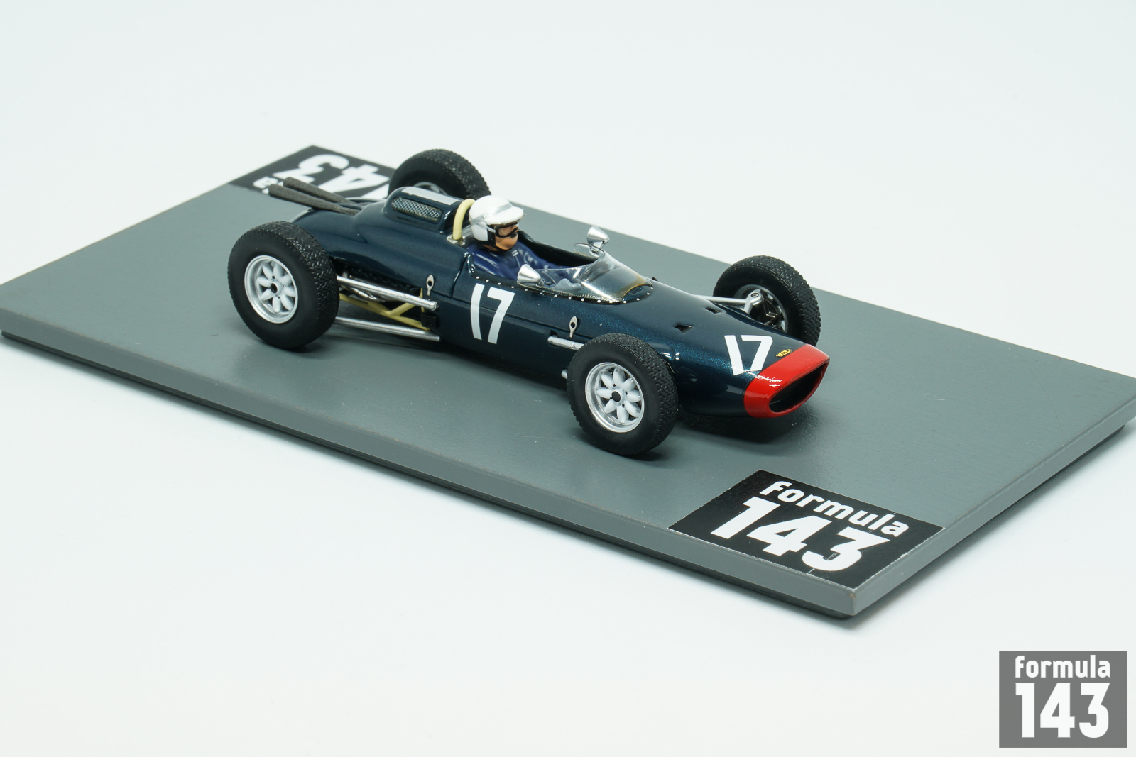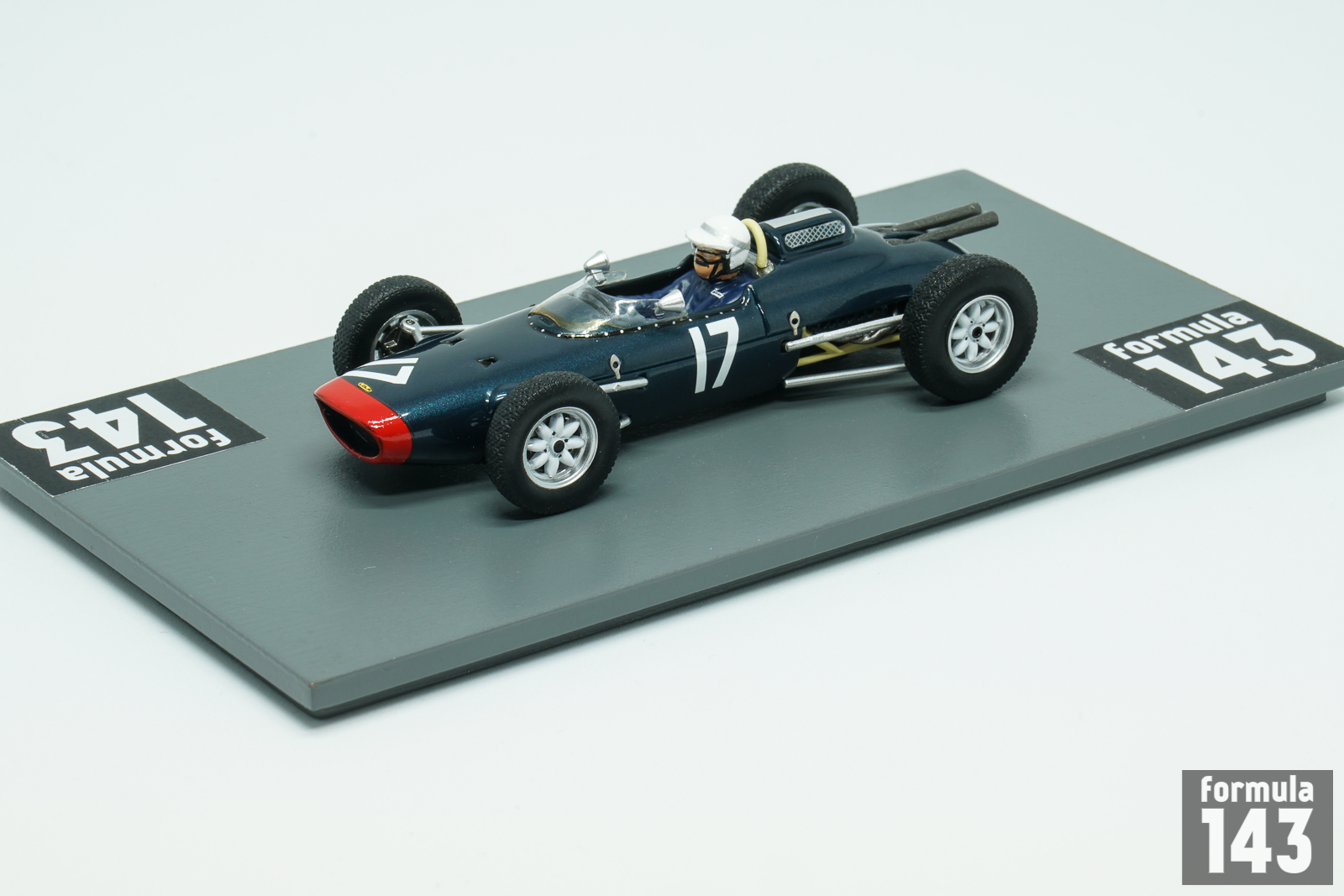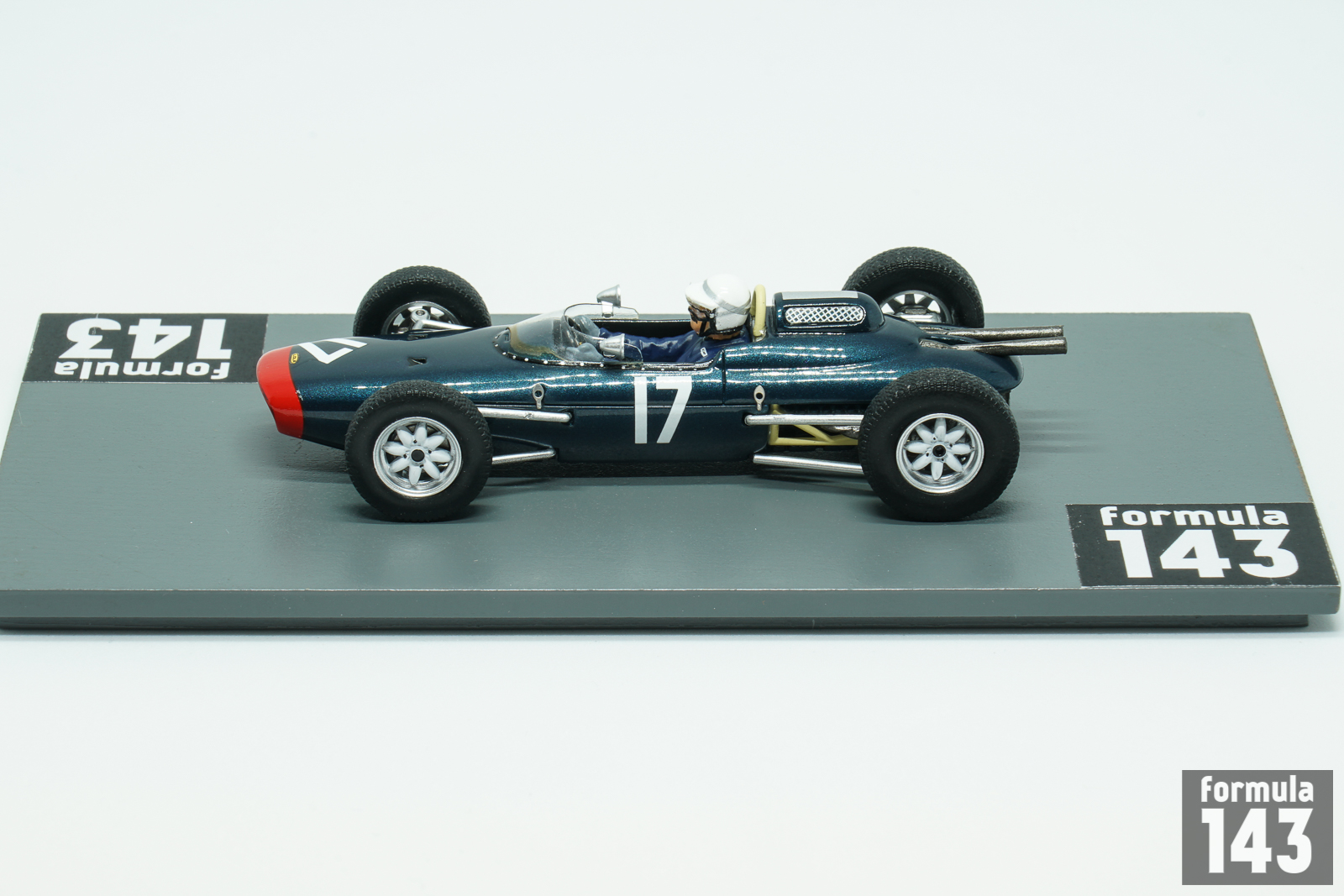 Lola Mk4 built by Eric Broadley in 1962 at the request of Reg Parnell was the first Lola construction in Formula 1. Reg Parnell, a racing driver in the early 1950s became later successful manager of the Aston Martin sports car team. In 1959 he went to F1 with his own private team with Cooper cars. For 1962 Parnell commissioned Lola’s founder and chief designer Eric Broadley for building F1 car. Established only a few years earlier, Lola’s exploits into single seaters had been limited to the modest Formula Junior class only. The Mk4 had conventional steel spaceframe chassis with fiberglass body panels. The front suspension was somewhat unusual in featuring a top link and a reversed lower wishbone combined twin trailing links to spread the load, instead of the more familiar and simpler double wishbones. Custom Coventry Climax FWMV 1496cc V8 engine was the usual choice for the power unit. Driven my John Surtees in 1962 Mk4 demonstrated a rather good performance achieving 2 podium finishes. For the next season Broadley constructed a single Mk4A which was in many ways similar to the Mk4 of 1962, but featured semi-monocoque-style chassis built by additional panelling welded to the tubular members. Parnell continued to enter Lola Mk4A throughout the 1963 season, but could not threaten the top runners. Experienced Maurice Trintignant drove Parnell’s car in the first race of the season in Monaco, and retired early due to clutch failure. The best result of Mk4A was 7th place by Chris Amon in French and British Grand Prix.