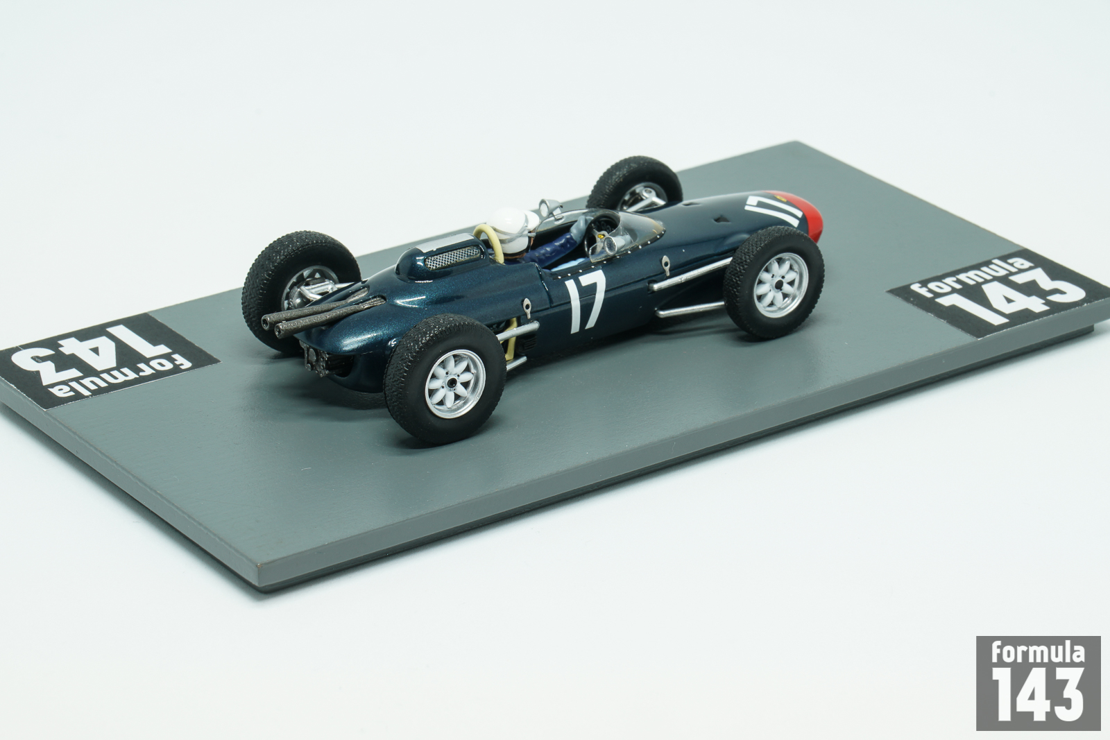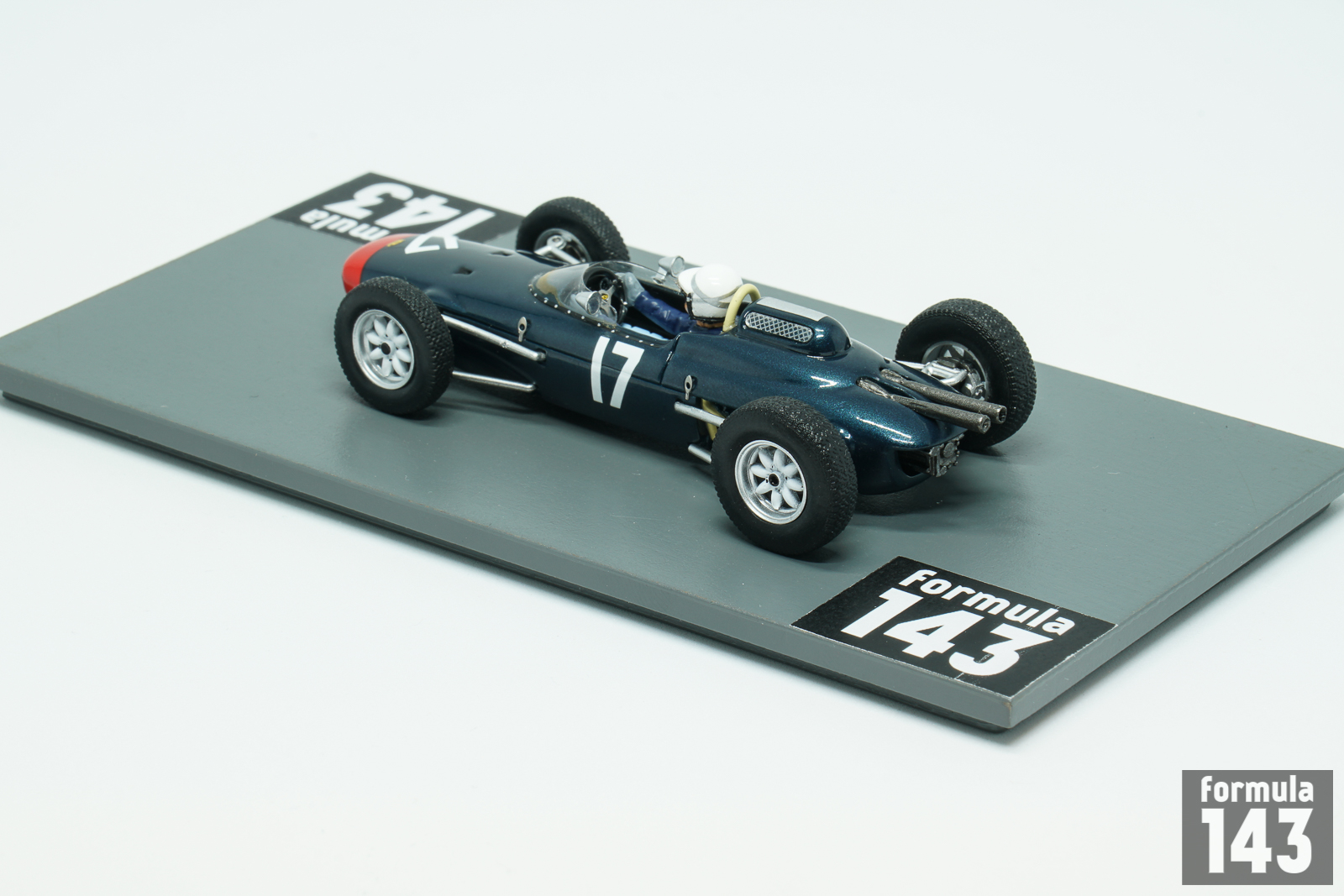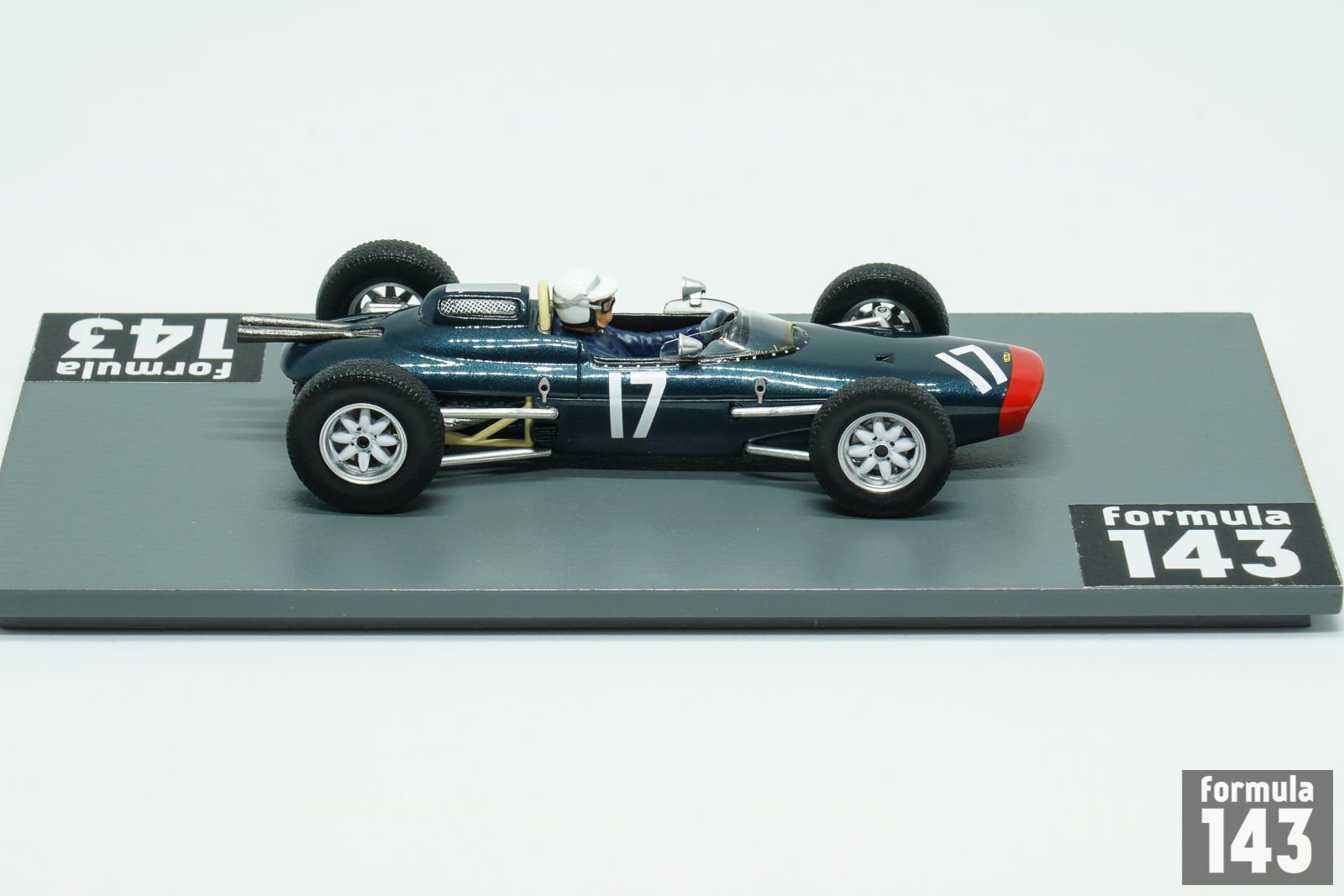 Lola Mk4 built by Eric Broadley in 1962 at the request of Reg Parnell was the first Lola construction in Formula 1. Reg Parnell, a racing driver in the early 1950s became later successful manager of the Aston Martin sports car team. In 1959 he went to F1 with his own private team with Cooper cars. For 1962 Parnell commissioned Lola’s founder and chief designer Eric Broadley for building F1 car. Established only a few years earlier, Lola’s exploits into single seaters had been limited to the modest Formula Junior class only. The Mk4 had conventional steel spaceframe chassis with fiberglass body panels. The front suspension was somewhat unusual in featuring a top link and a reversed lower wishbone combined twin trailing links to spread the load, instead of the more familiar and simpler double wishbones. Custom Coventry Climax FWMV 1496cc V8 engine was the usual choice for the power unit. Driven my John Surtees in 1962 Mk4 demonstrated a rather good performance achieving 2 podium finishes. For the next season Broadley constructed a single Mk4A which was in many ways similar to the Mk4 of 1962, but featured semi-monocoque-style chassis built by additional panelling welded to the tubular members. Parnell continued to enter Lola Mk4A throughout the 1963 season, but could not threaten the top runners. Experienced Maurice Trintignant drove Parnell’s car in the first race of the season in Monaco, and retired early due to clutch failure. The best result of Mk4A was 7th place by Chris Amon in French and British Grand Prix.